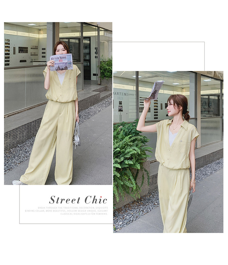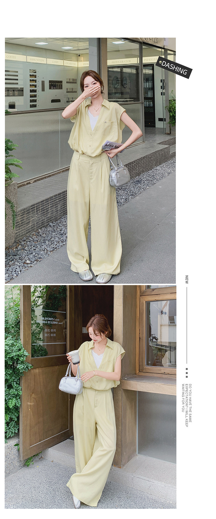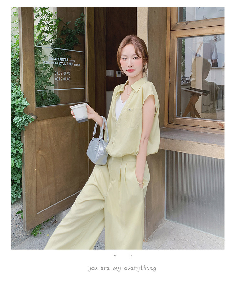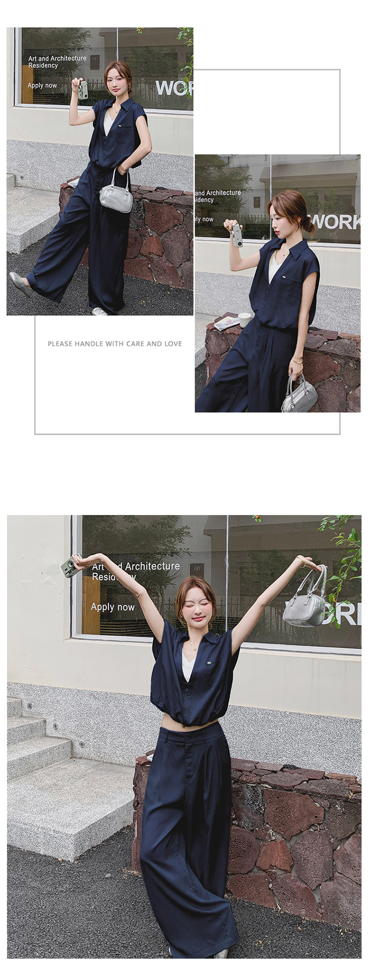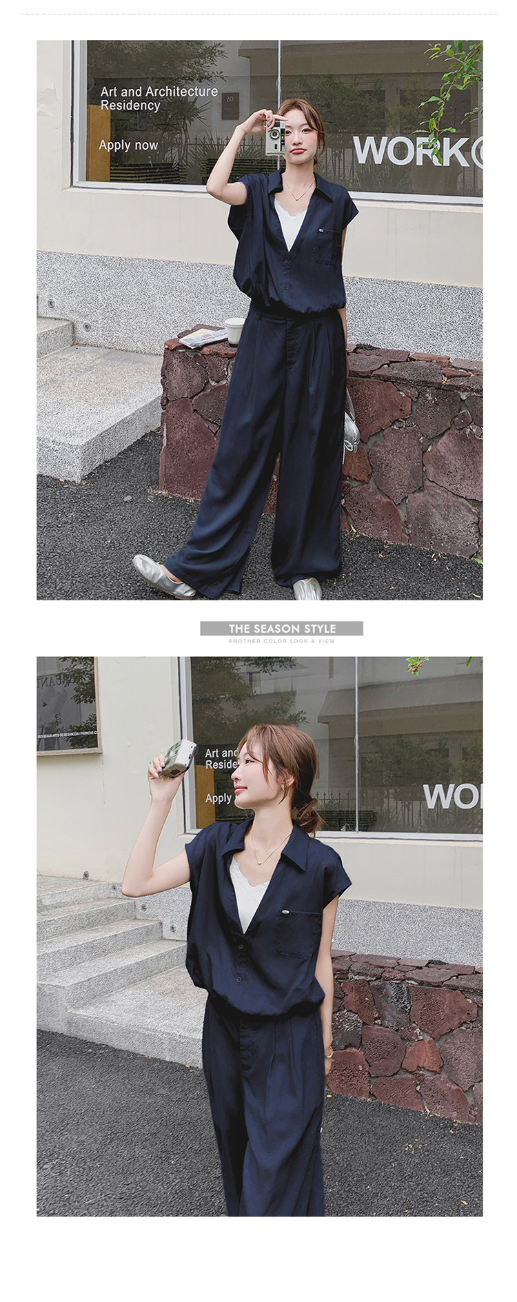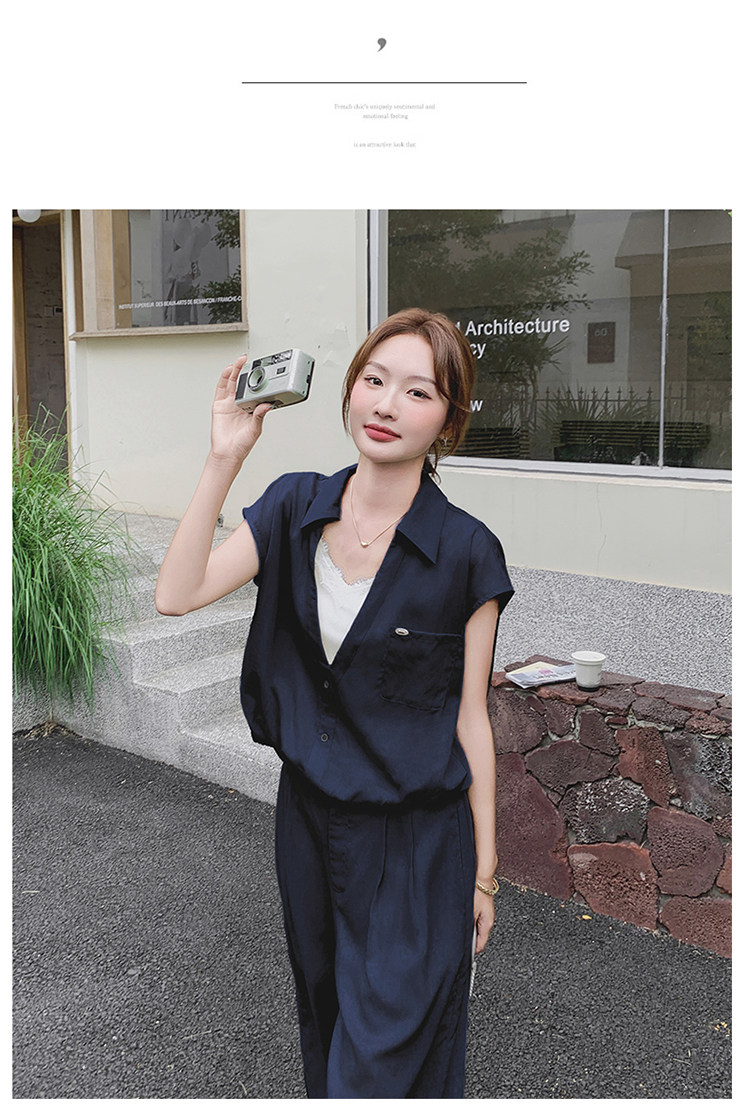 【商品名】2点セット!【セットアップ】カジュアル気質 ネイビーシャツ×ワイドパンツ 上下セット レディース 夏 クールでカッコいい2点セットコーデ【JZシリーズ】