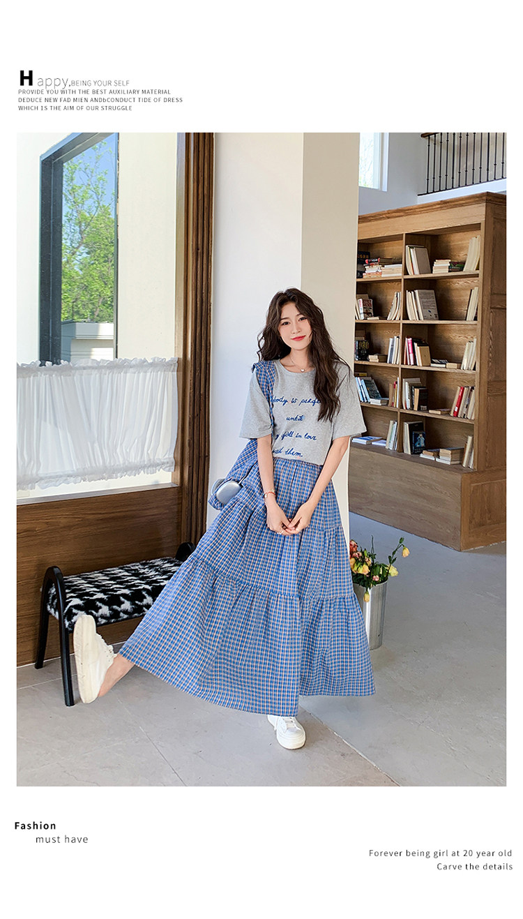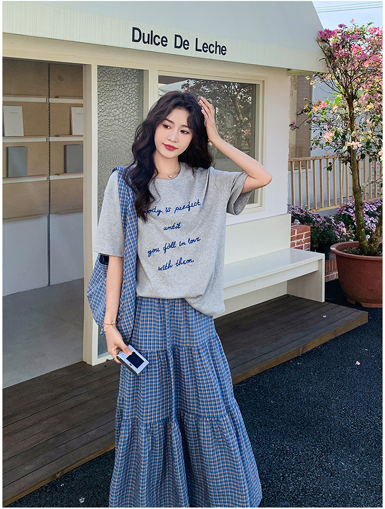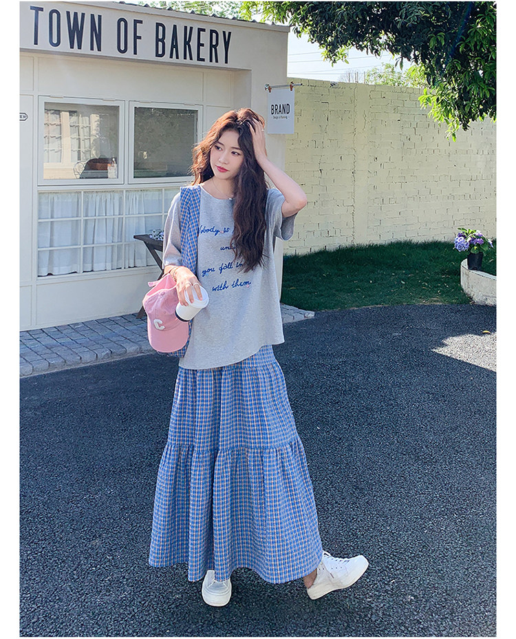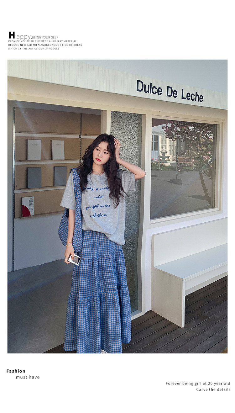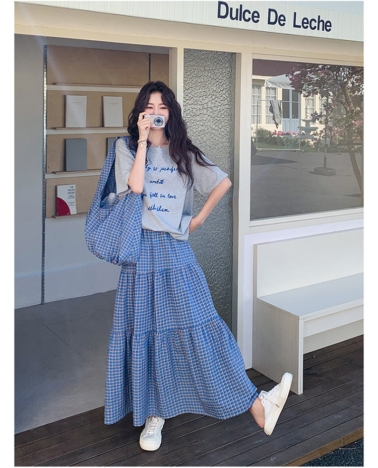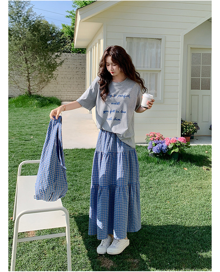 2点セット!【セットアップ】カジュアル Tシャツ× チェック柄スカート 上下セット レディース スリム見え【SHシリーズ】