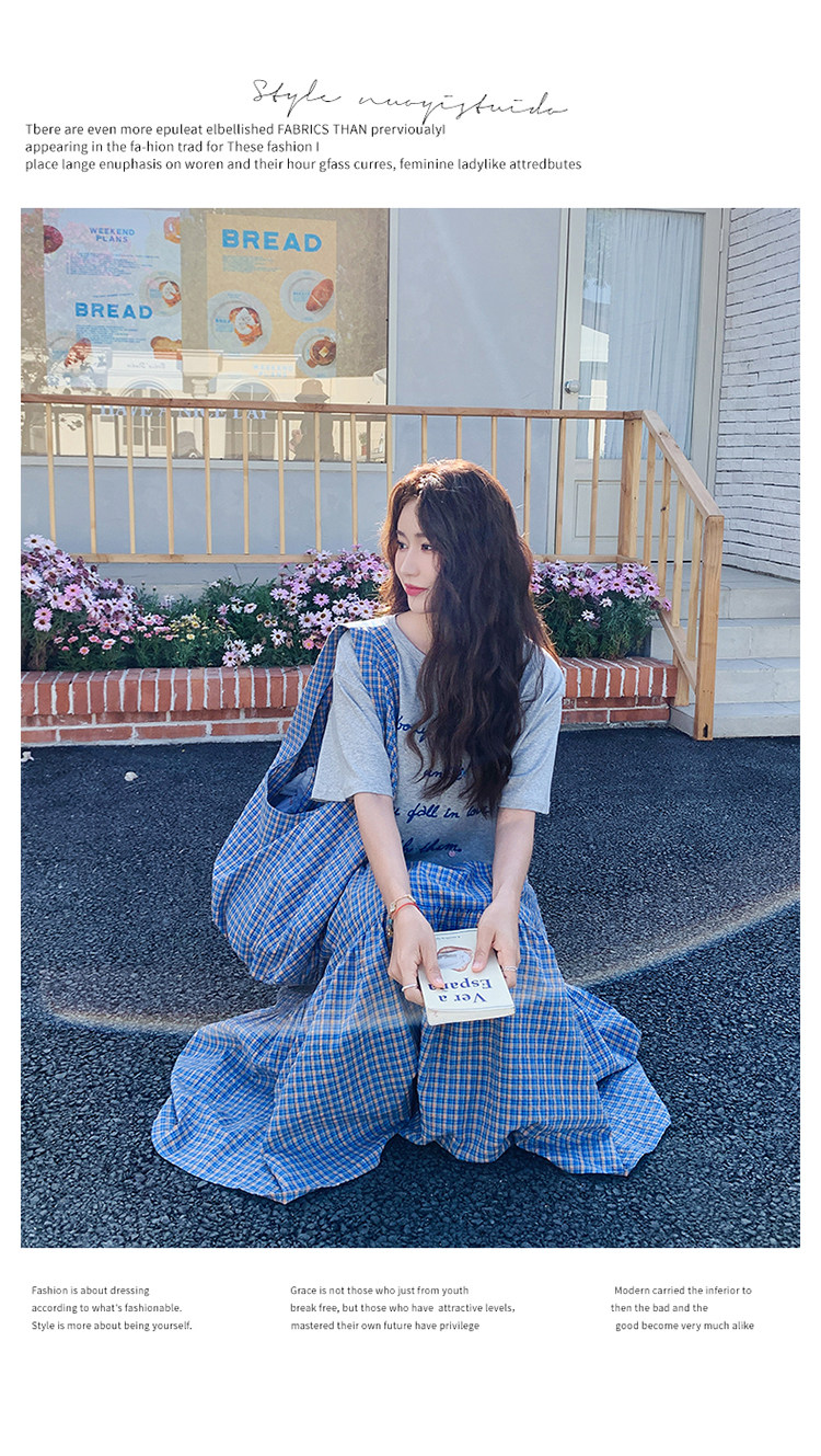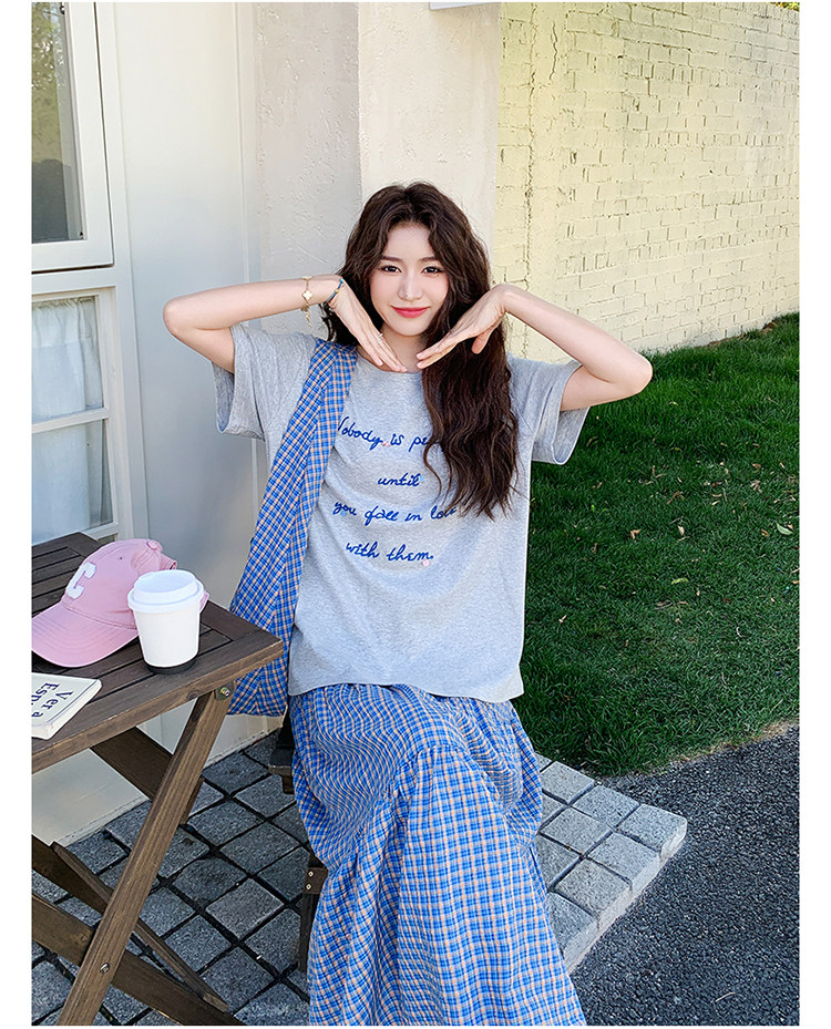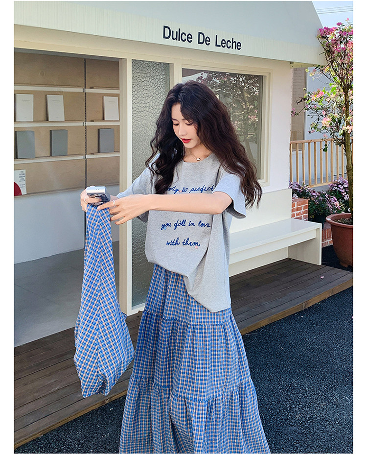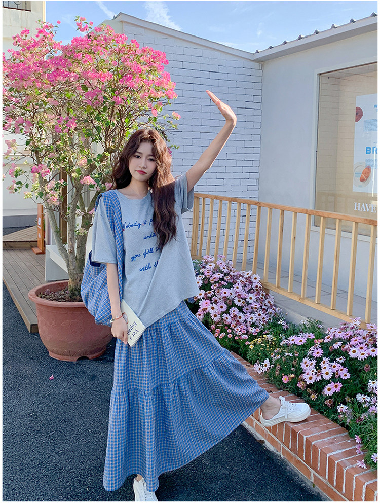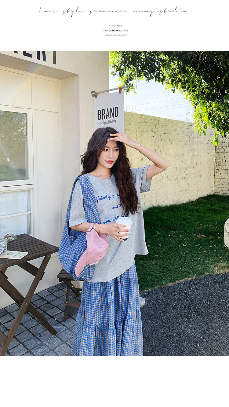 2点セット!【セットアップ】カジュアル Tシャツ× チェック柄スカート 上下セット レディース スリム見え【SHシリーズ】
