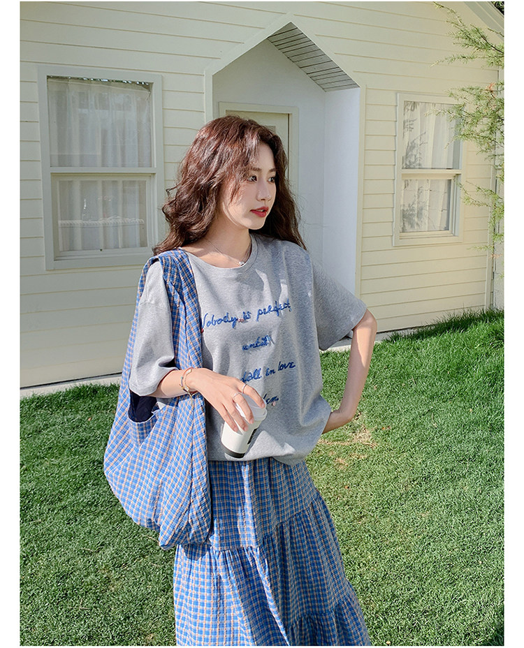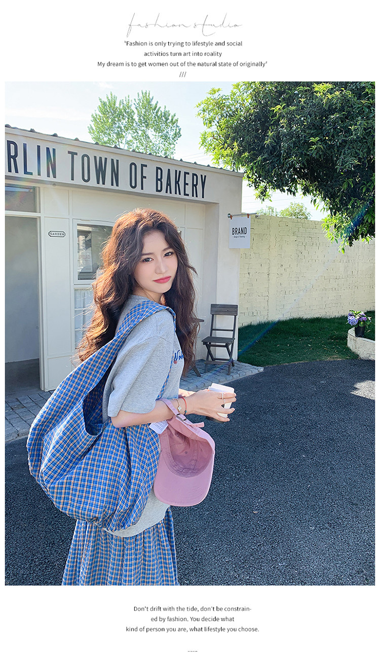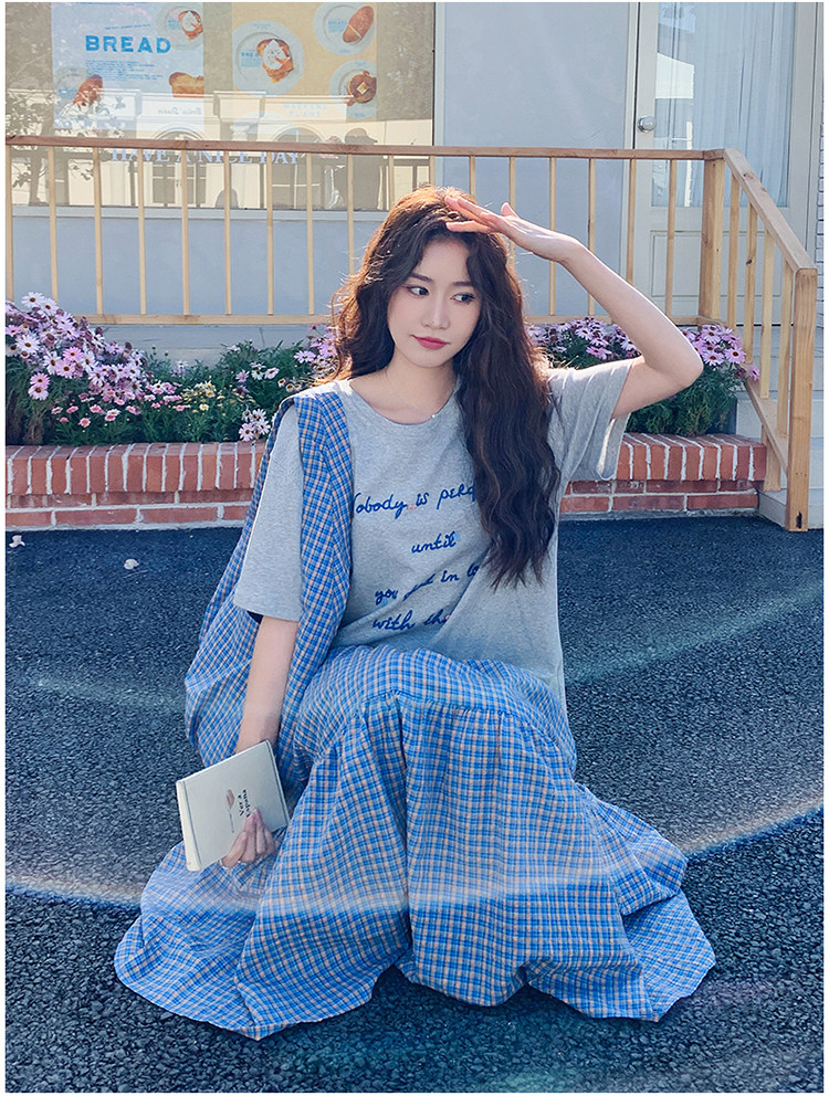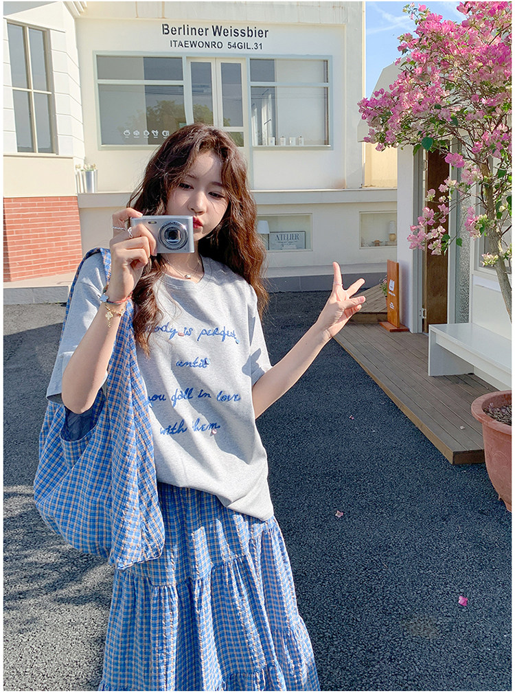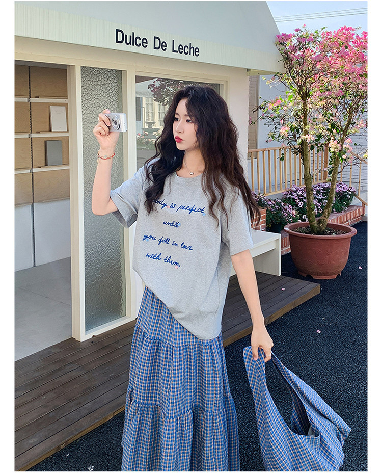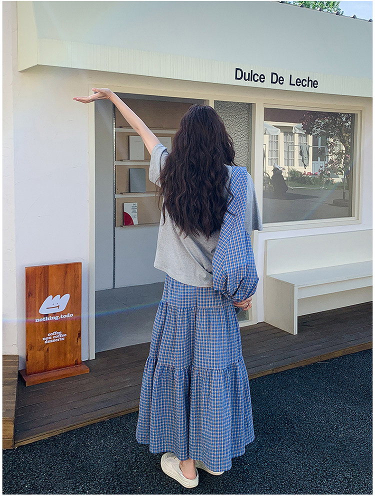 2点セット!【セットアップ】カジュアル Tシャツ× チェック柄スカート 上下セット レディース スリム見え【SHシリーズ】
