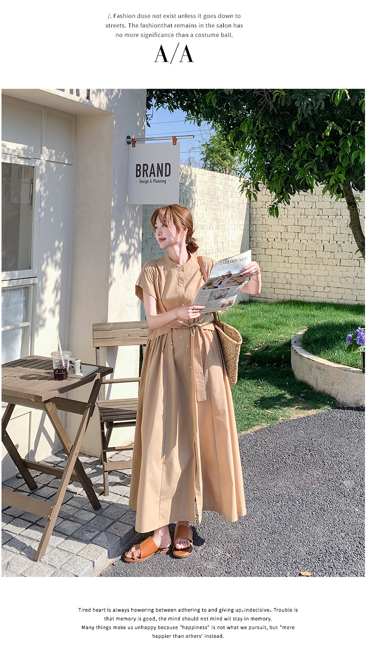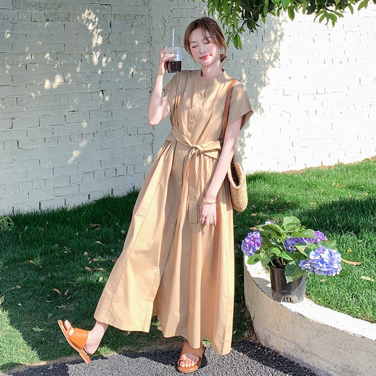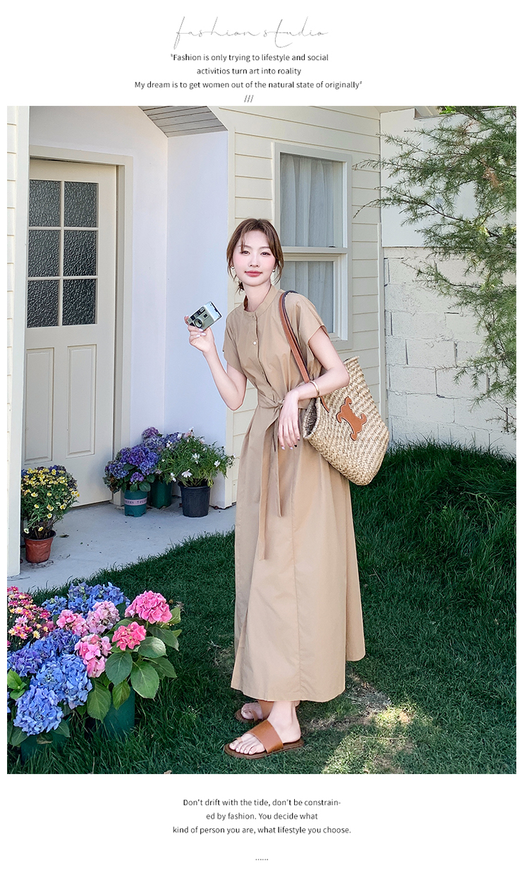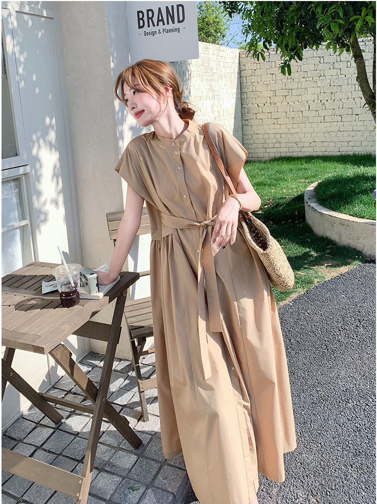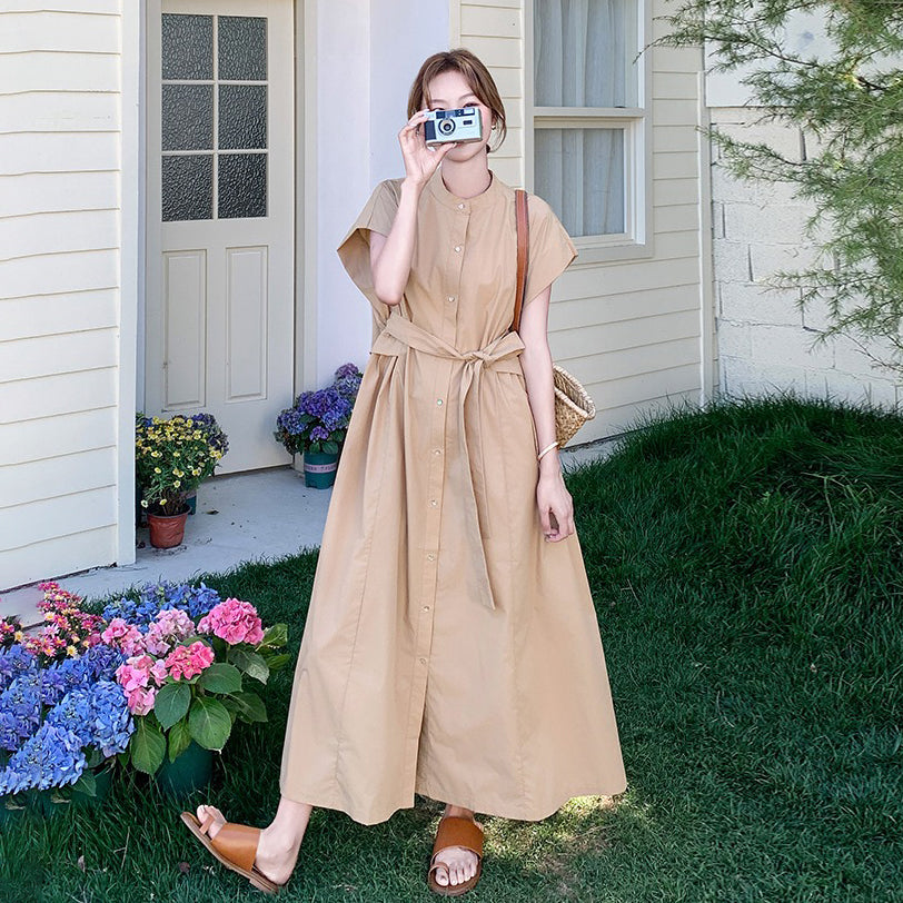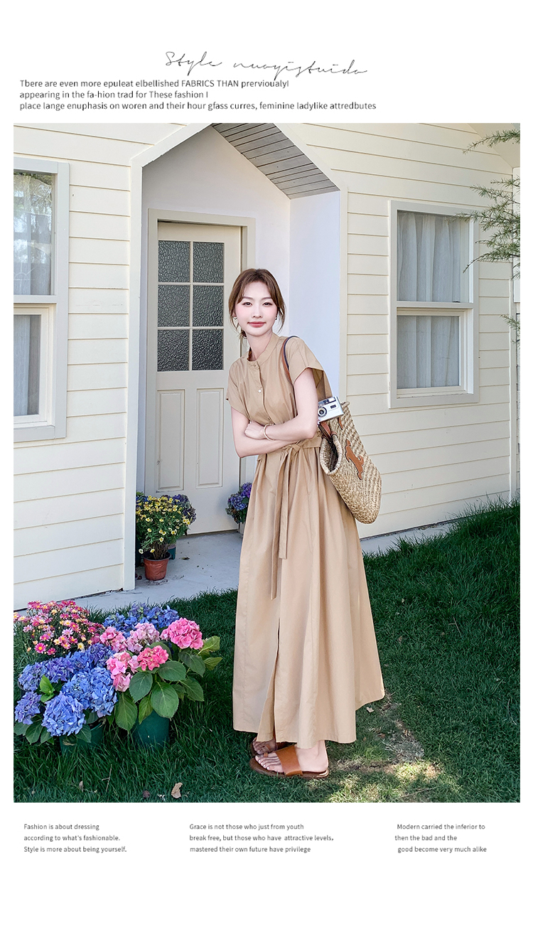 【ワンピース】カジュアル スリム見え カーキ シャツワンピース レディース 夏 ロング丈 個性的で美しい 気品あるおしゃれスタイル【JZシリーズ】