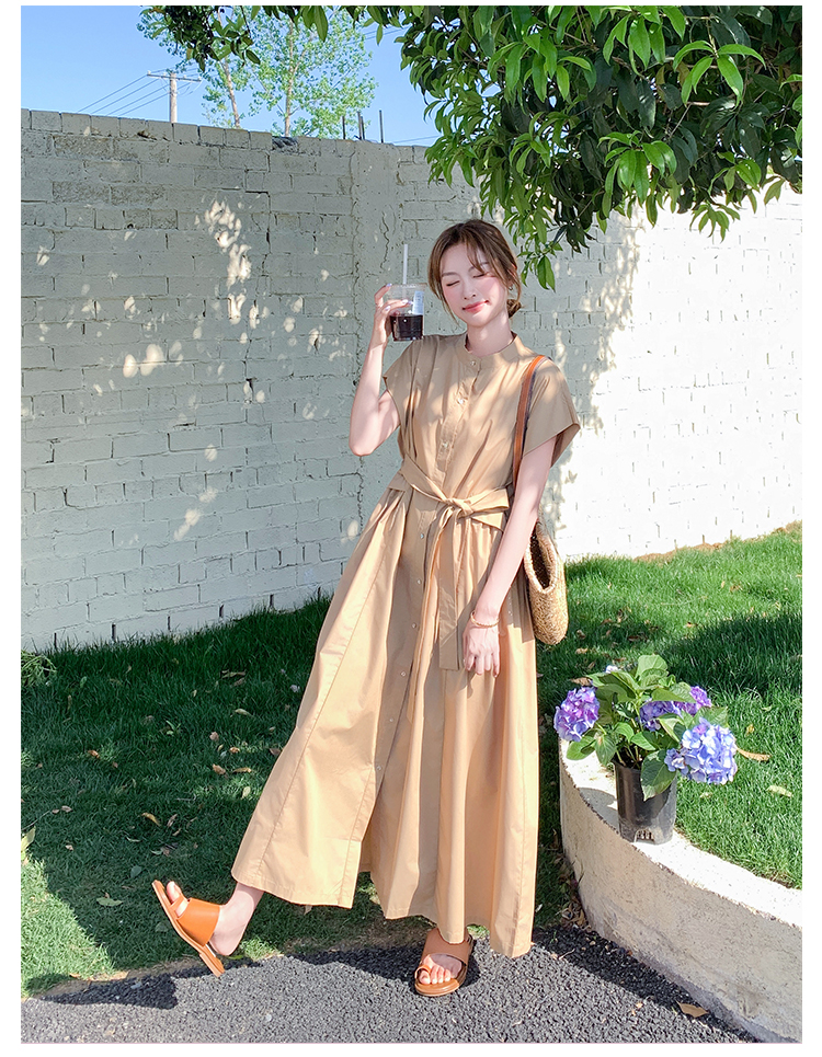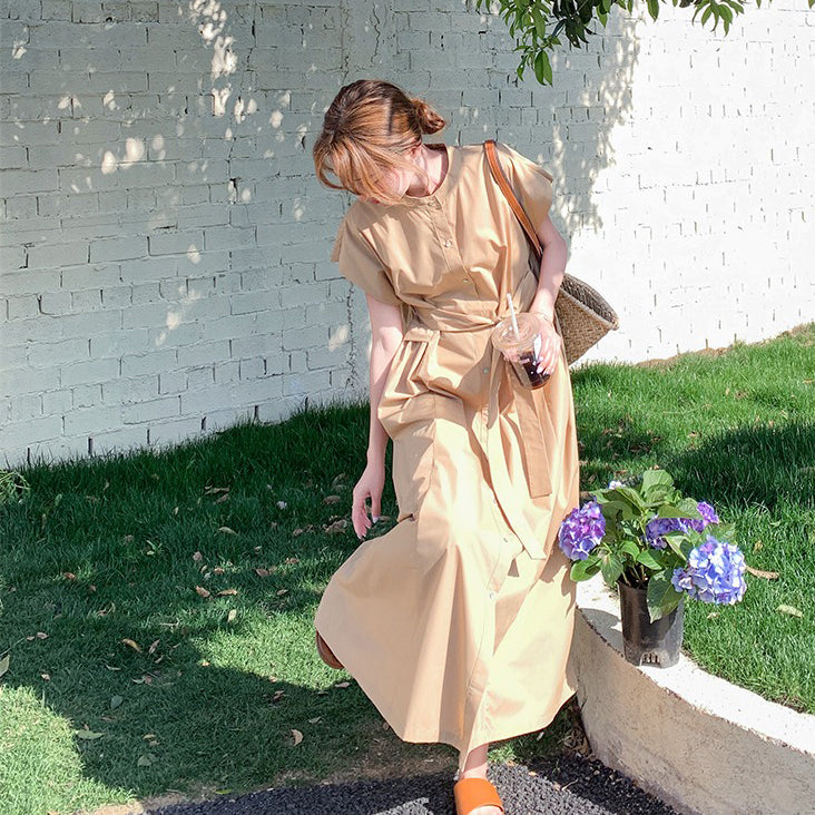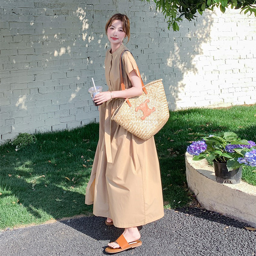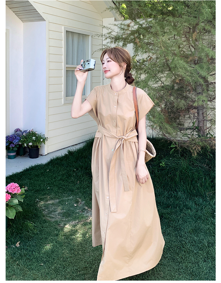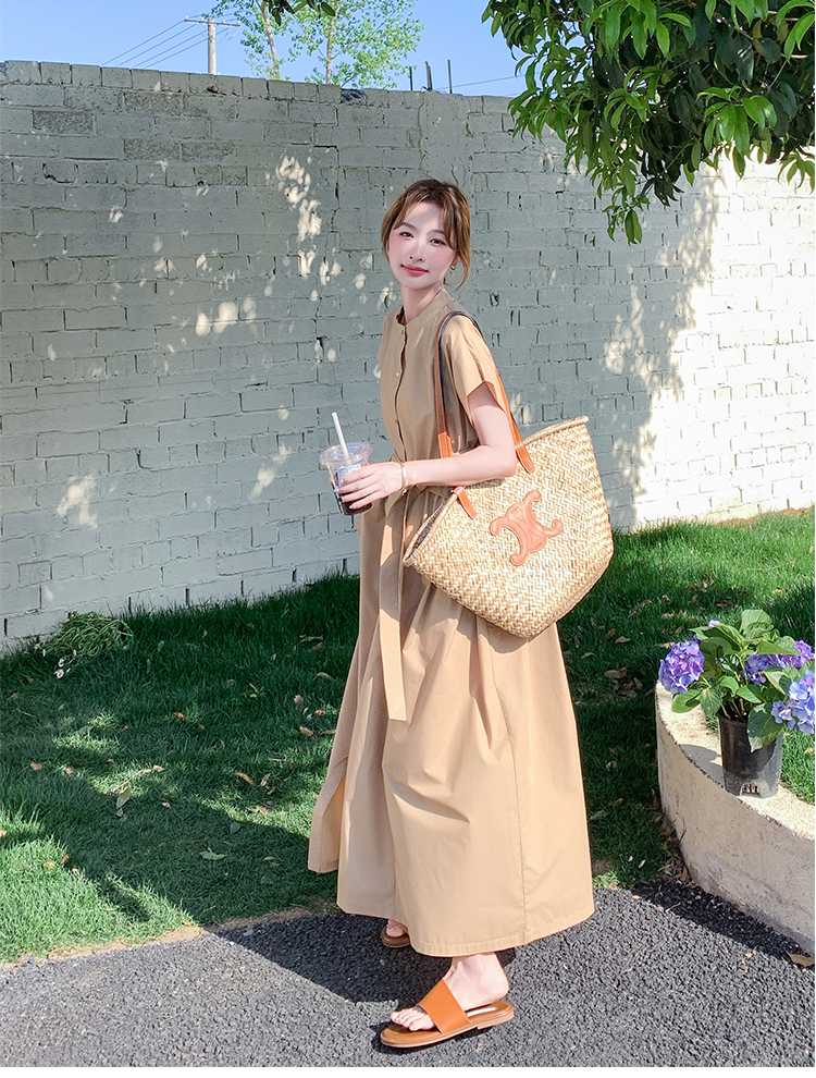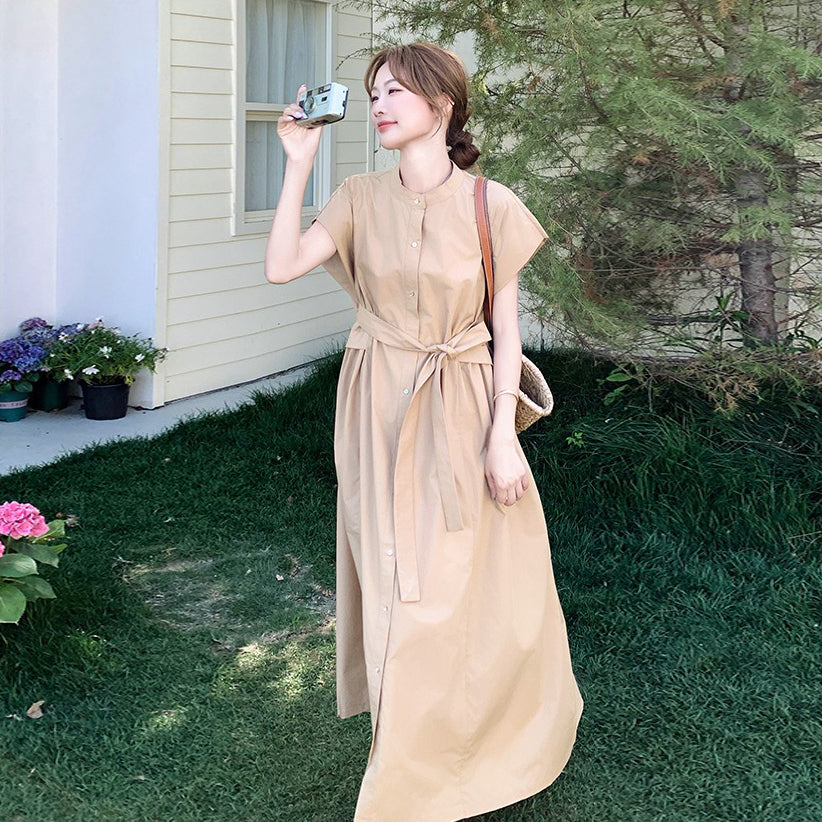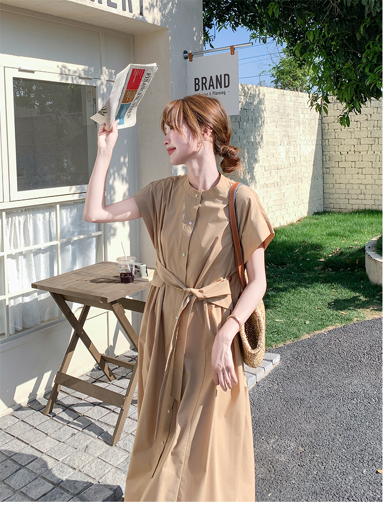 【ワンピース】カジュアル スリム見え カーキ シャツワンピース レディース 夏 ロング丈 個性的で美しい 気品あるおしゃれスタイル【JZシリーズ】