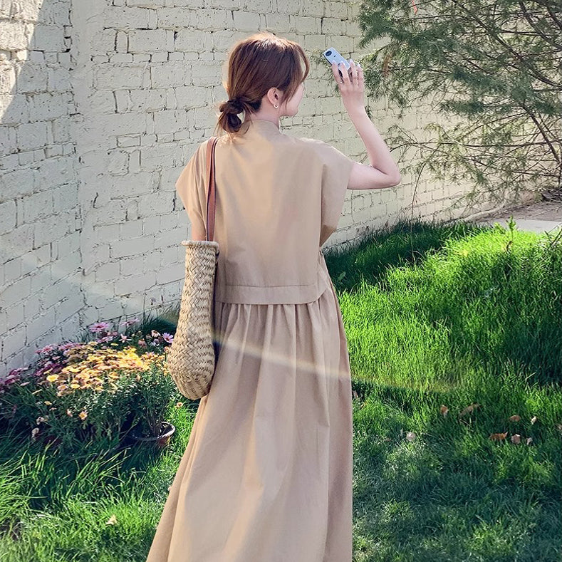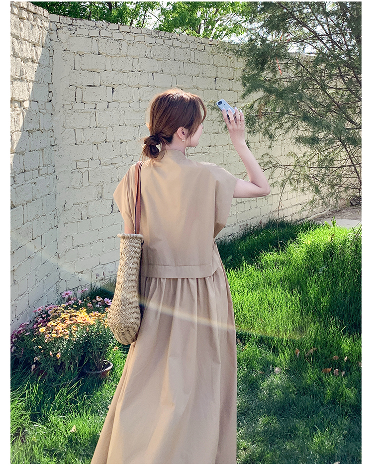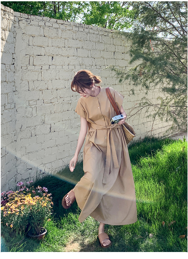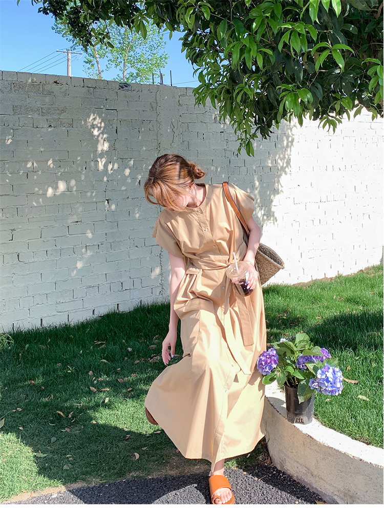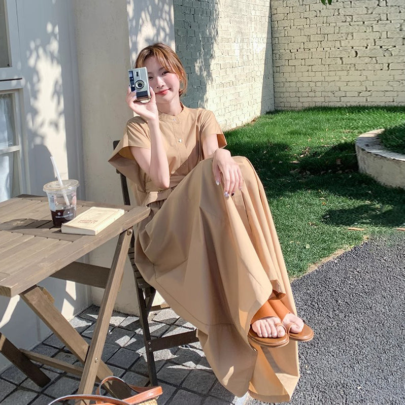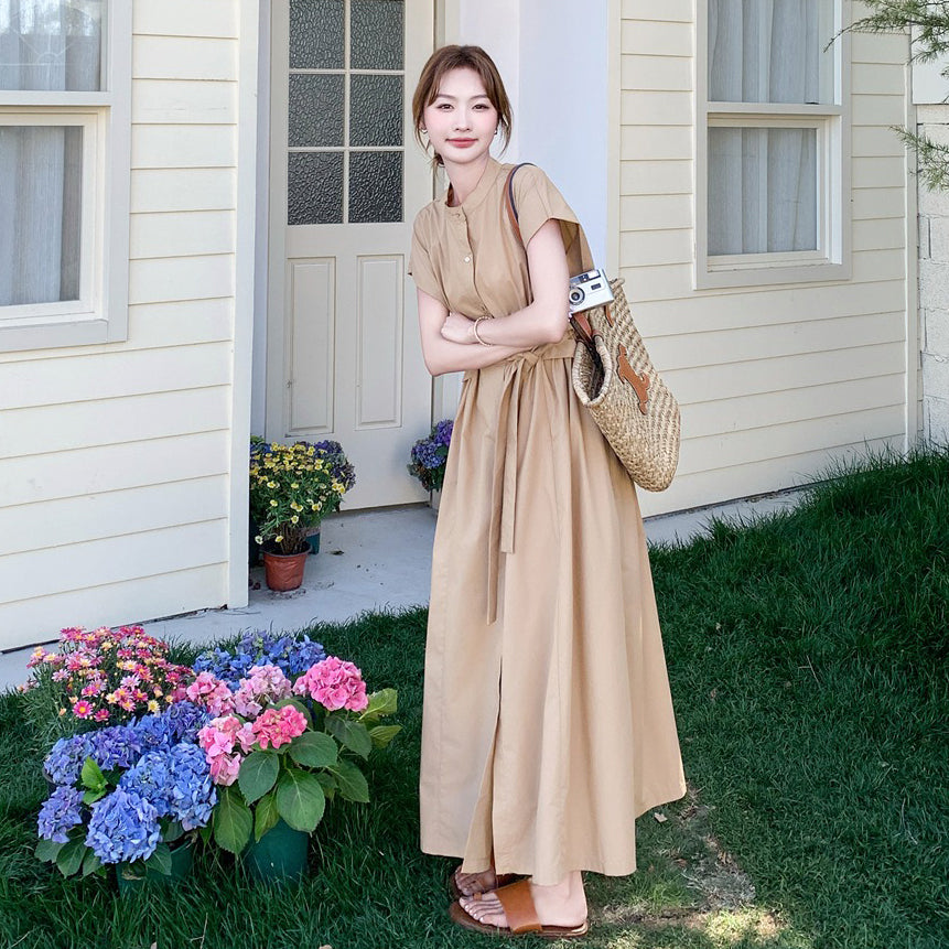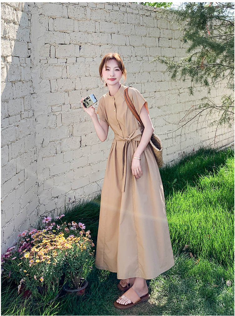 【ワンピース】カジュアル スリム見え カーキ シャツワンピース レディース 夏 ロング丈 個性的で美しい 気品あるおしゃれスタイル【JZシリーズ】