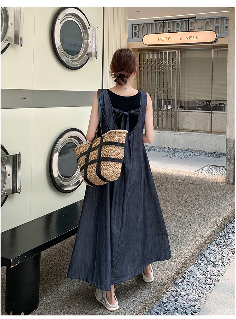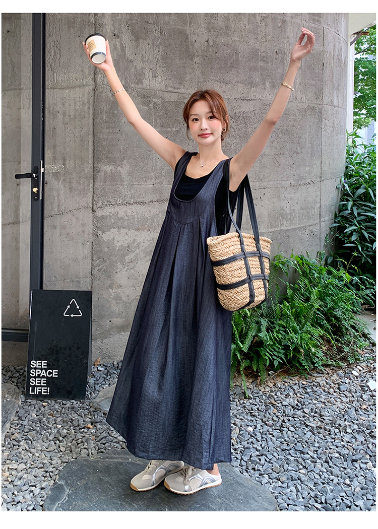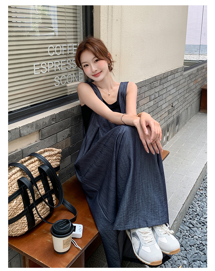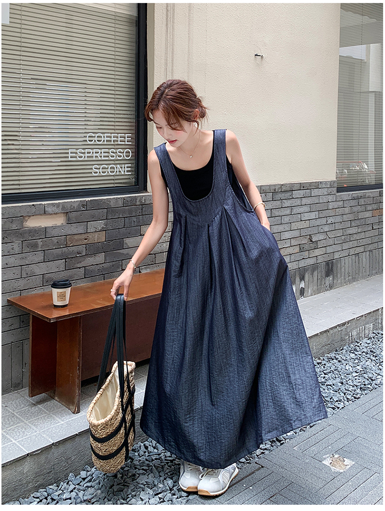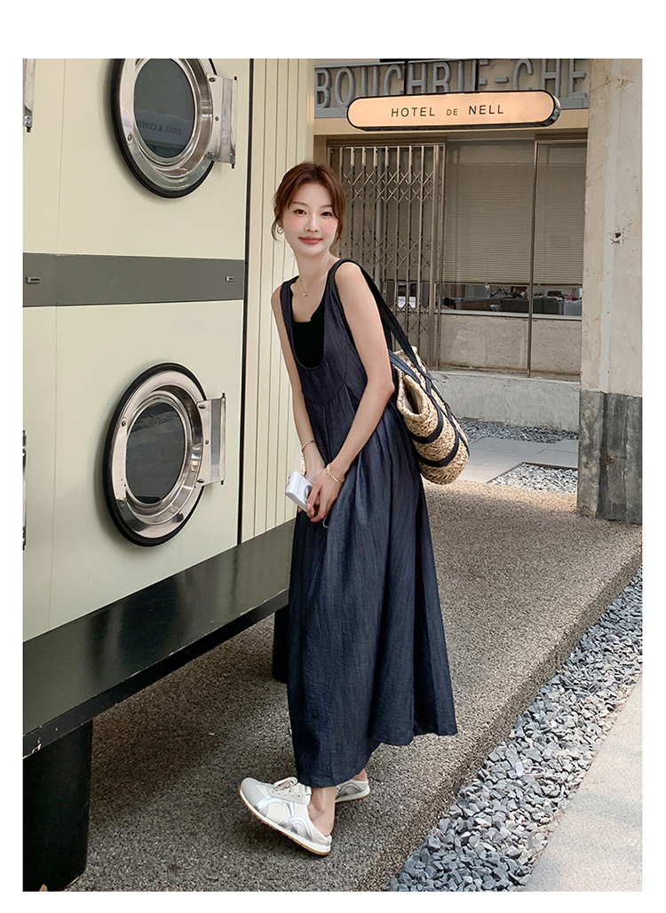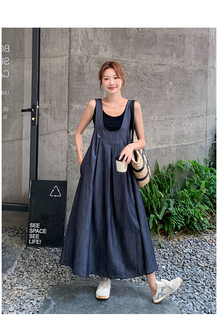 2点セット!【セットアップ】重ね着でおしゃれ ノースリーブ デニムサロペットワンピースセット レディース 夏 学院風 若見え スリム見え 体型カバー【JZシリーズ】