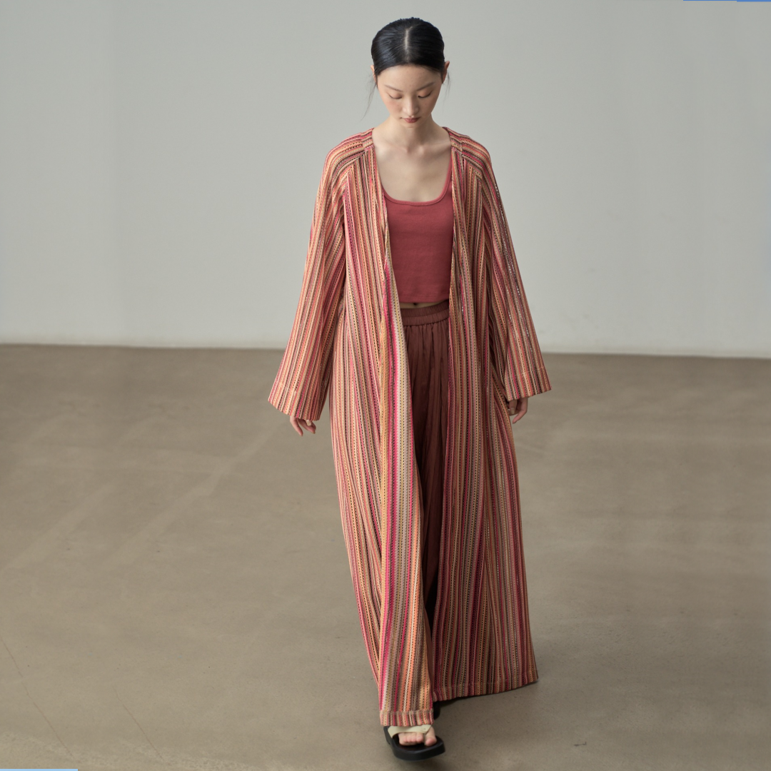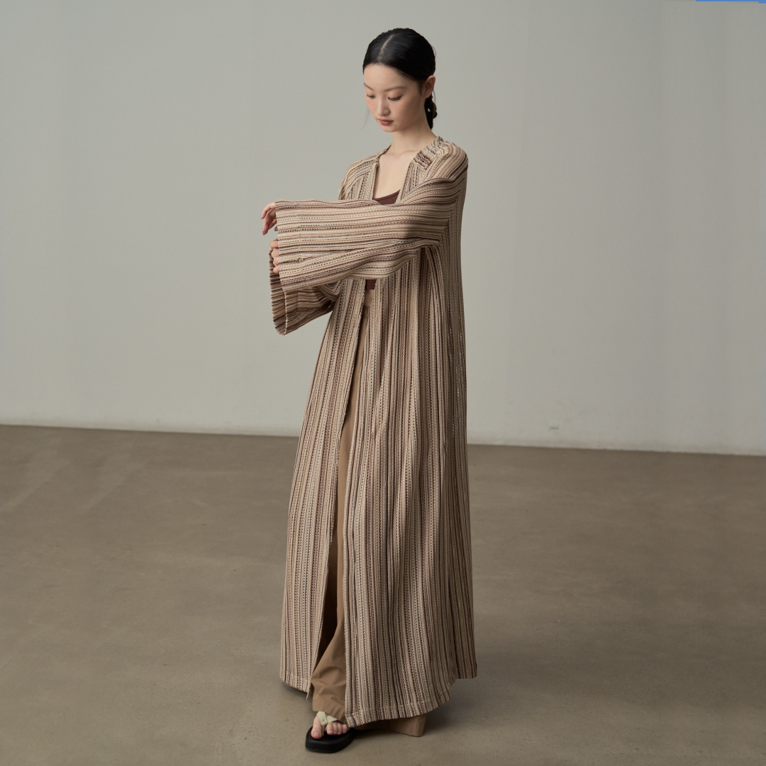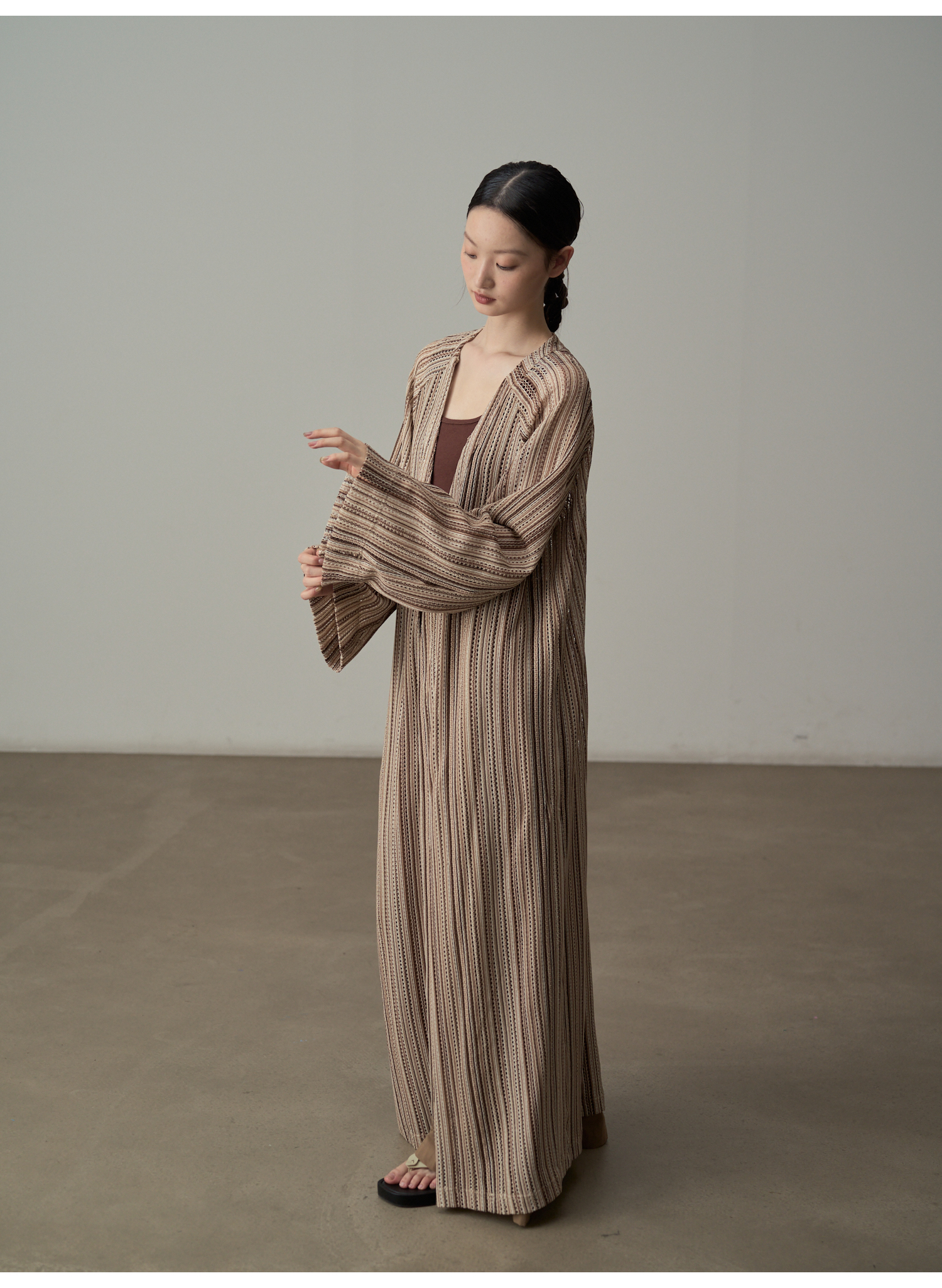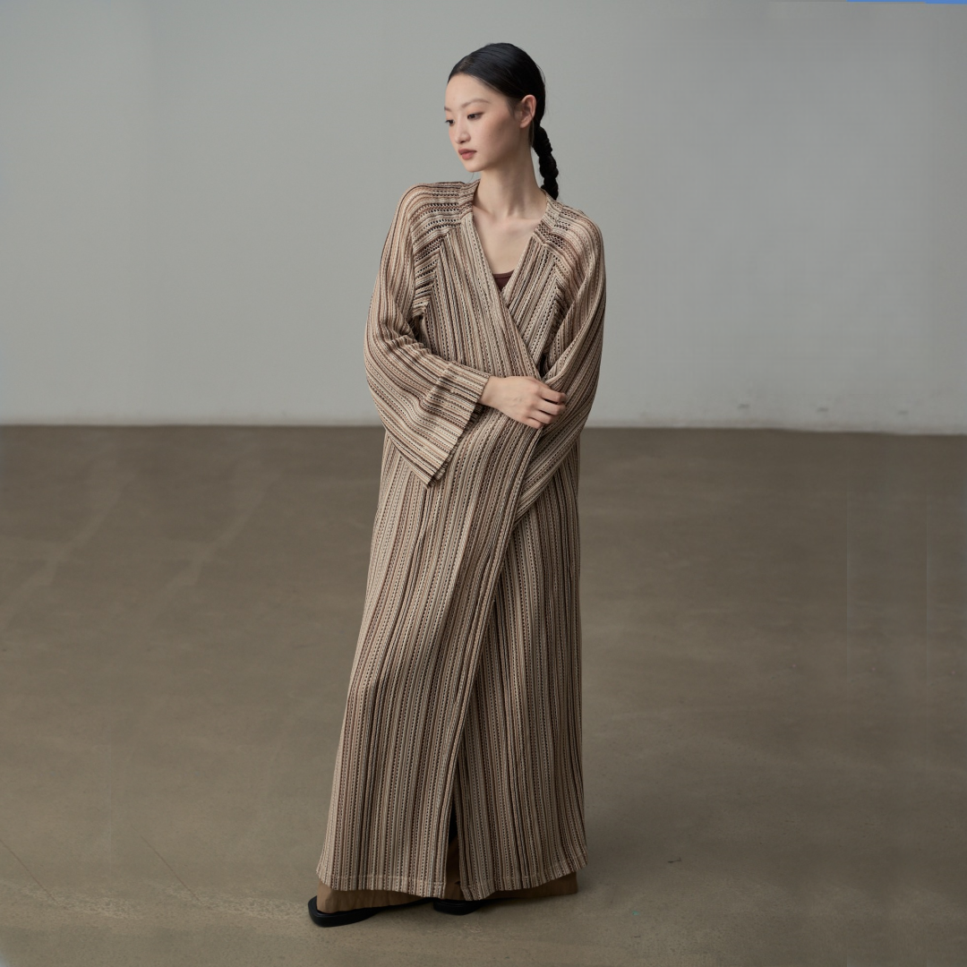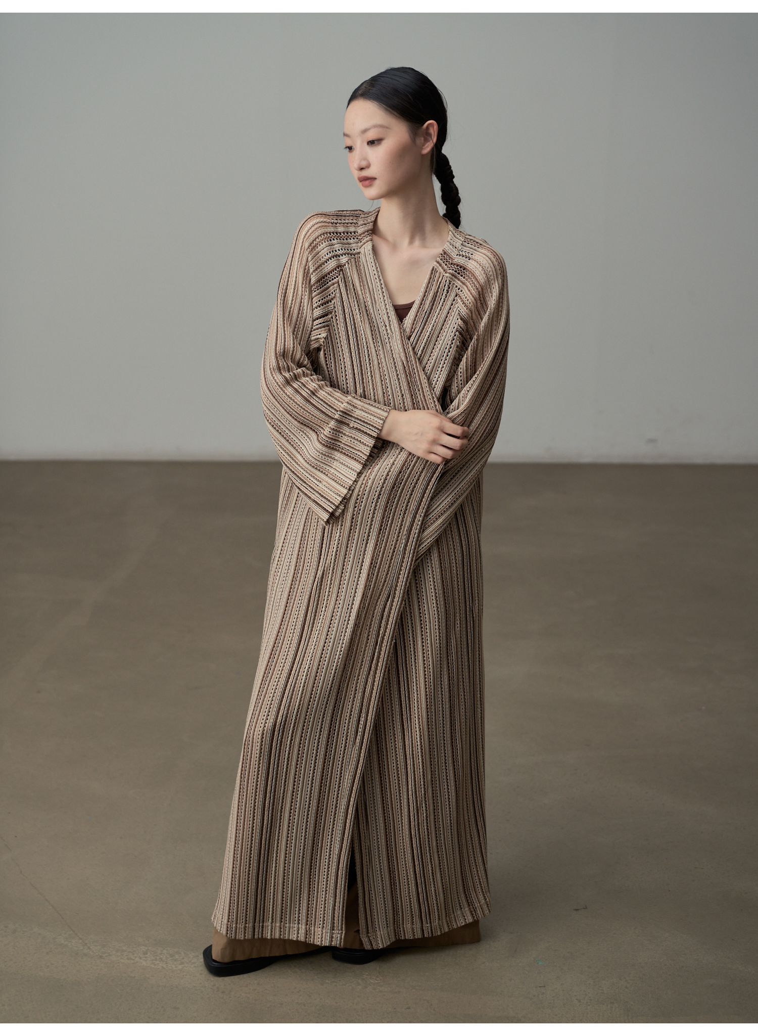 【商品名】【ワンピース】春 秋 夏 ストライプ柄 ゆったり 体型カバー 長袖 ワンピース 【SHシリーズ】