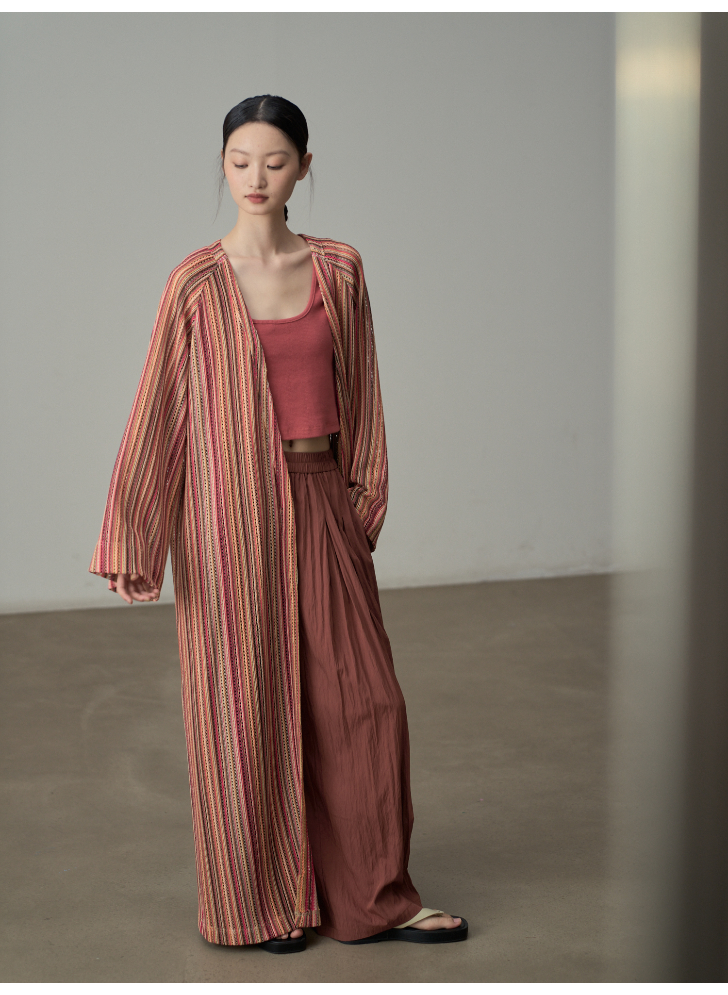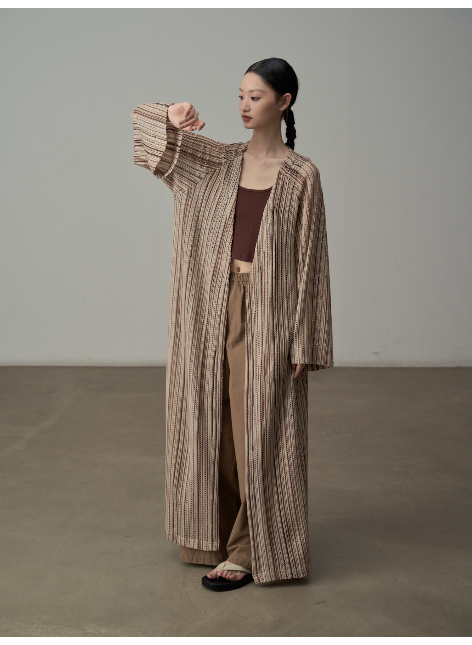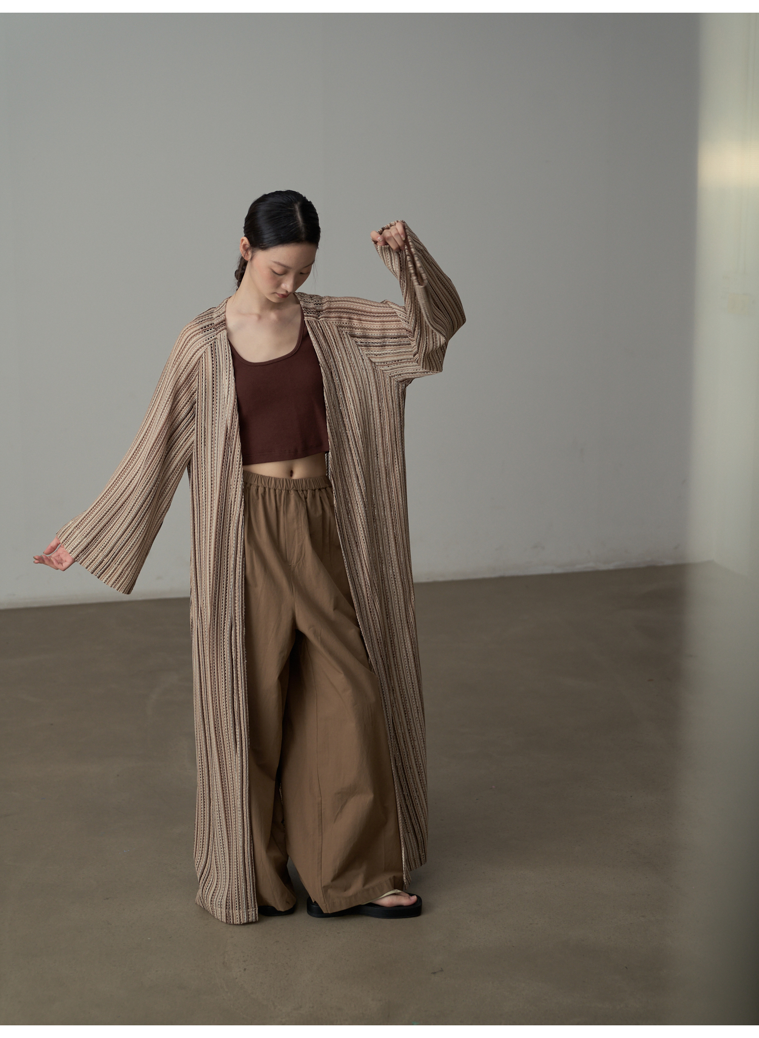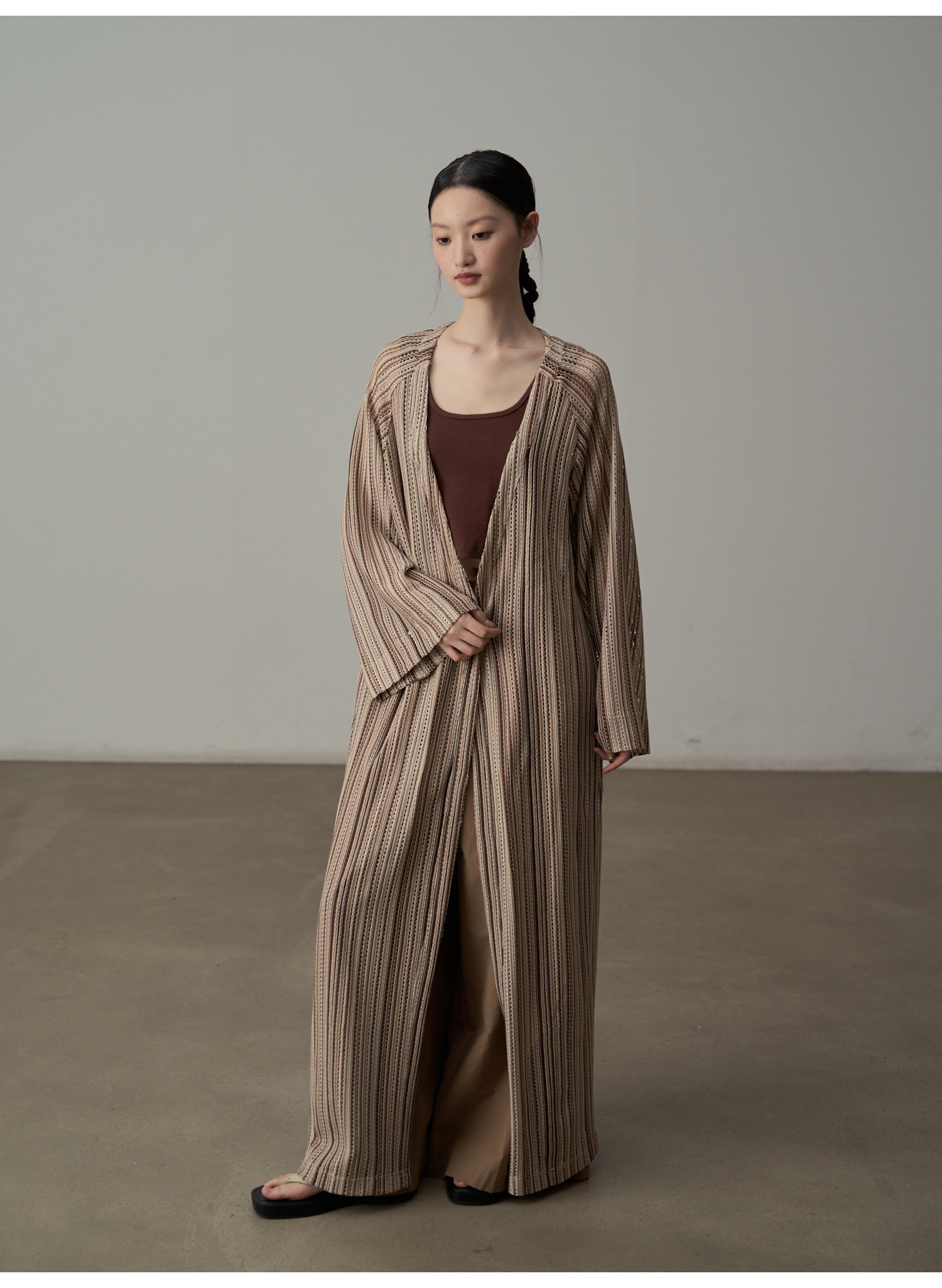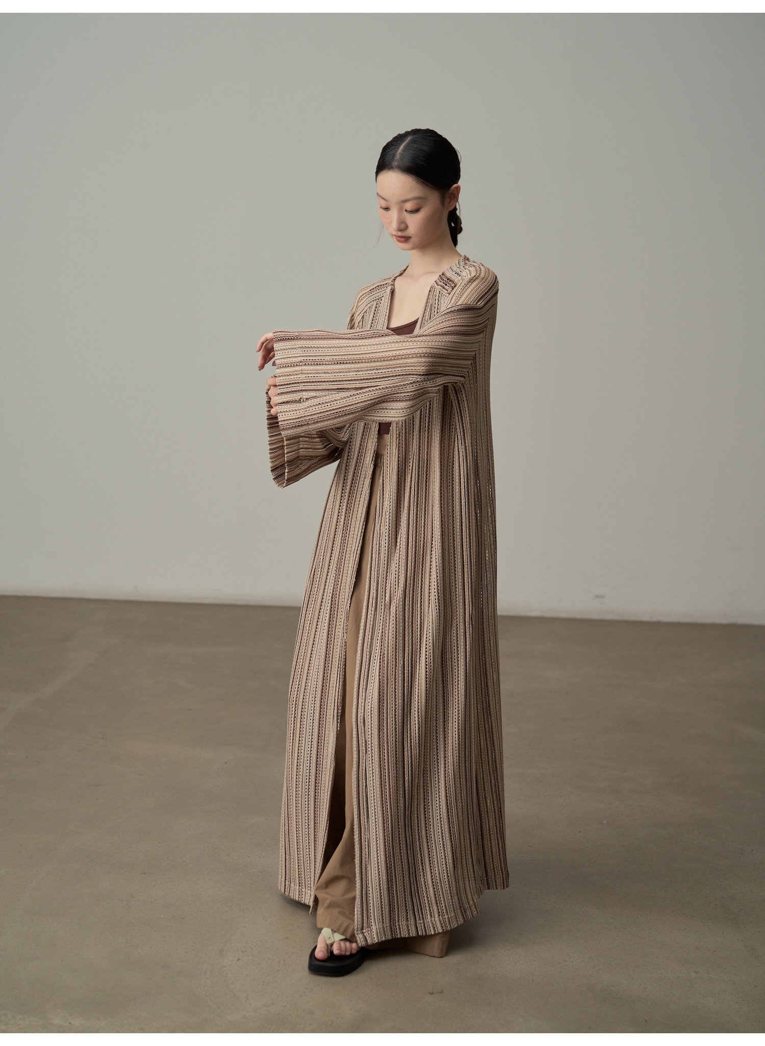 【商品名】【ワンピース】春 秋 夏 ストライプ柄 ゆったり 体型カバー 長袖 ワンピース 【SHシリーズ】