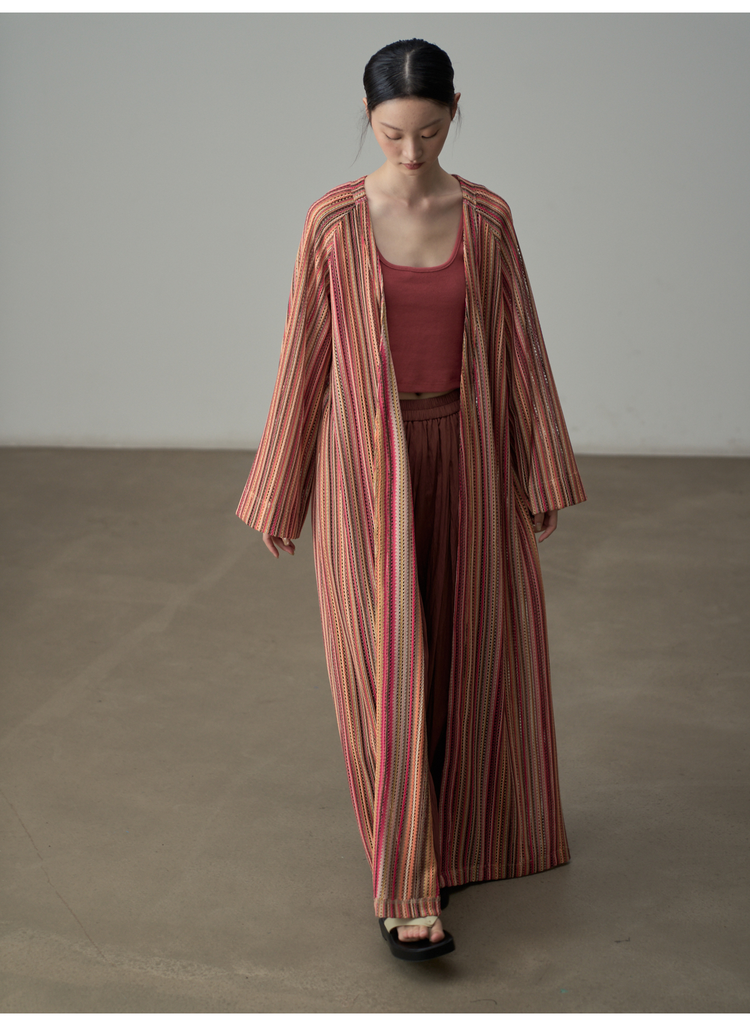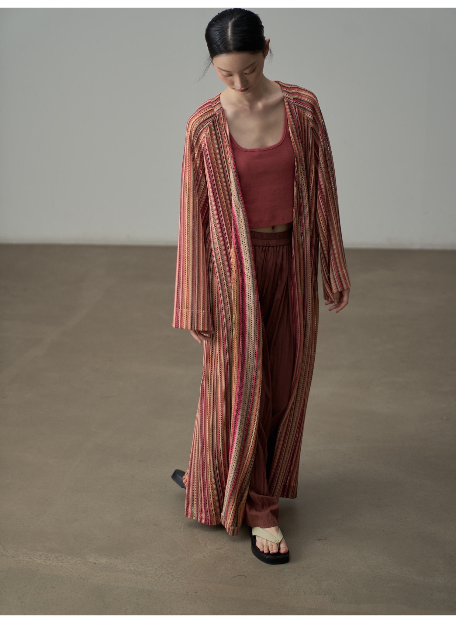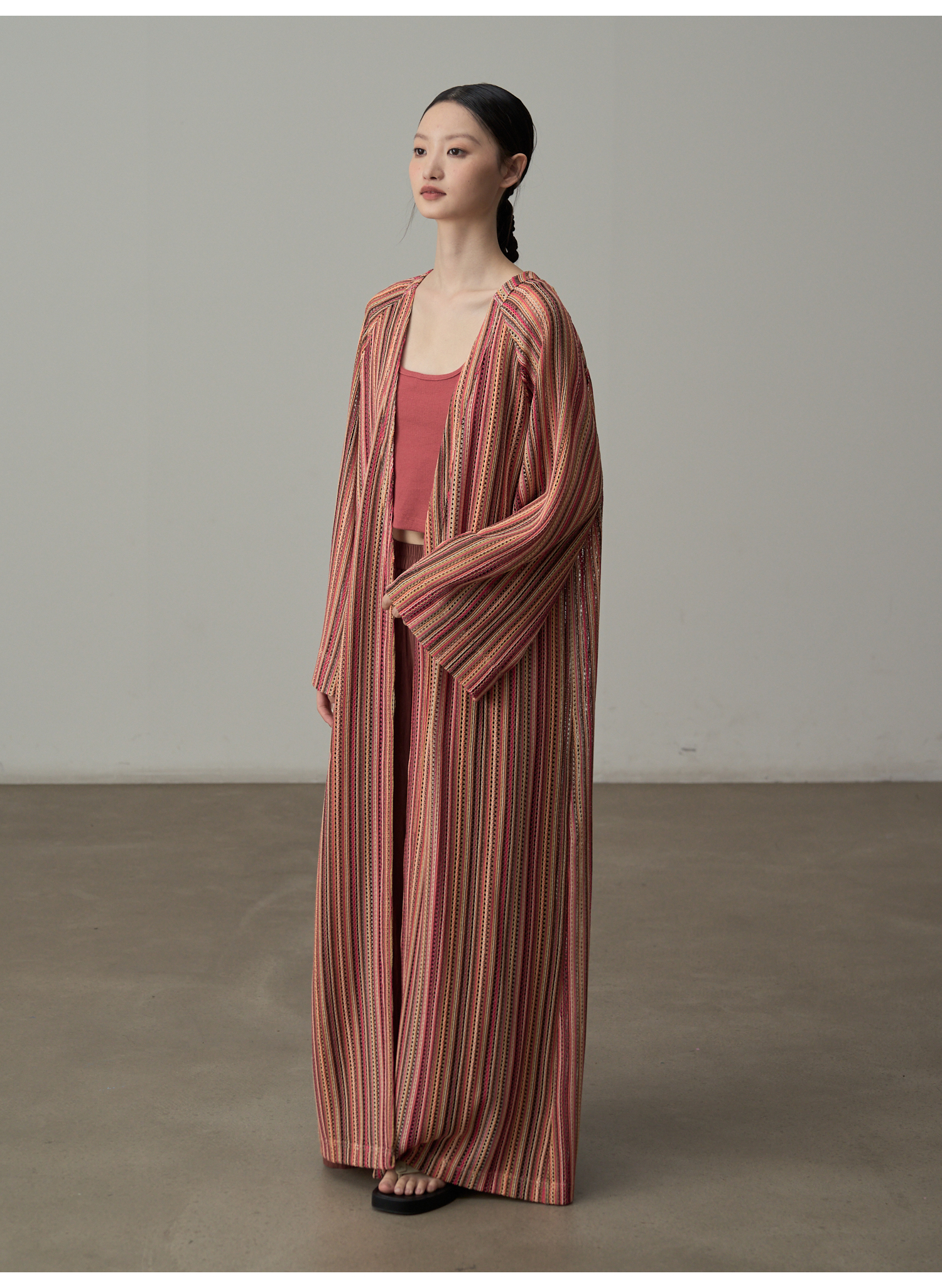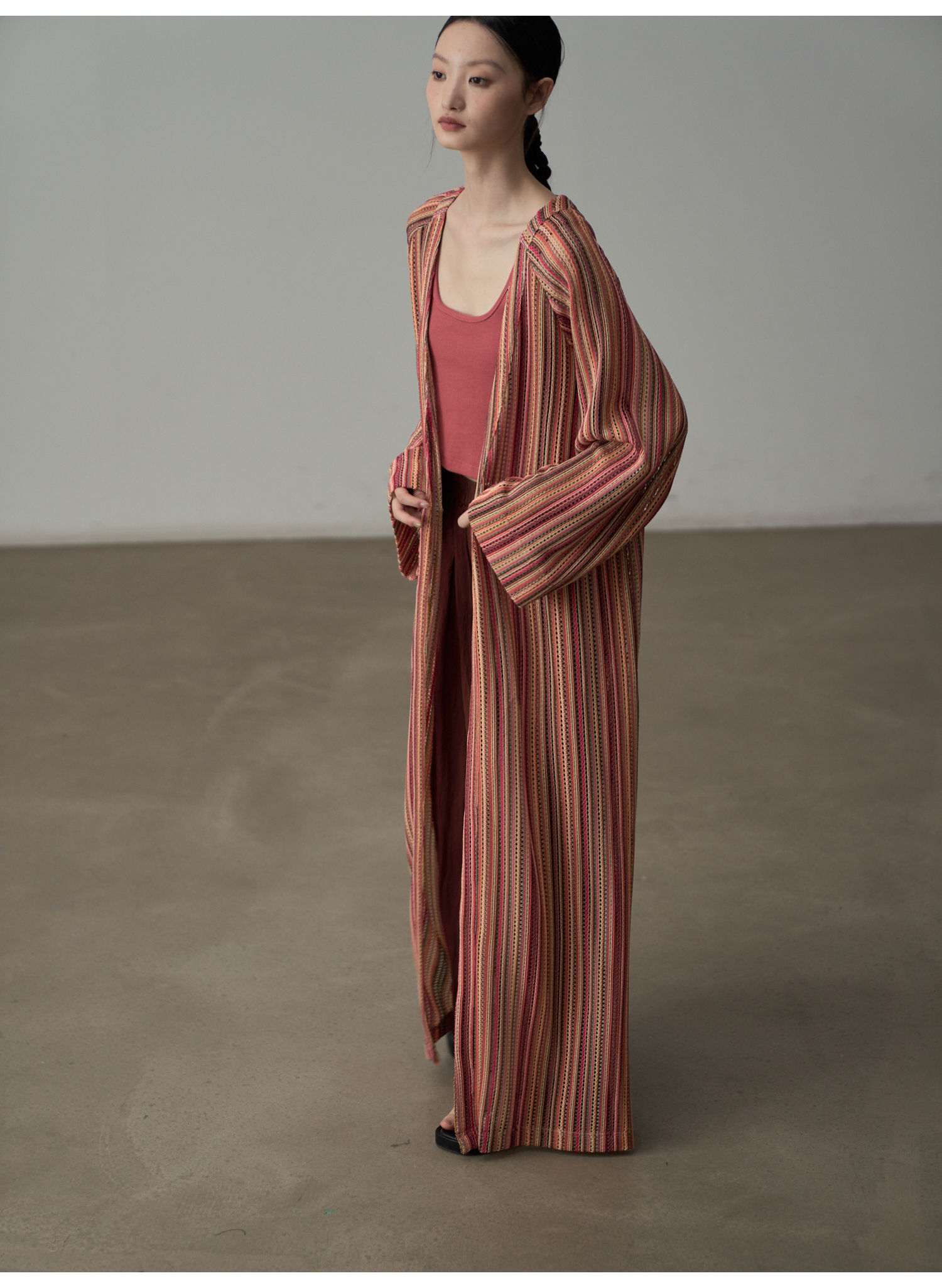 【商品名】【ワンピース】春 秋 夏 ストライプ柄 ゆったり 体型カバー 長袖 ワンピース 【SHシリーズ】