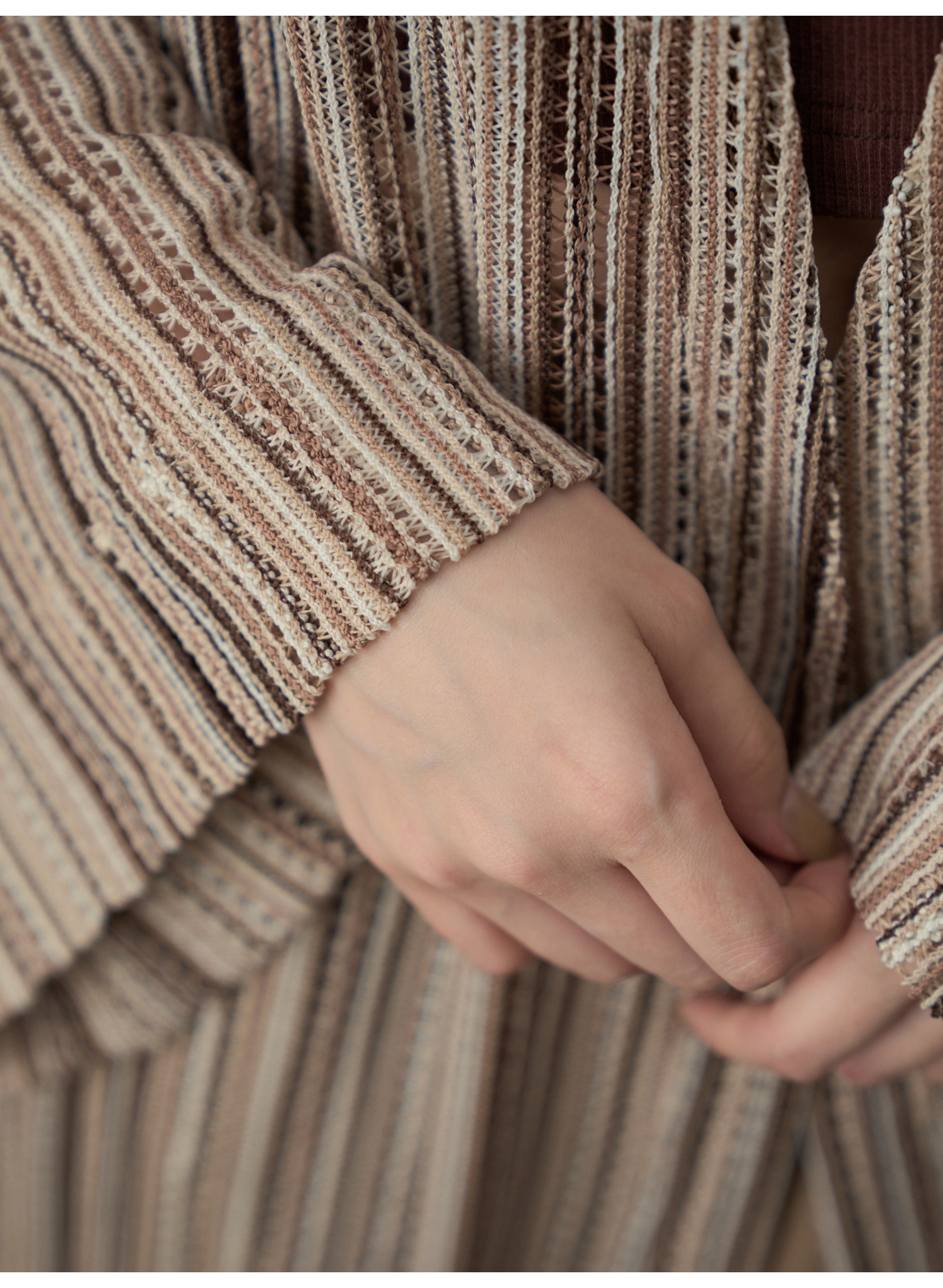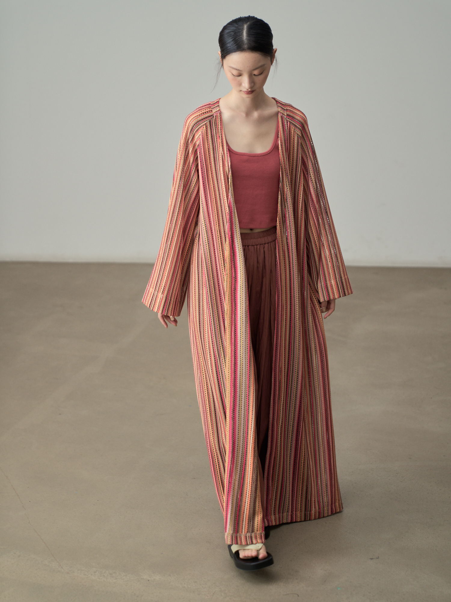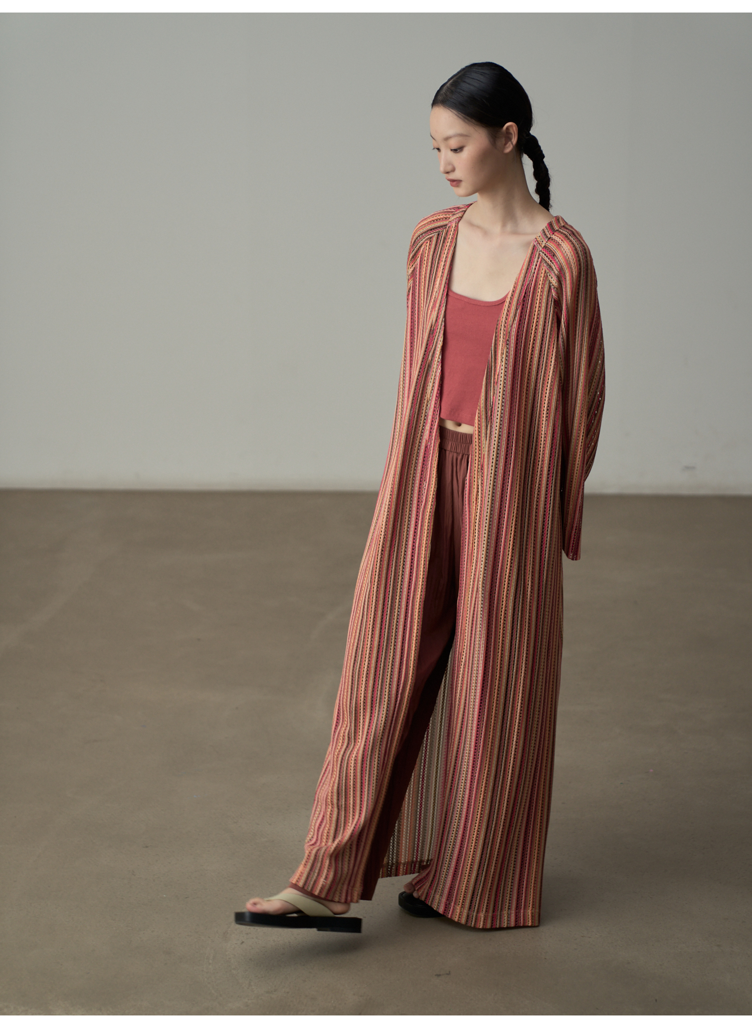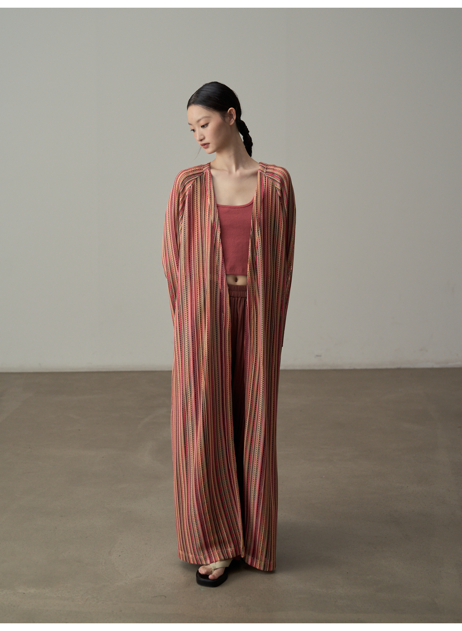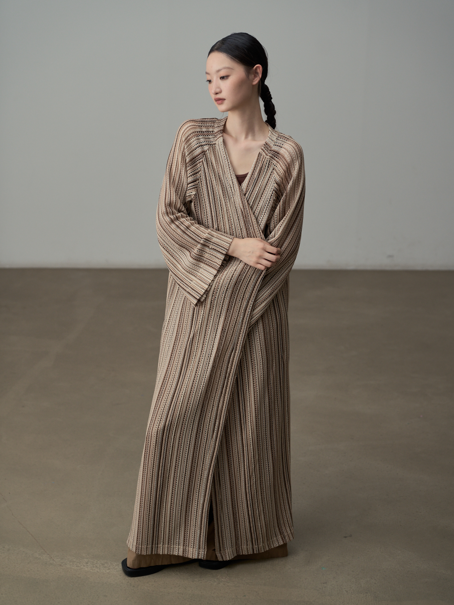 【商品名】【ワンピース】春 秋 夏 ストライプ柄 ゆったり 体型カバー 長袖 ワンピース 【SHシリーズ】