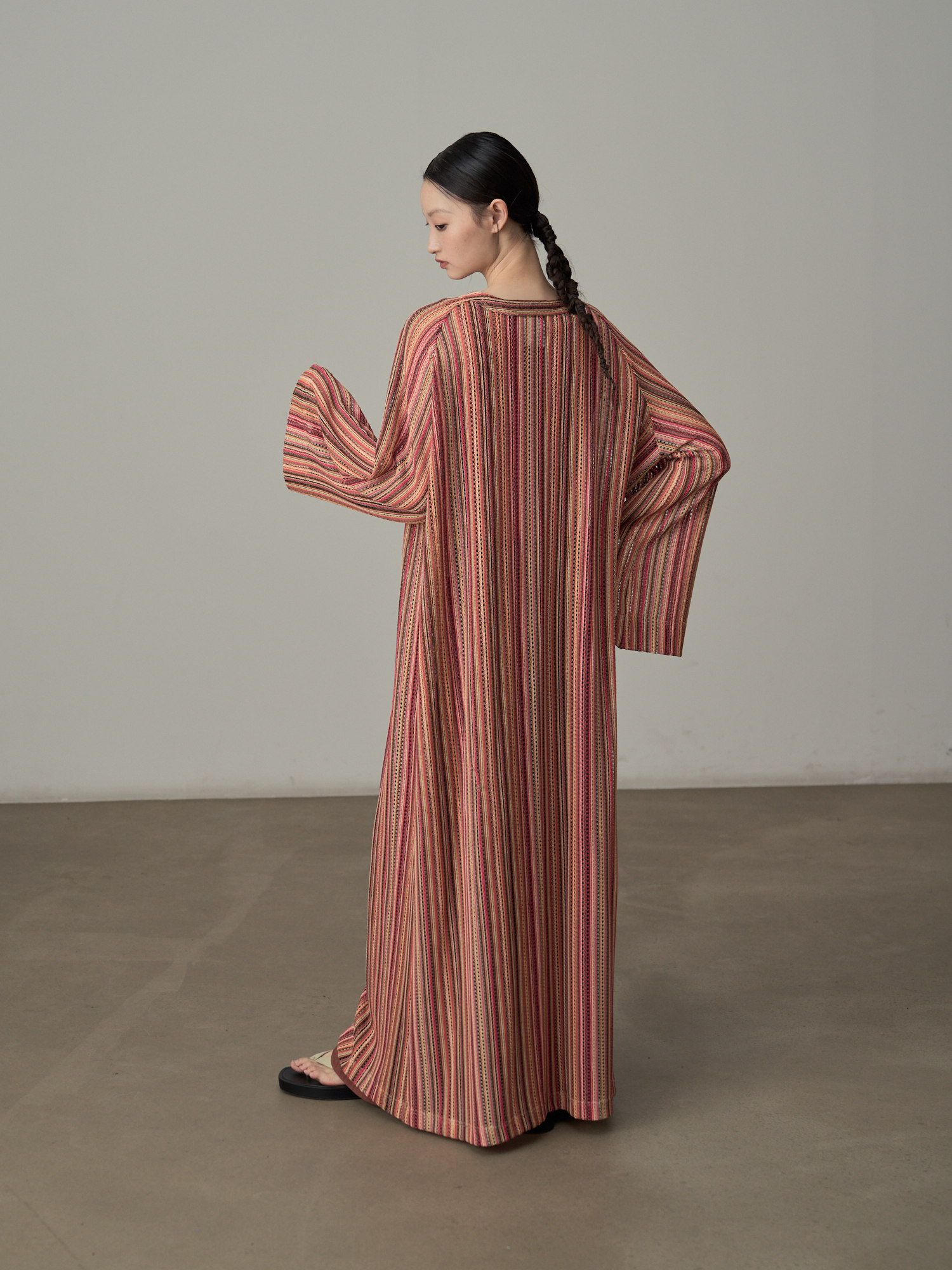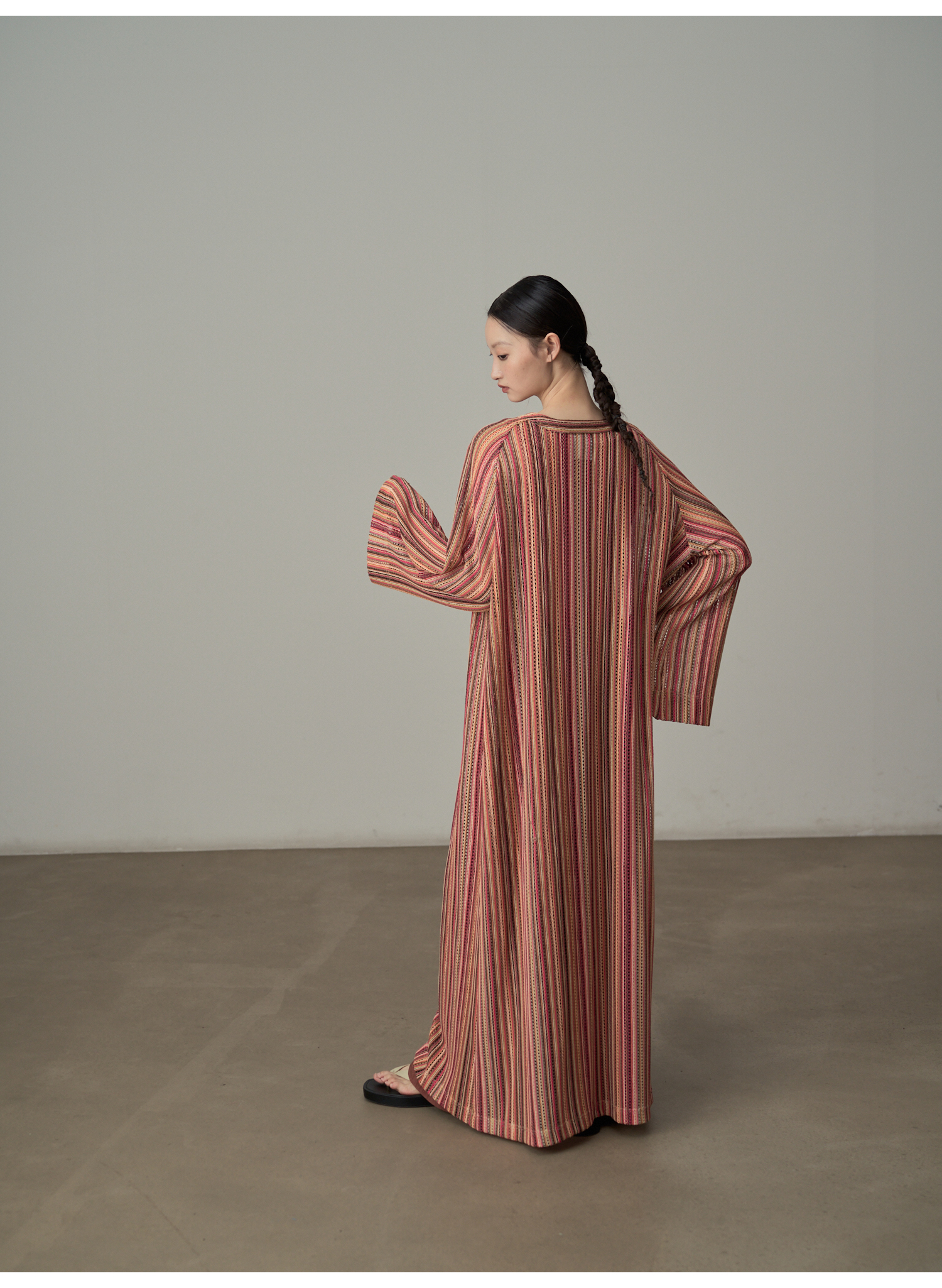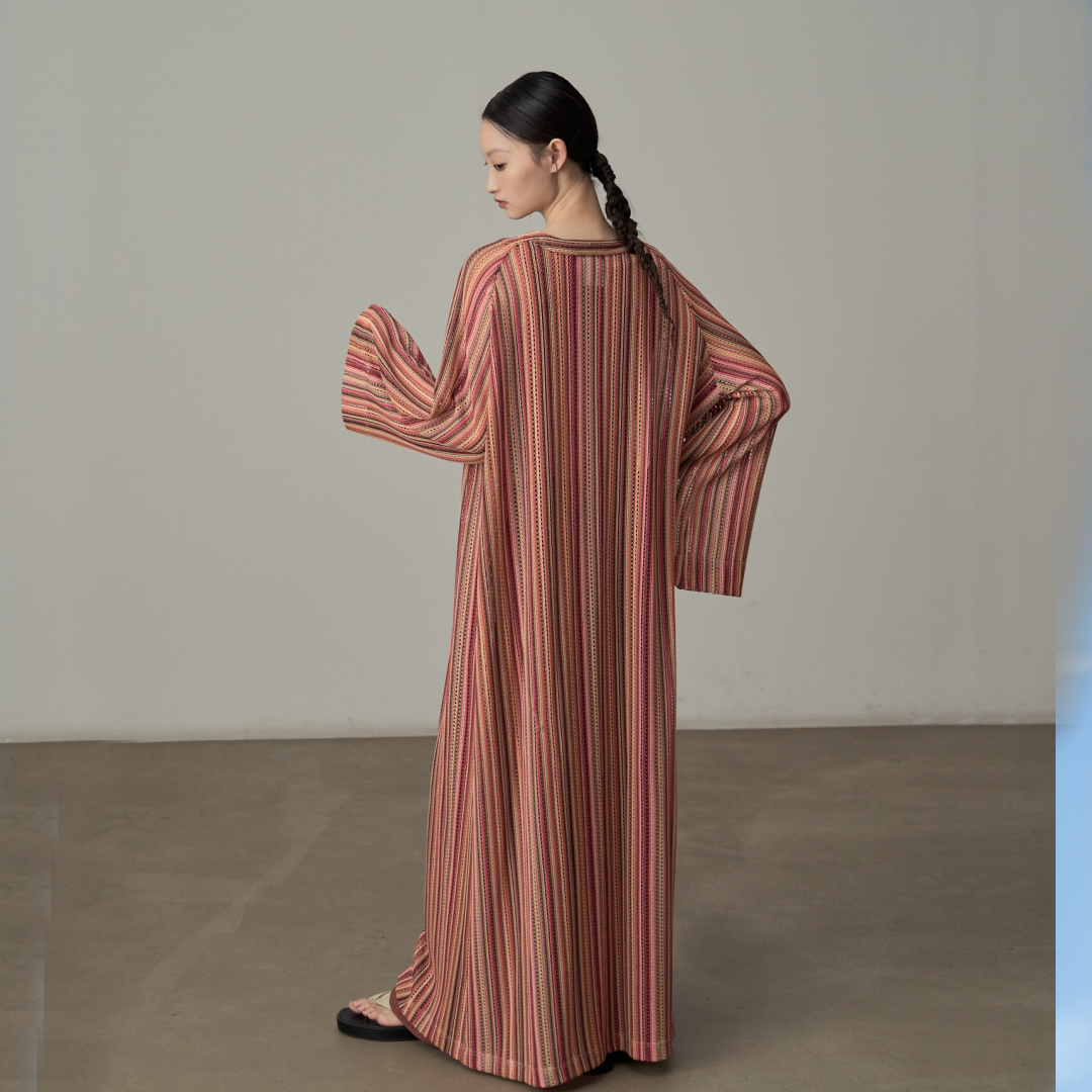 【ワンピース】春 秋 夏 ストライプ柄 ゆったり 体型カバー 長袖 ワンピース 【SHシリーズ】
