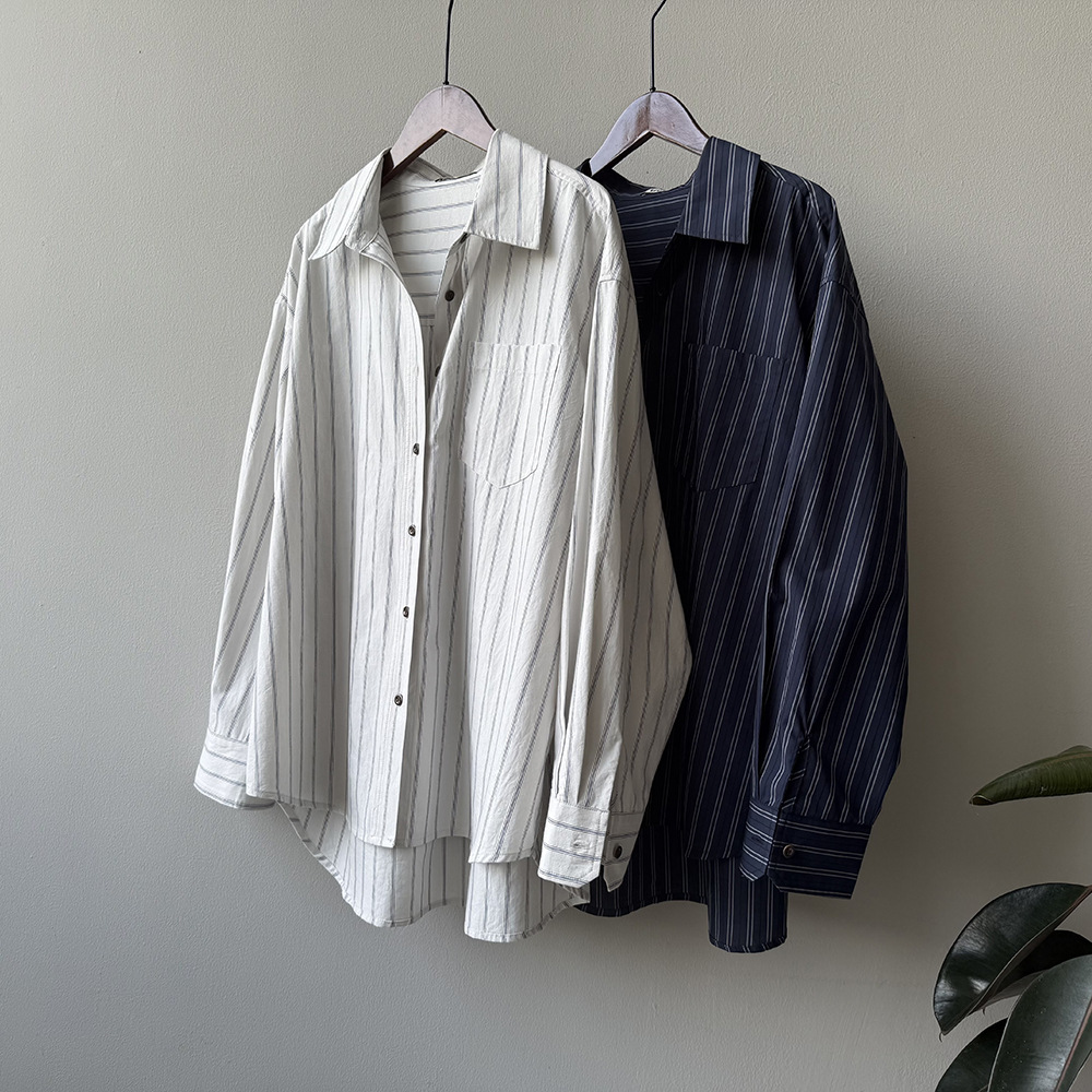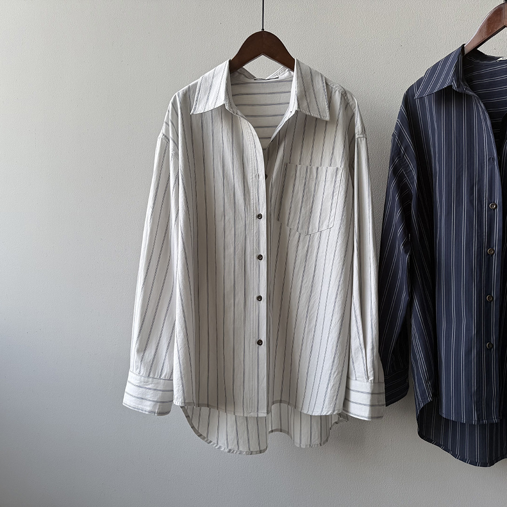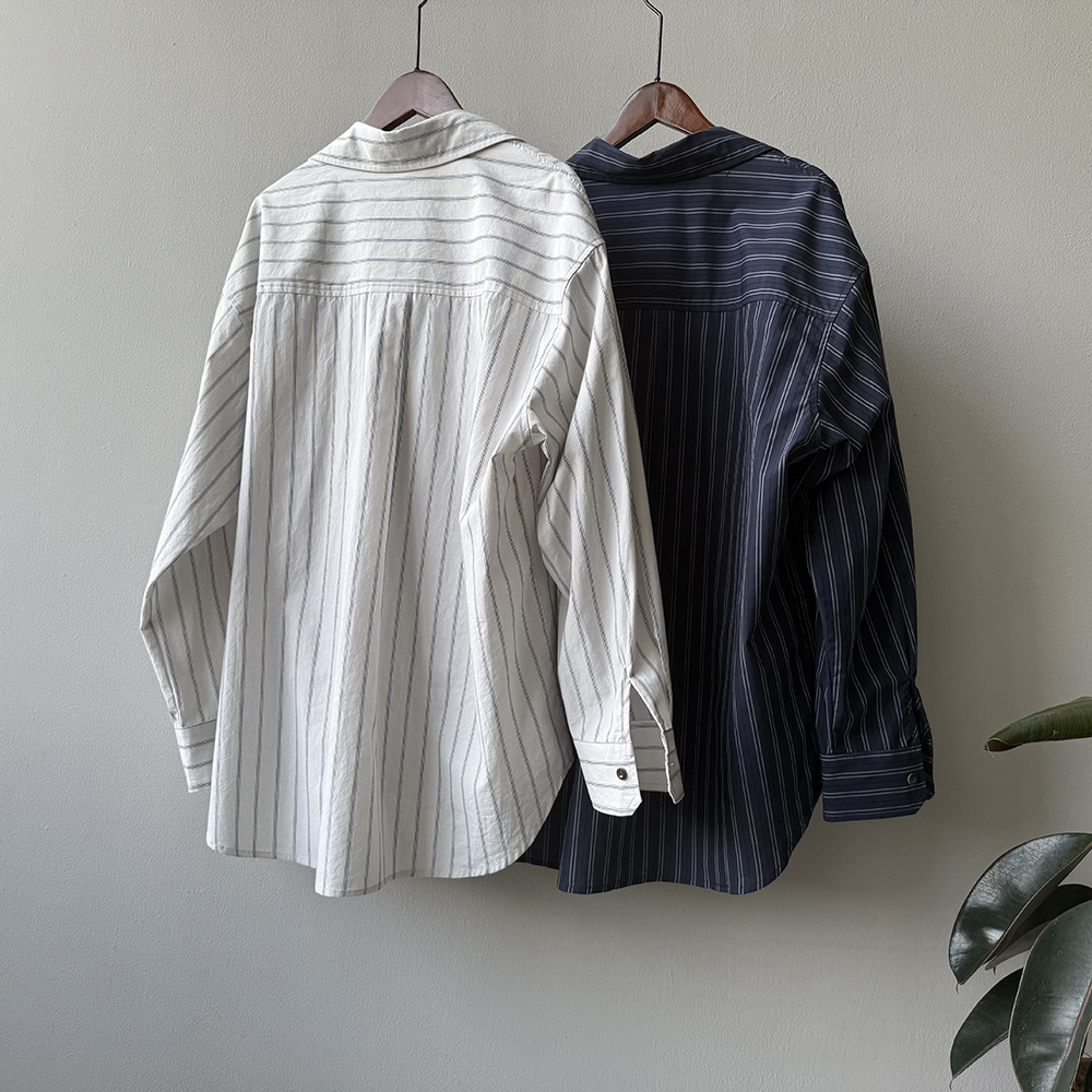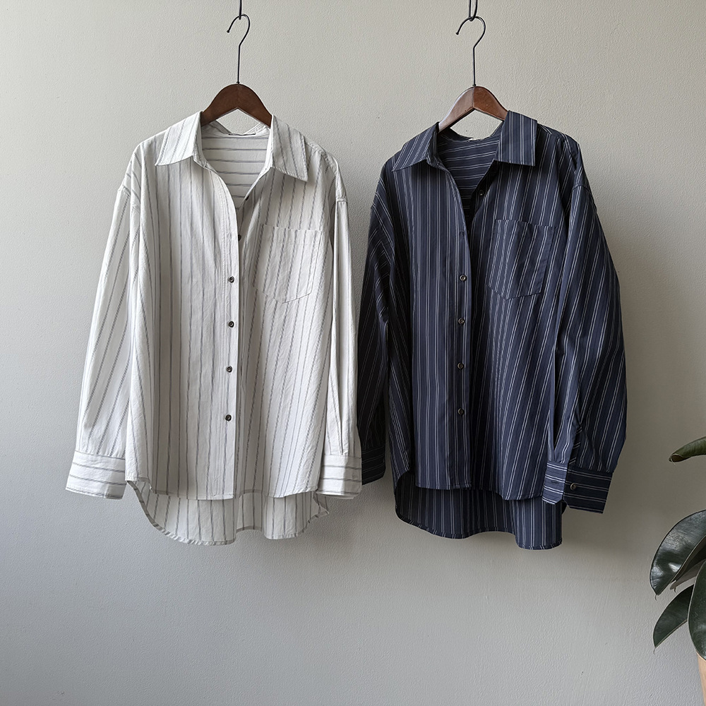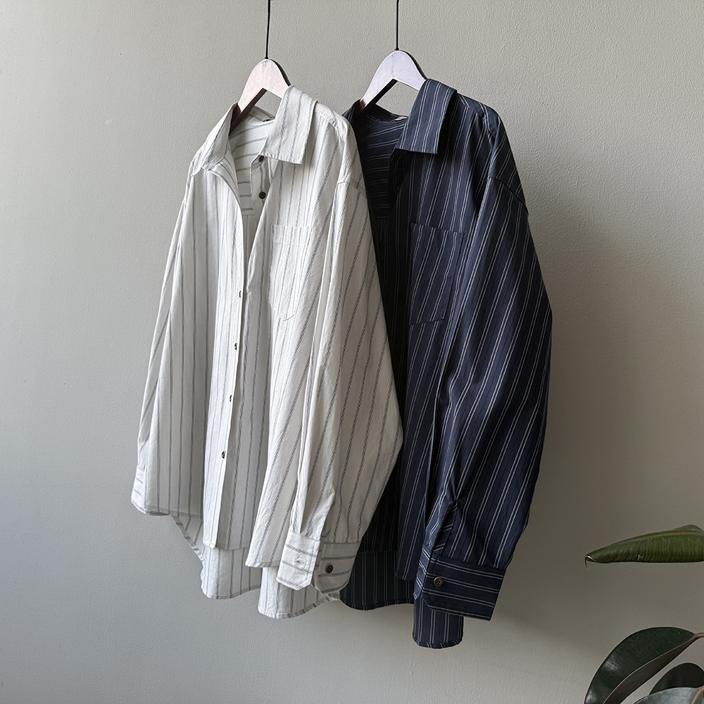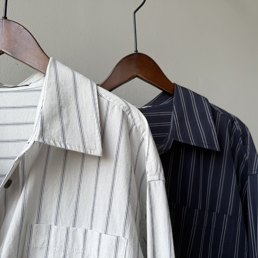 【トップス】春 秋 夏 冬 ストライプ柄 立襟 長袖 シャツ 【JZシリーズ】