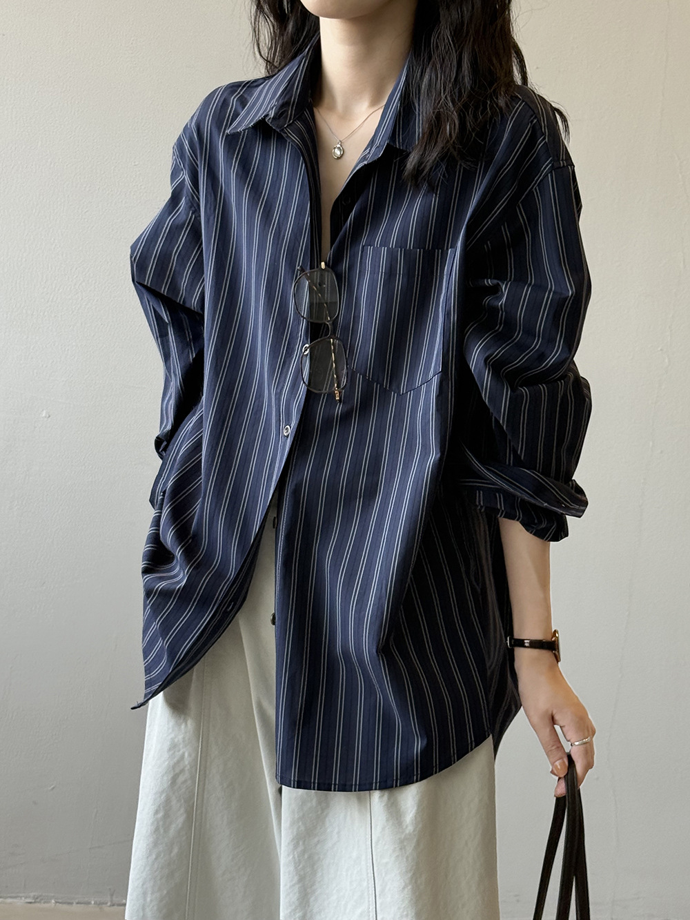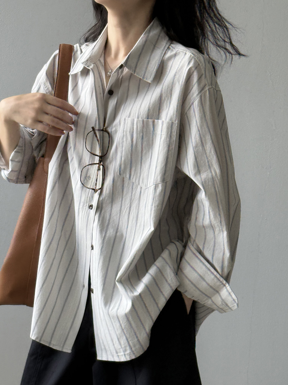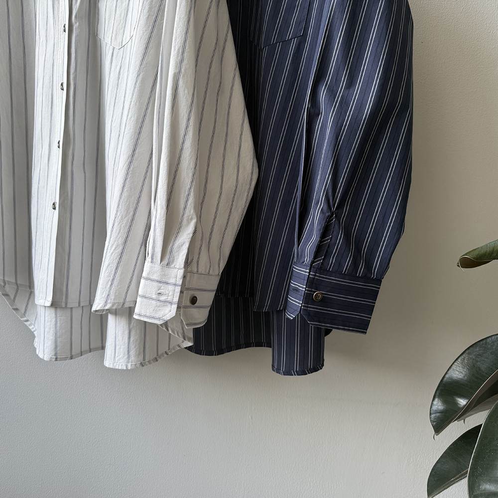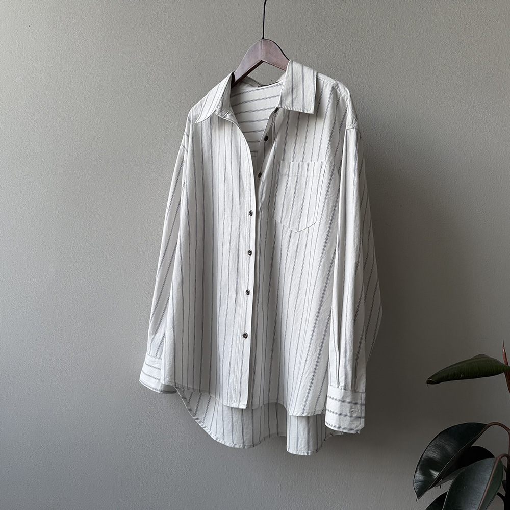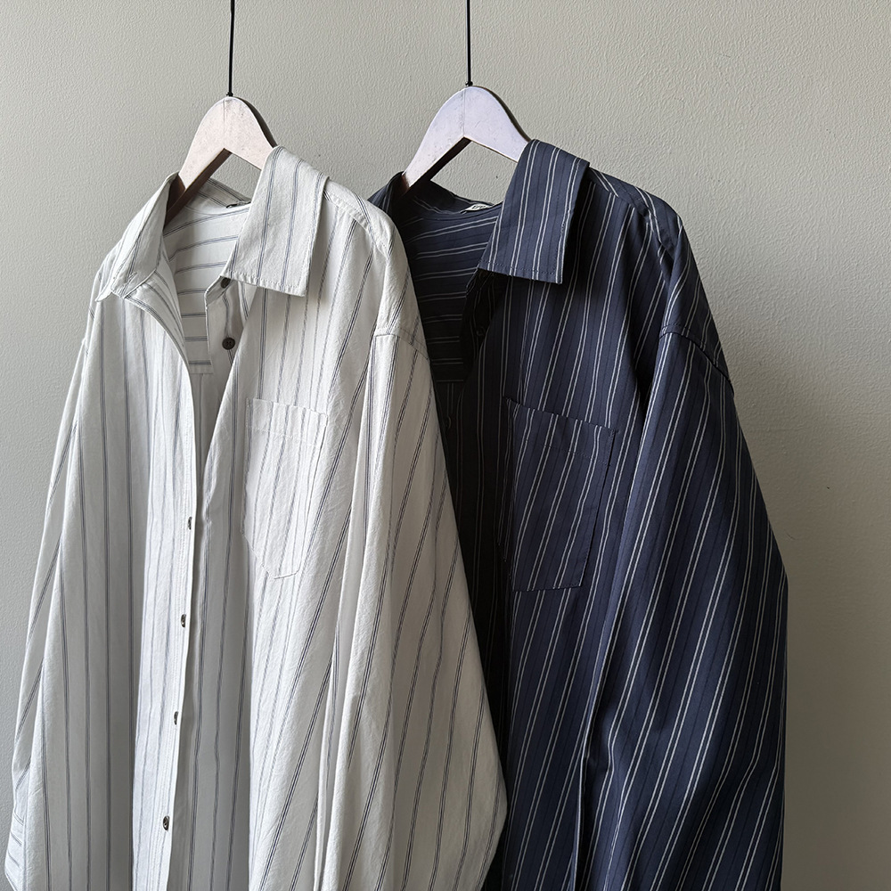 【トップス】春 秋 夏 冬 ストライプ柄 立襟 長袖 シャツ 【JZシリーズ】