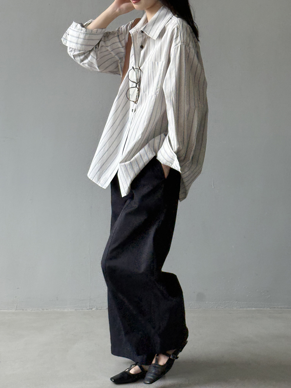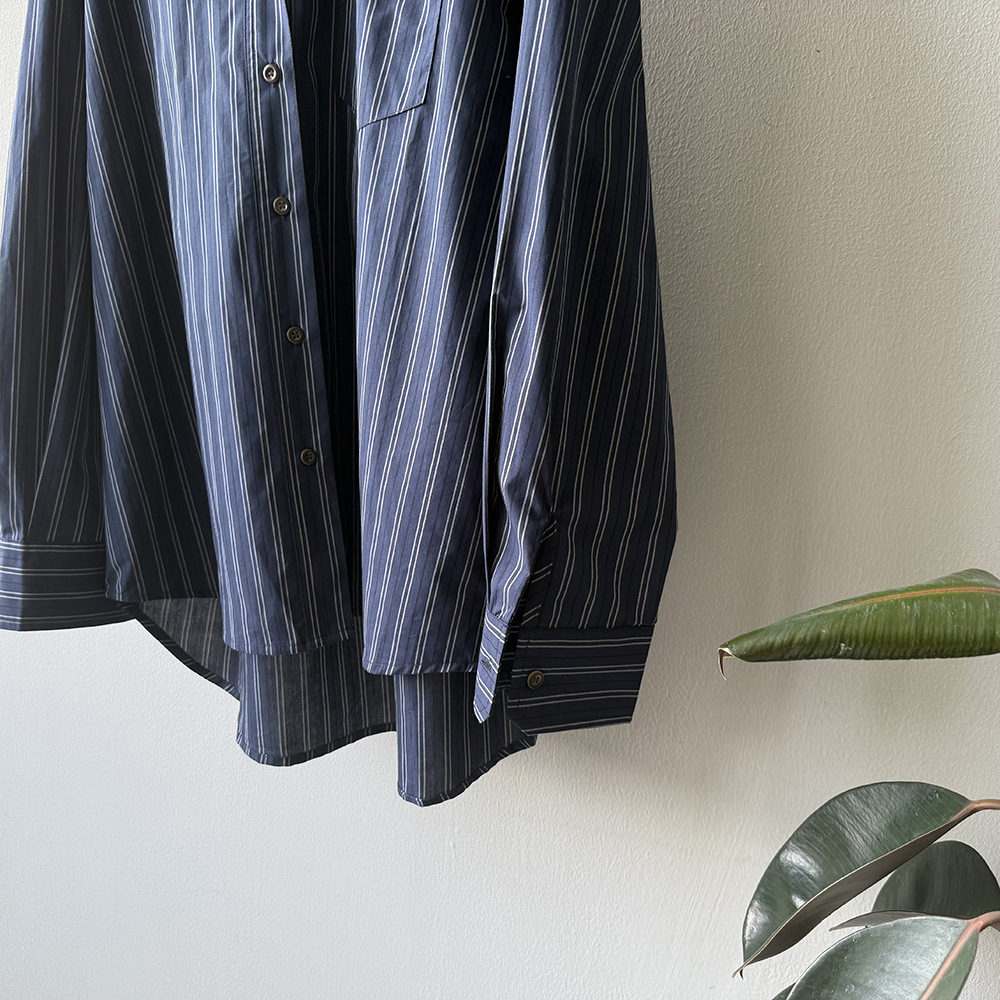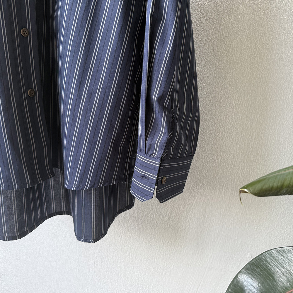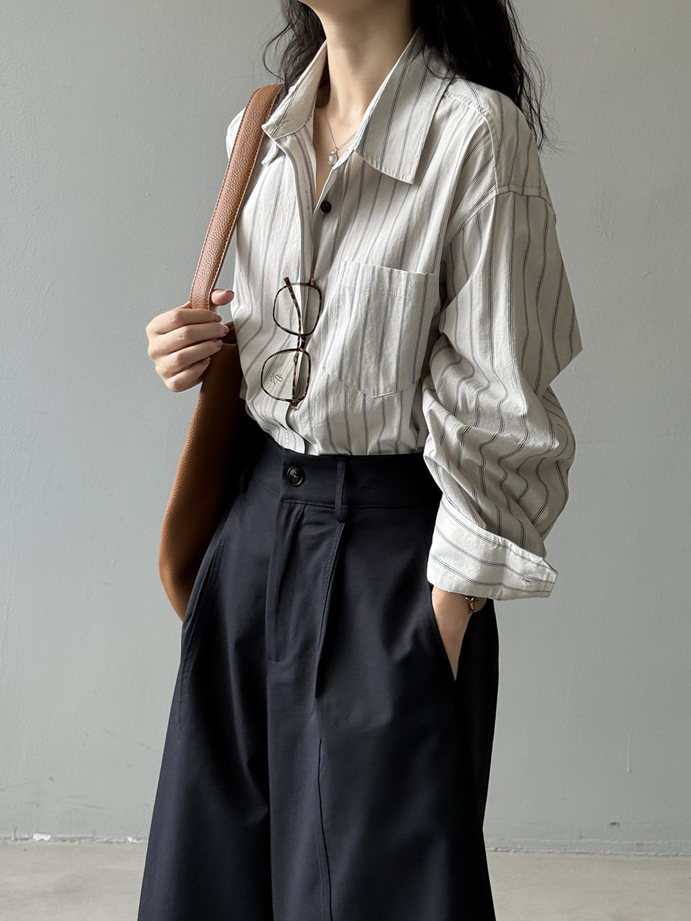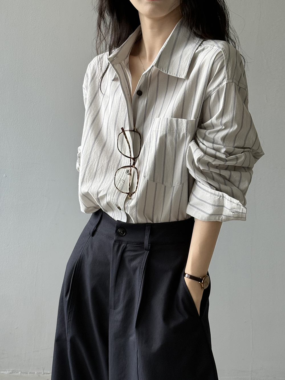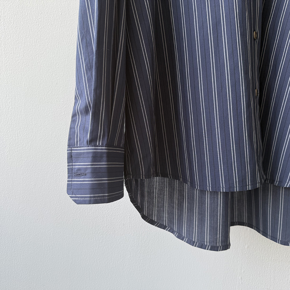 【トップス】春 秋 夏 冬 ストライプ柄 立襟 長袖 シャツ 【JZシリーズ】