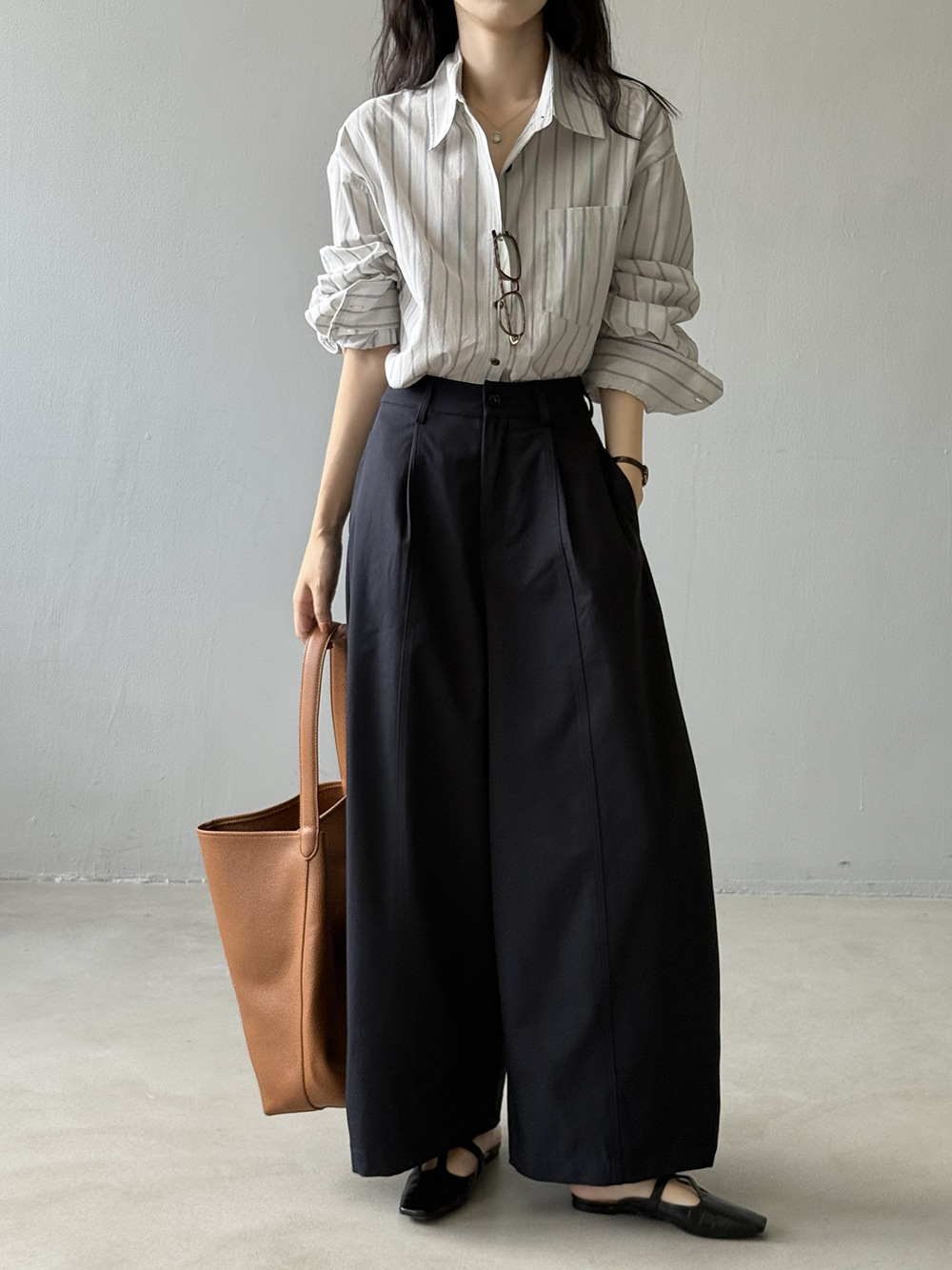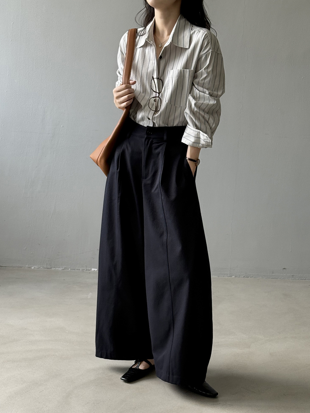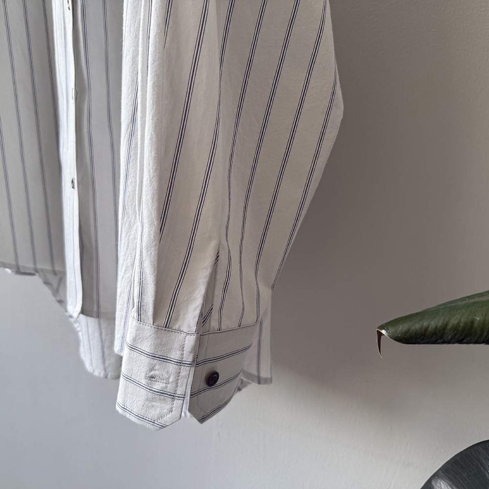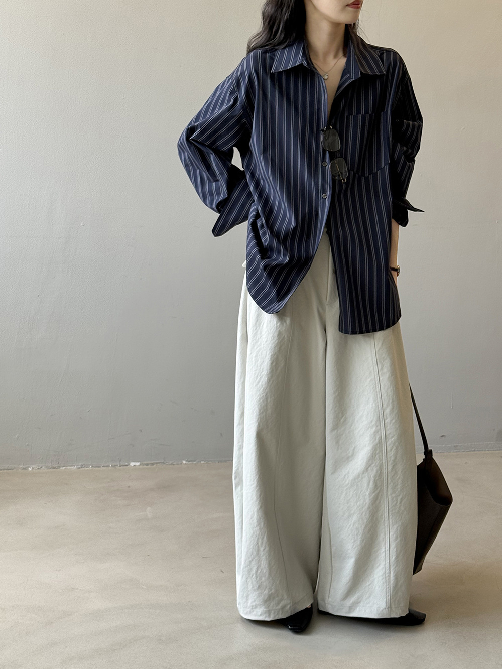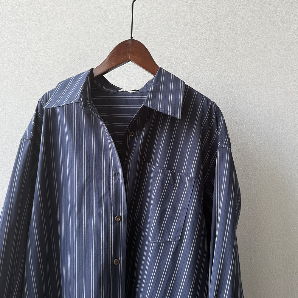 【トップス】春 秋 夏 冬 ストライプ柄 立襟 長袖 シャツ 【JZシリーズ】
