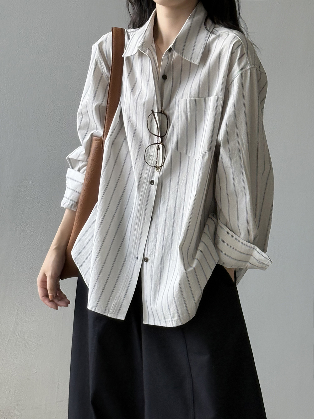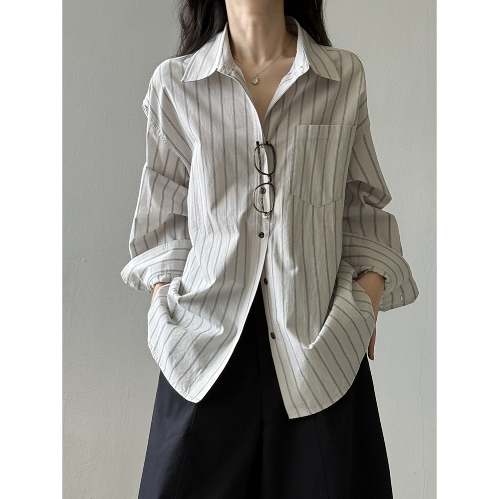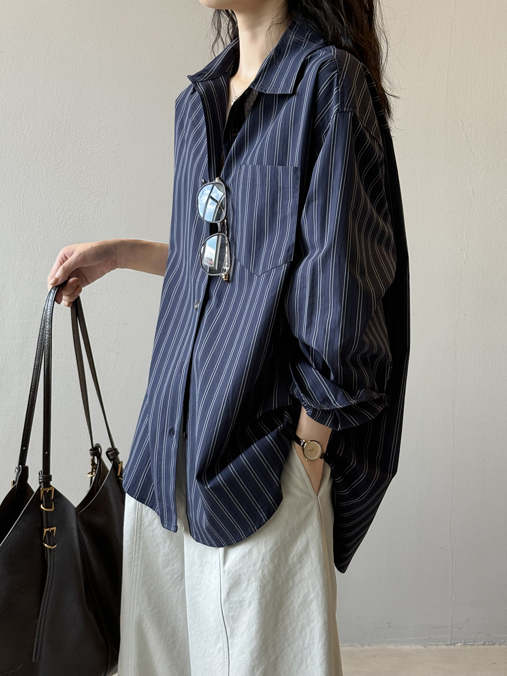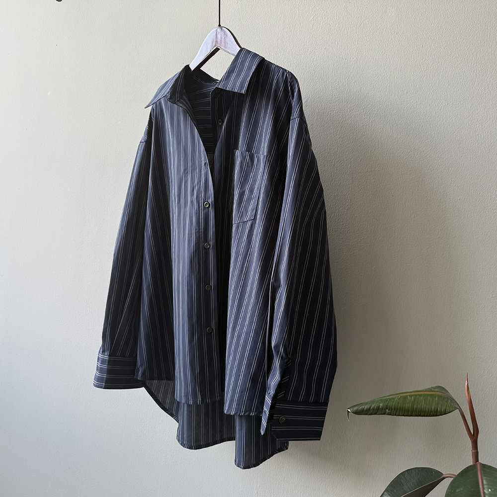 【商品名】【トップス】春 秋 夏 冬 ストライプ柄 立襟 長袖 シャツ 【JZシリーズ】