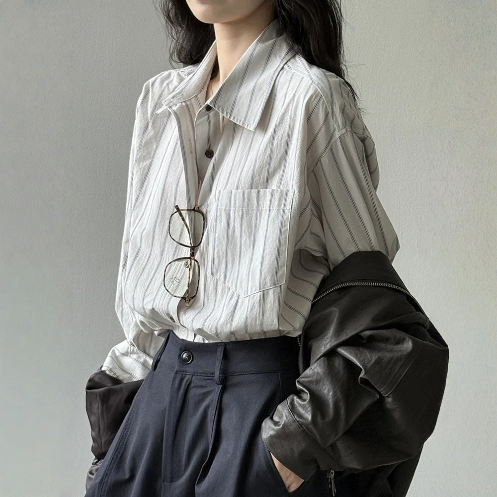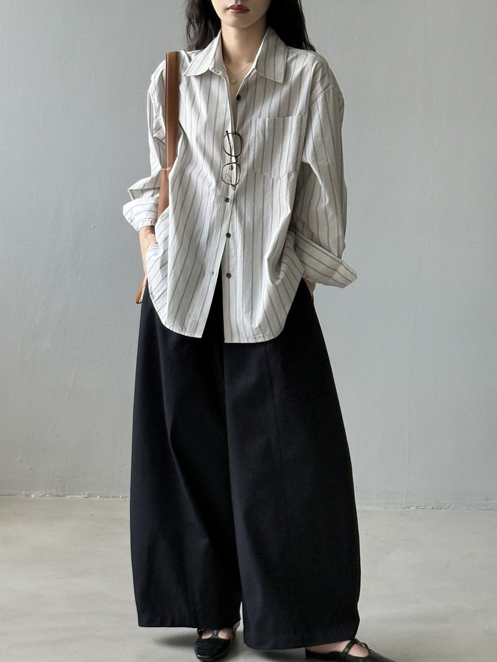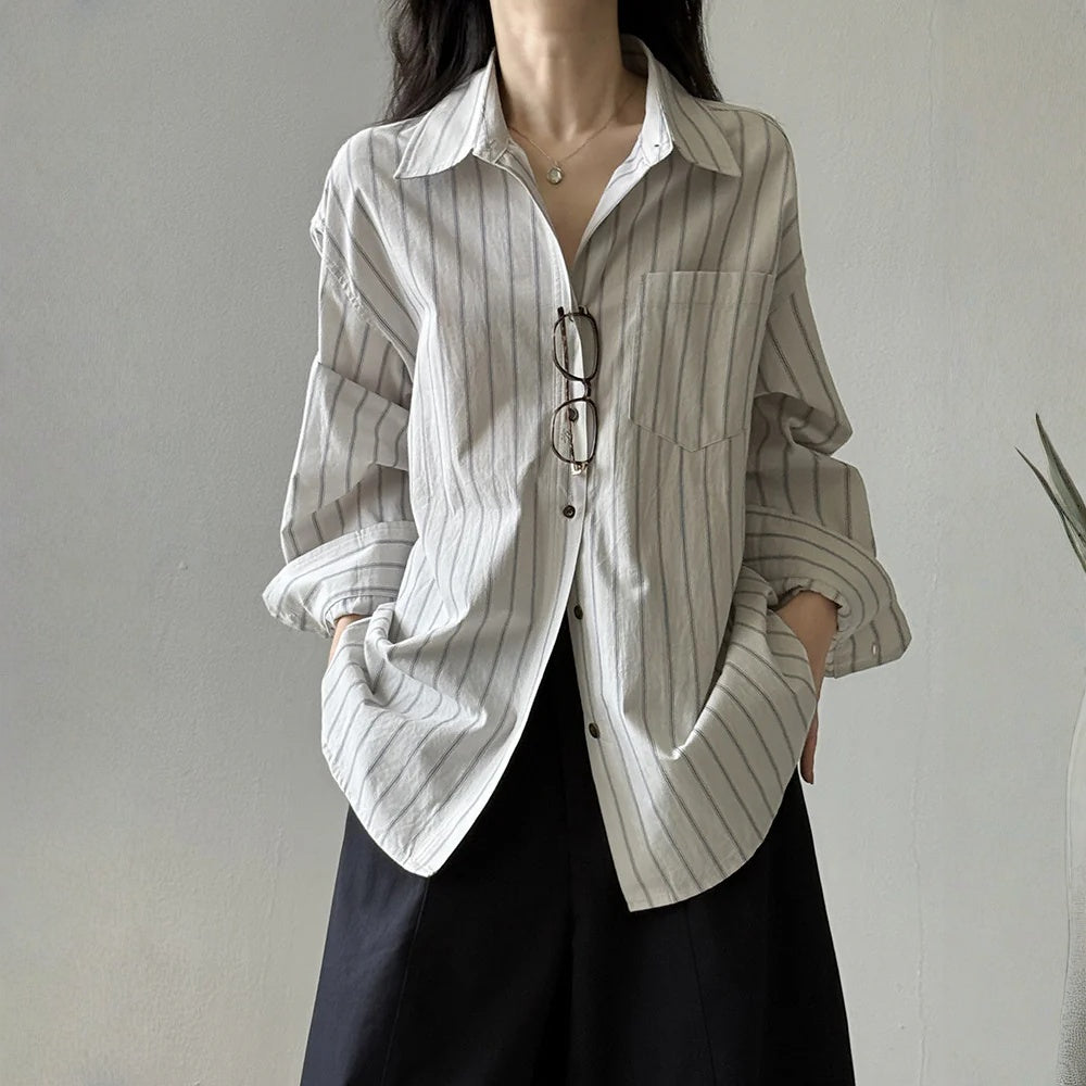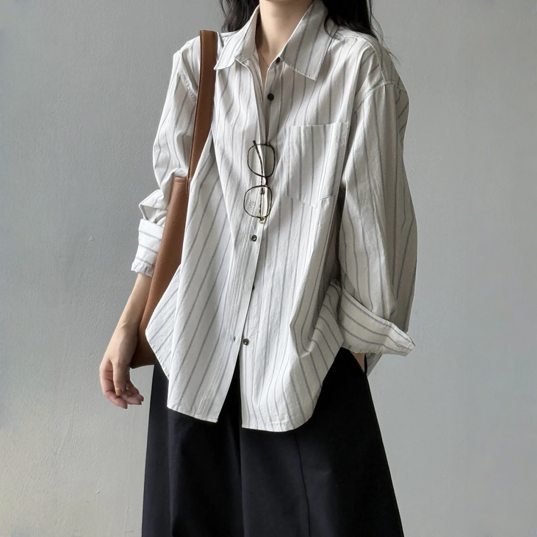 【商品名】【トップス】春 秋 夏 冬 ストライプ柄 立襟 長袖 シャツ 【JZシリーズ】