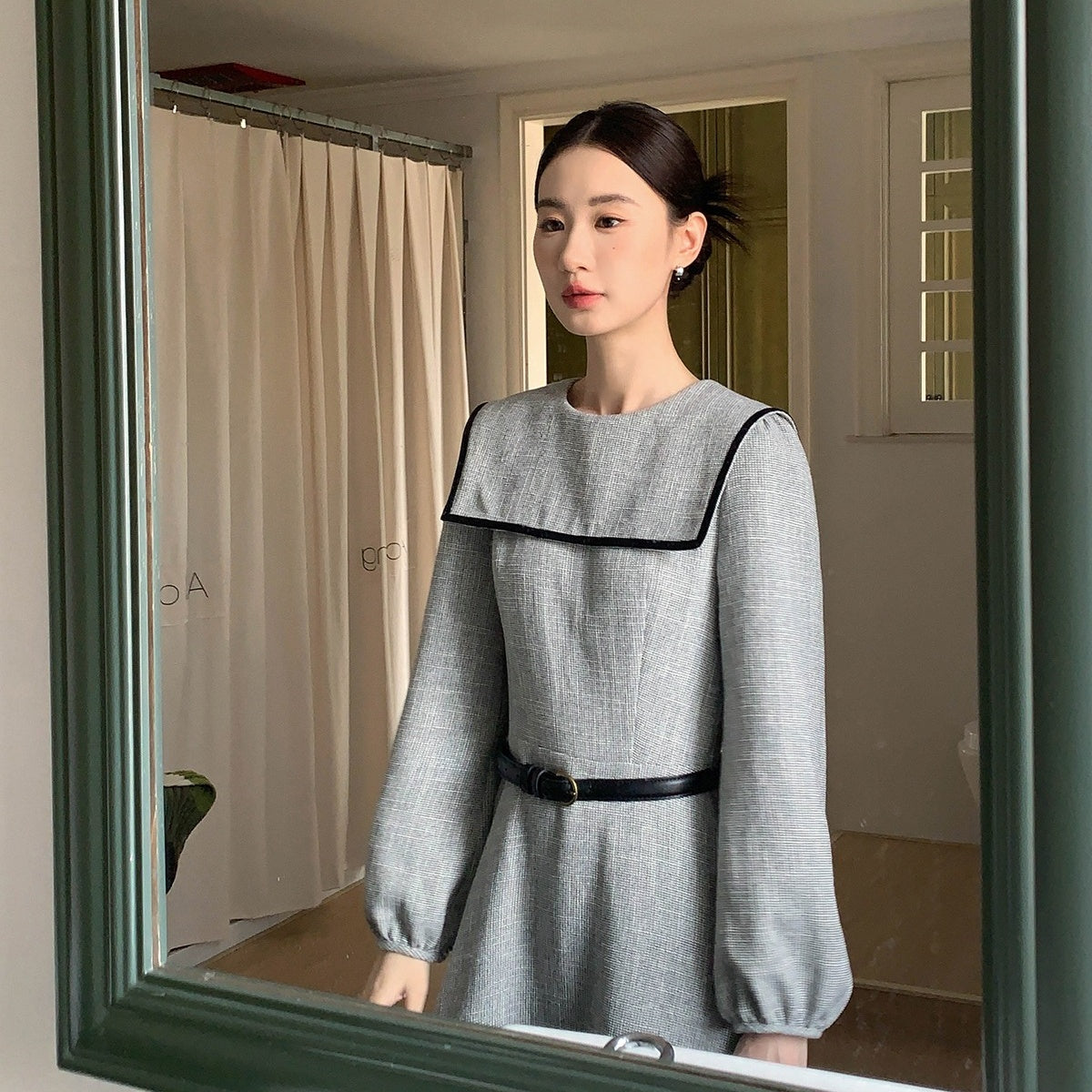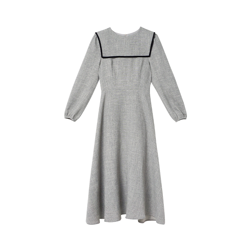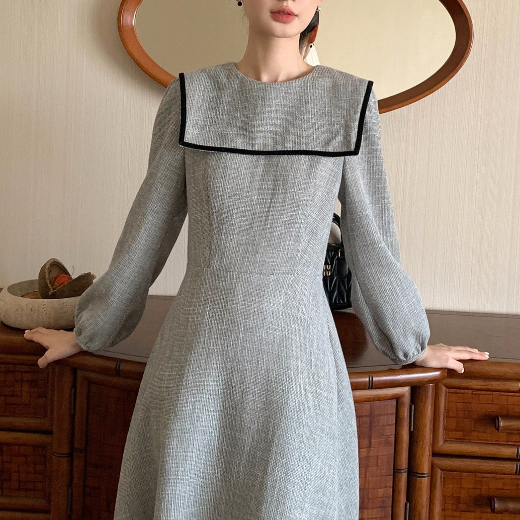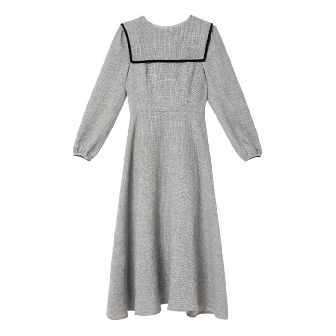 【商品名】【ワンピース】春 秋 冬 マリン大きめ襟 甘く若見え ウエストシェイプ 長袖 ワンピース 【JZシリーズ】