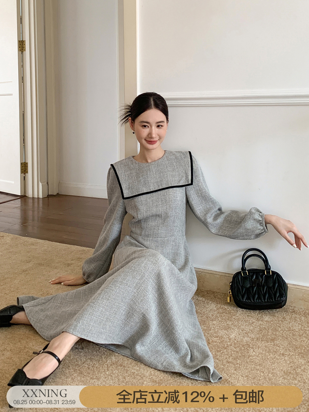 【ワンピース】フレンチレトロ 切替デザイン 大ポケット 長袖 ワンピース 秋新作 ゆったり 【JZシリーズ】