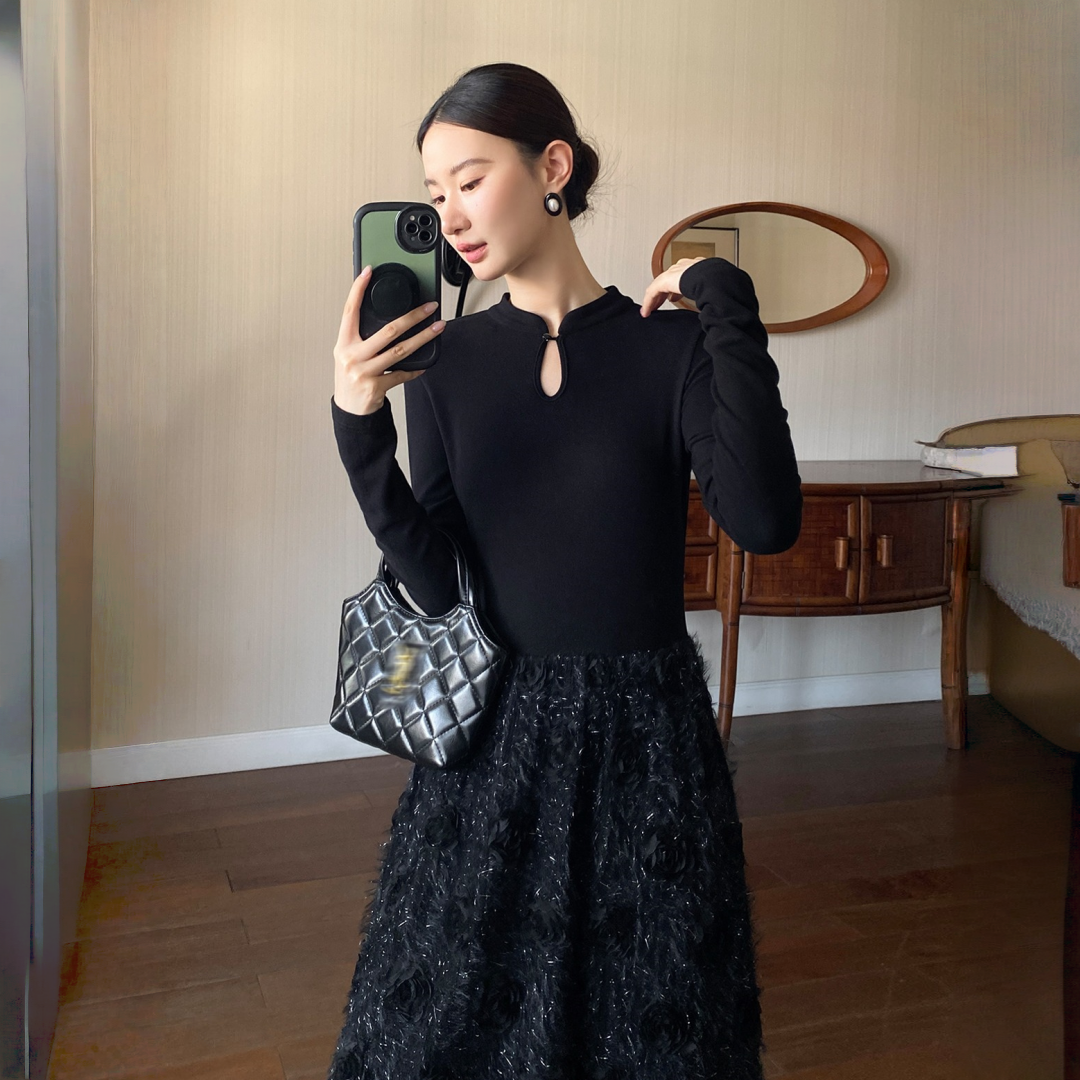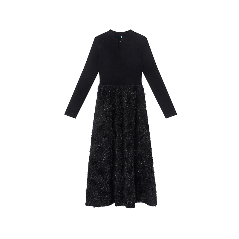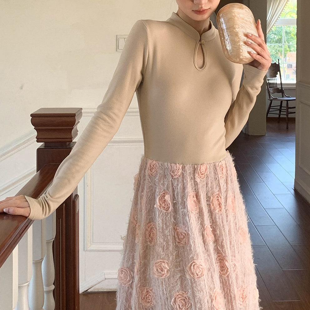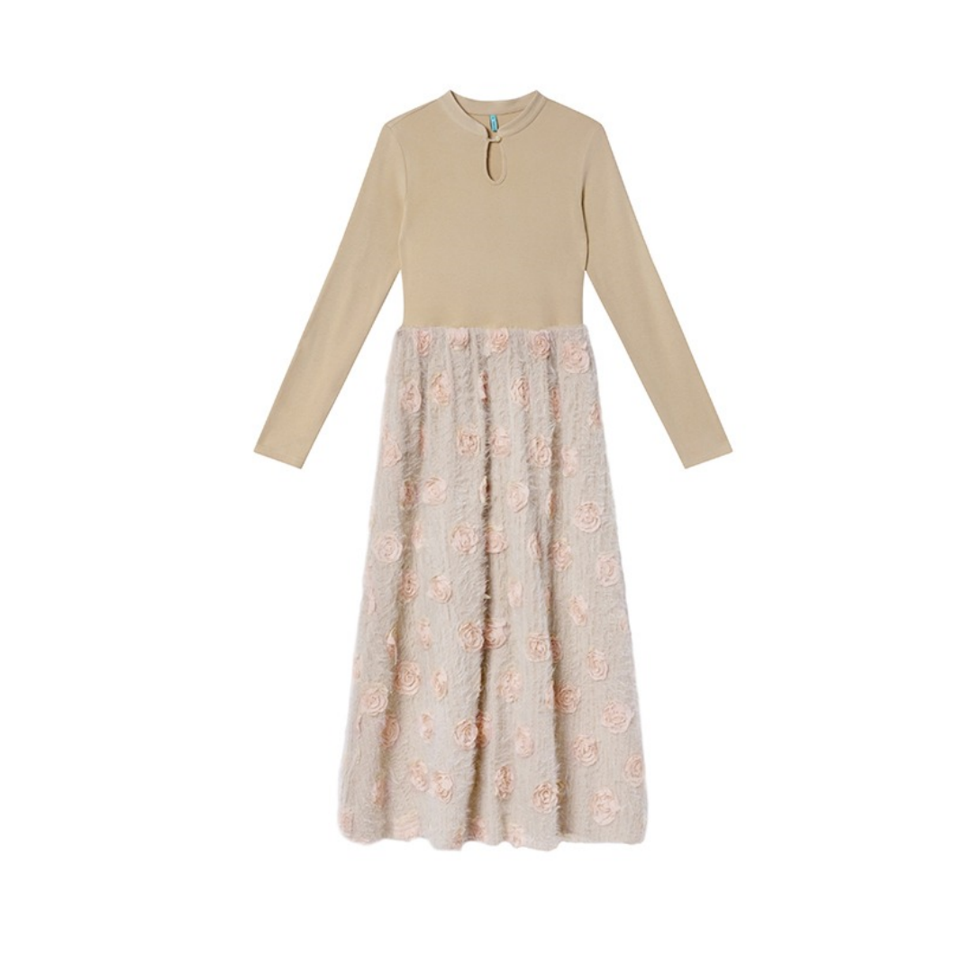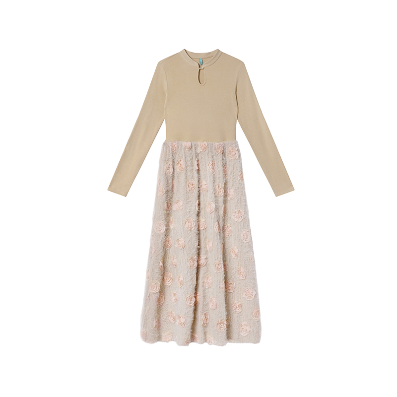 【商品名】【ワンピース】春 秋 冬 花柄刺繍 細見え インナー 長袖 ワンピース 【JZシリーズ】