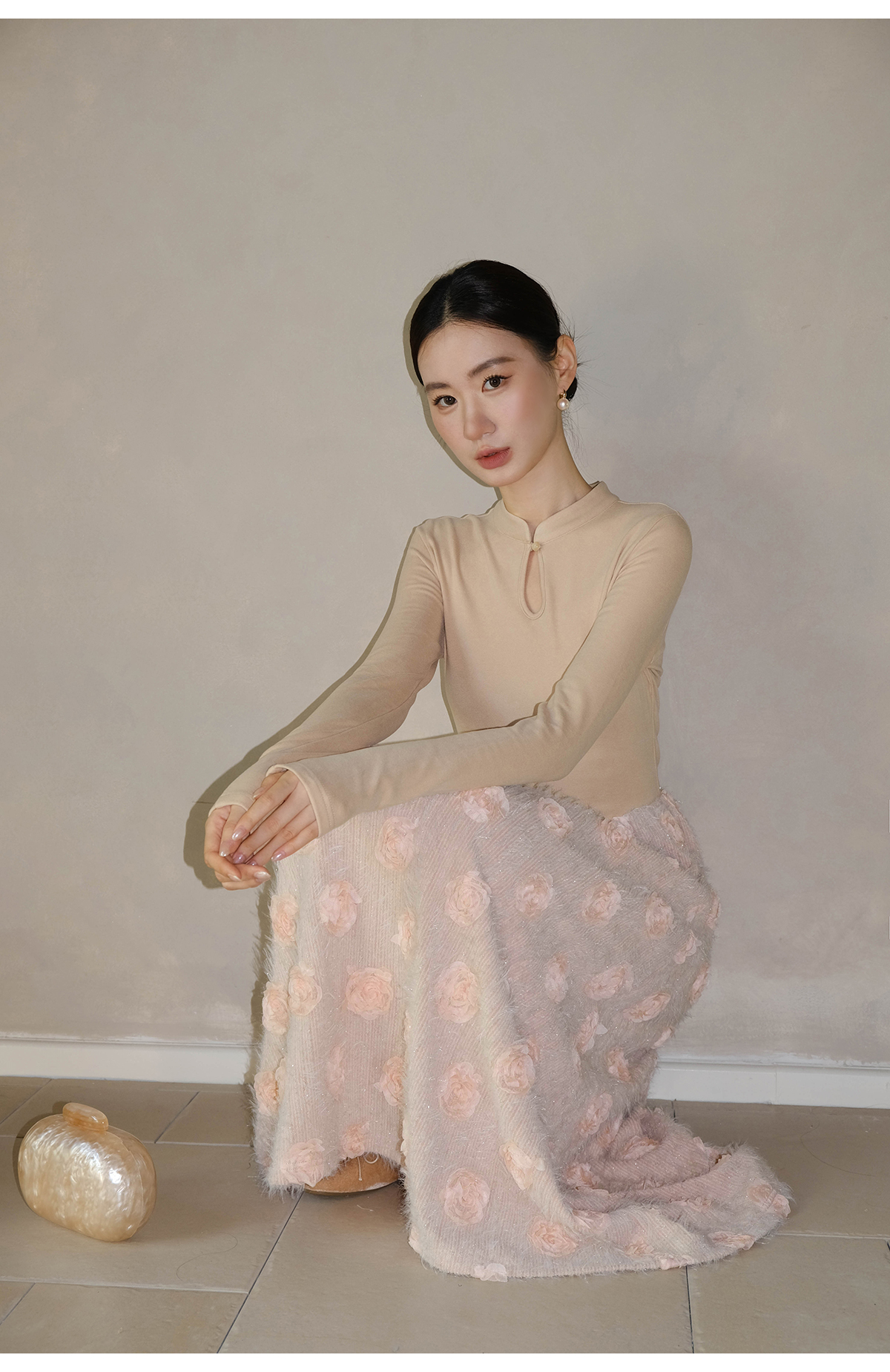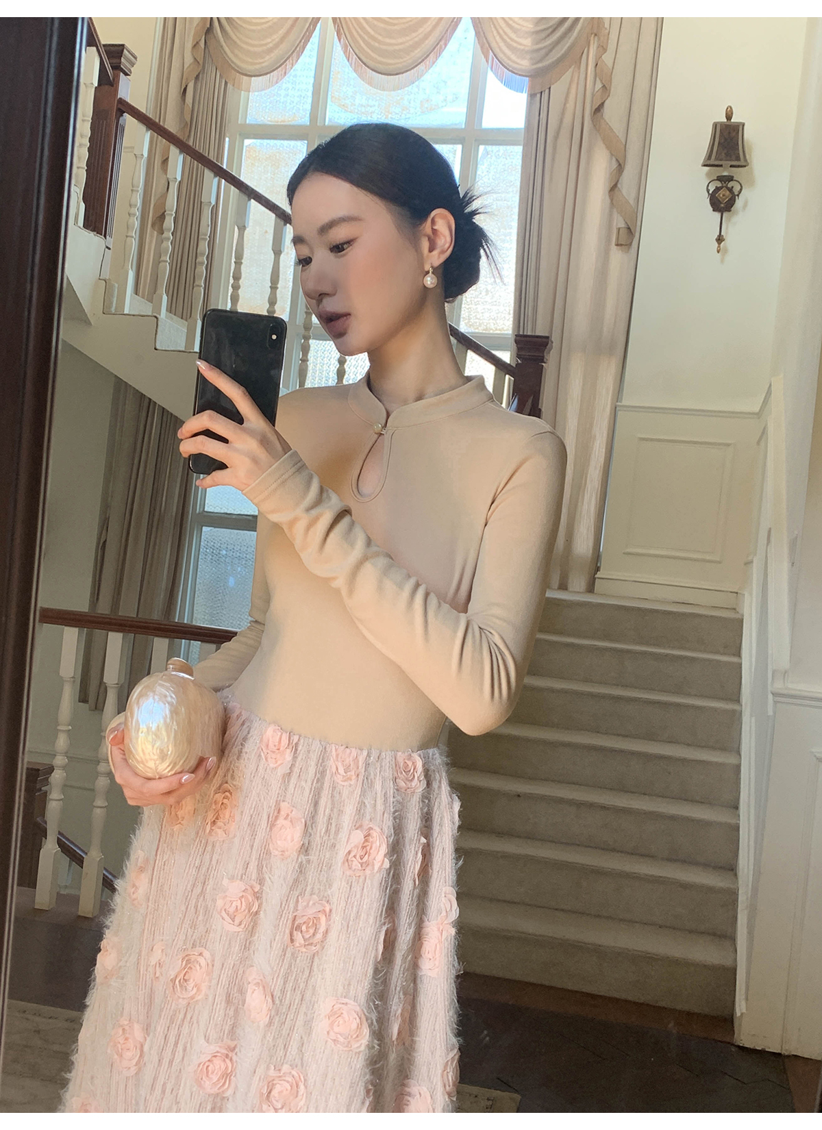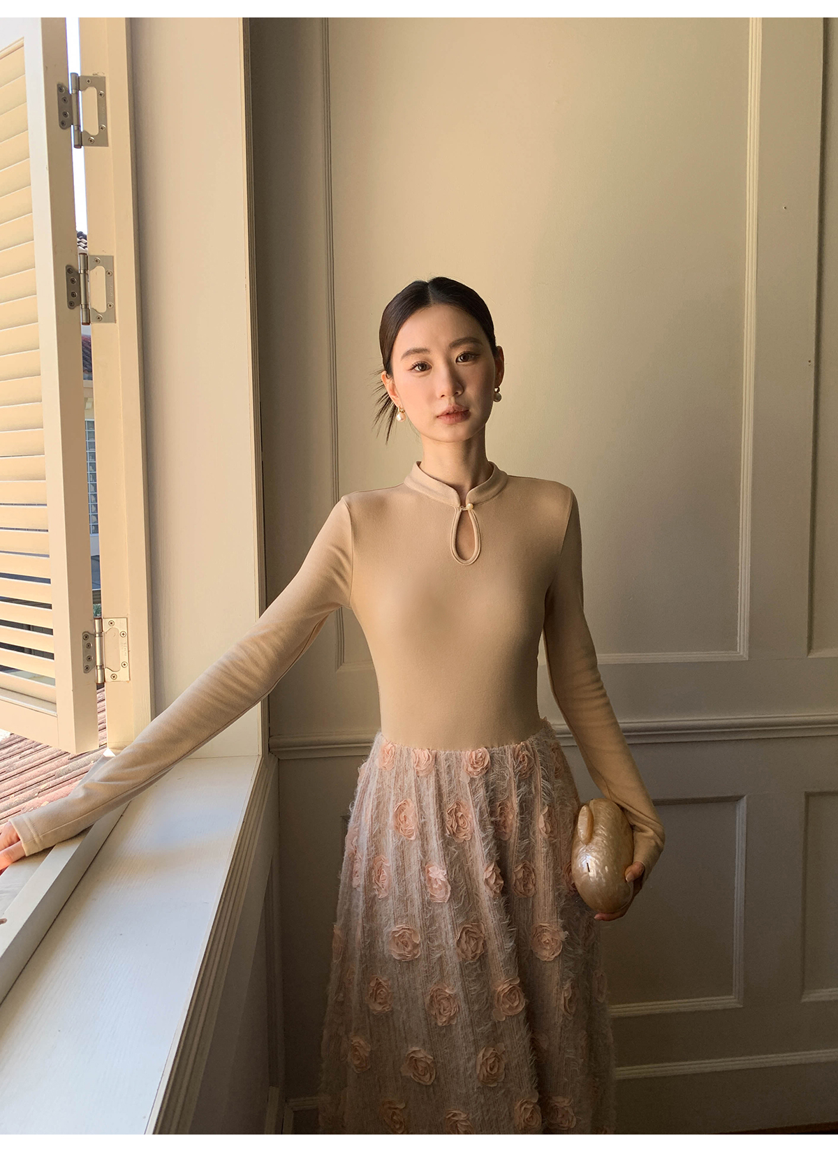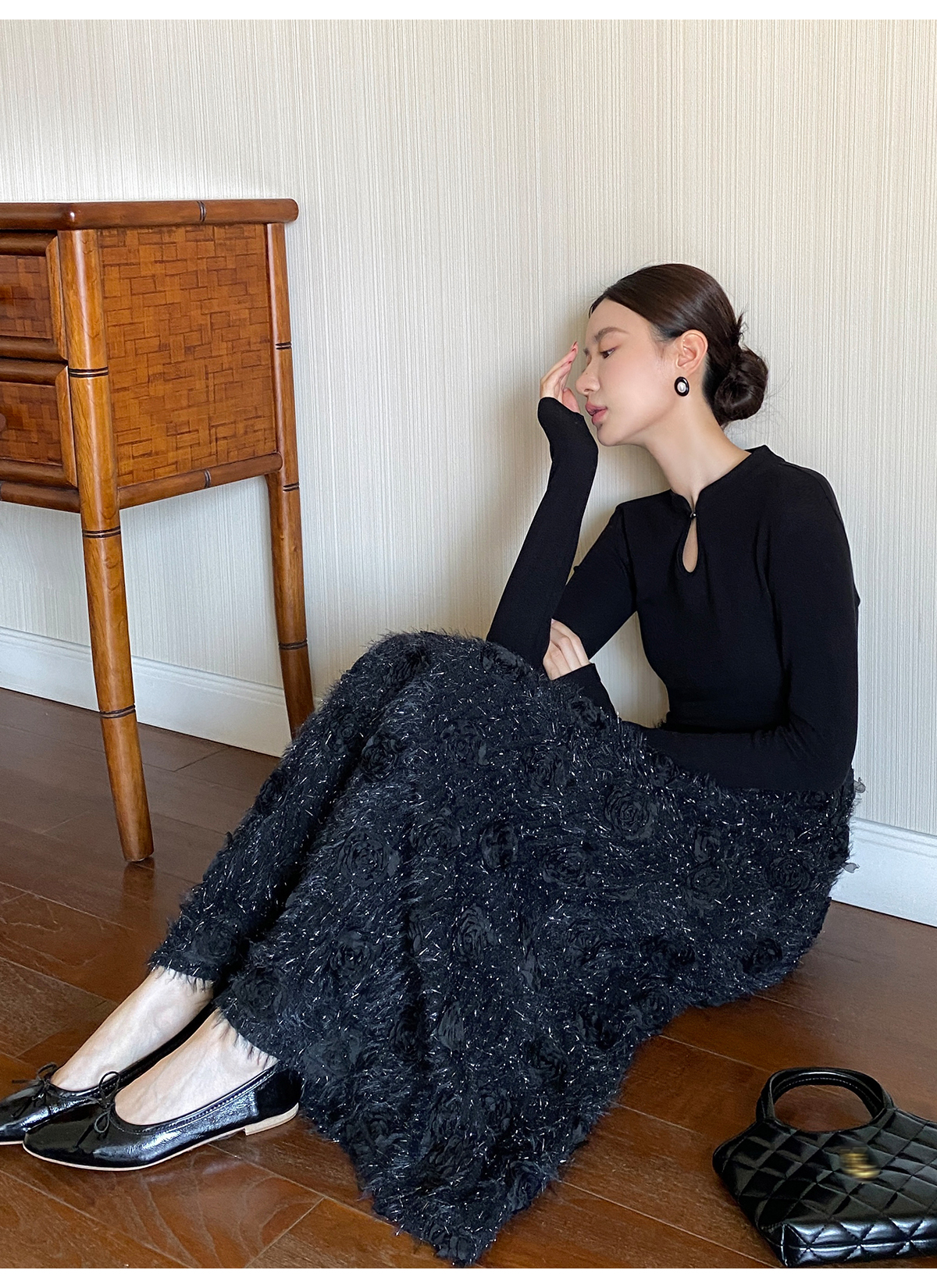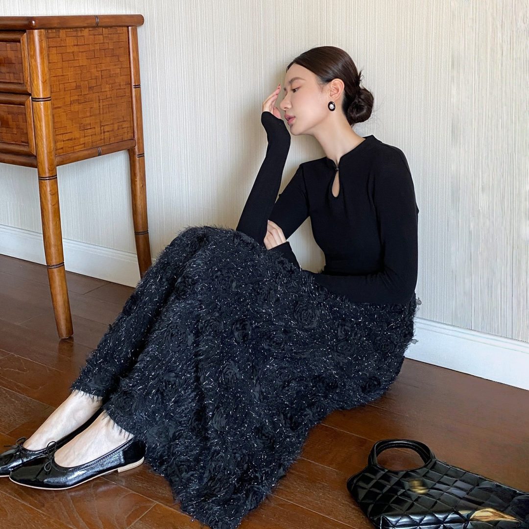 【商品名】【ワンピース】春 秋 冬 花柄刺繍 細見え インナー 長袖 ワンピース 【JZシリーズ】