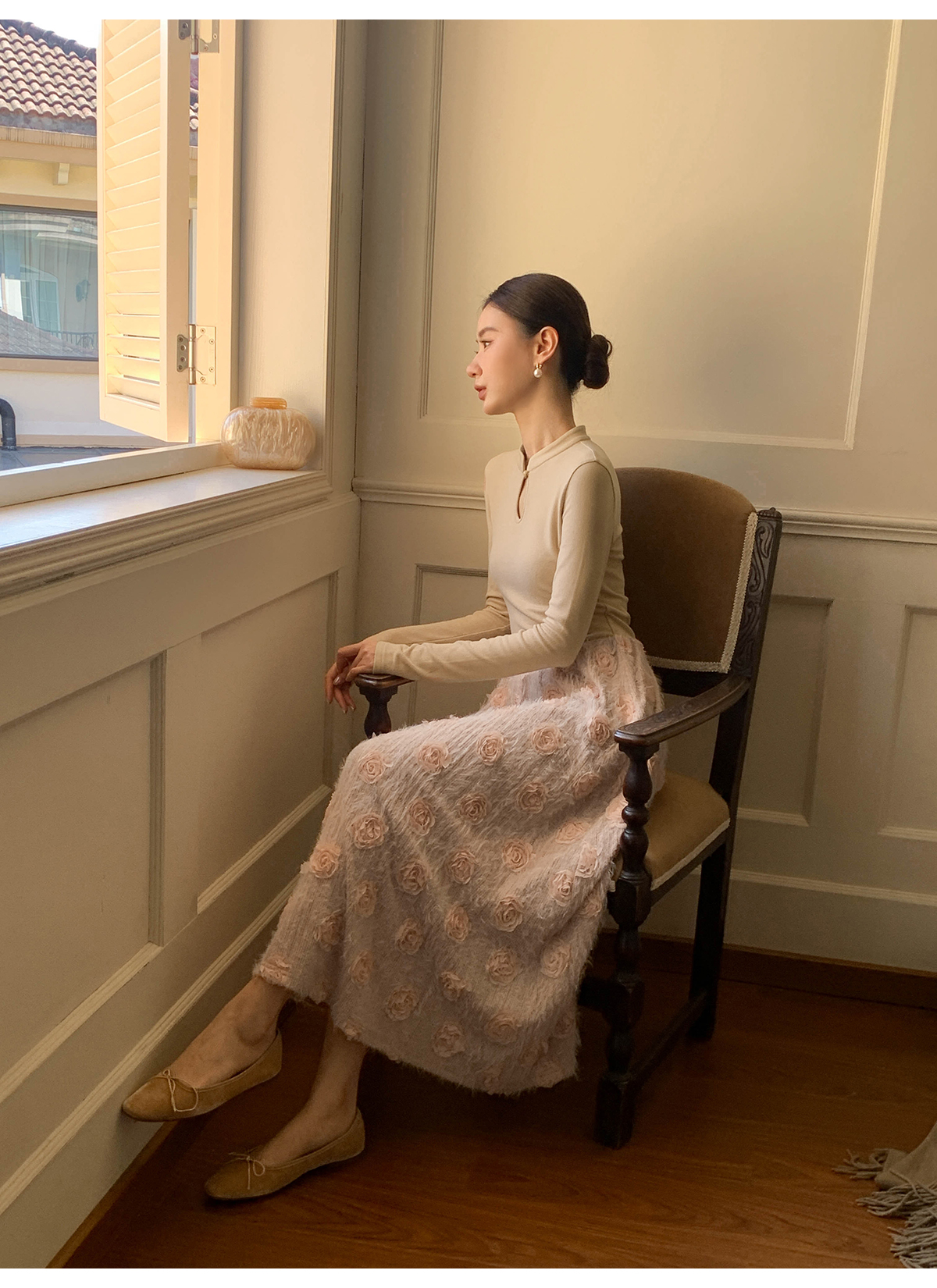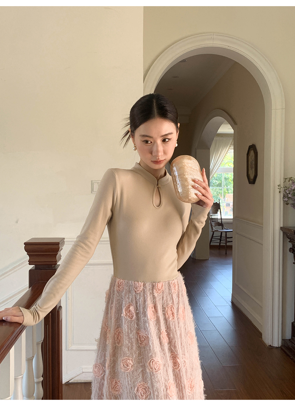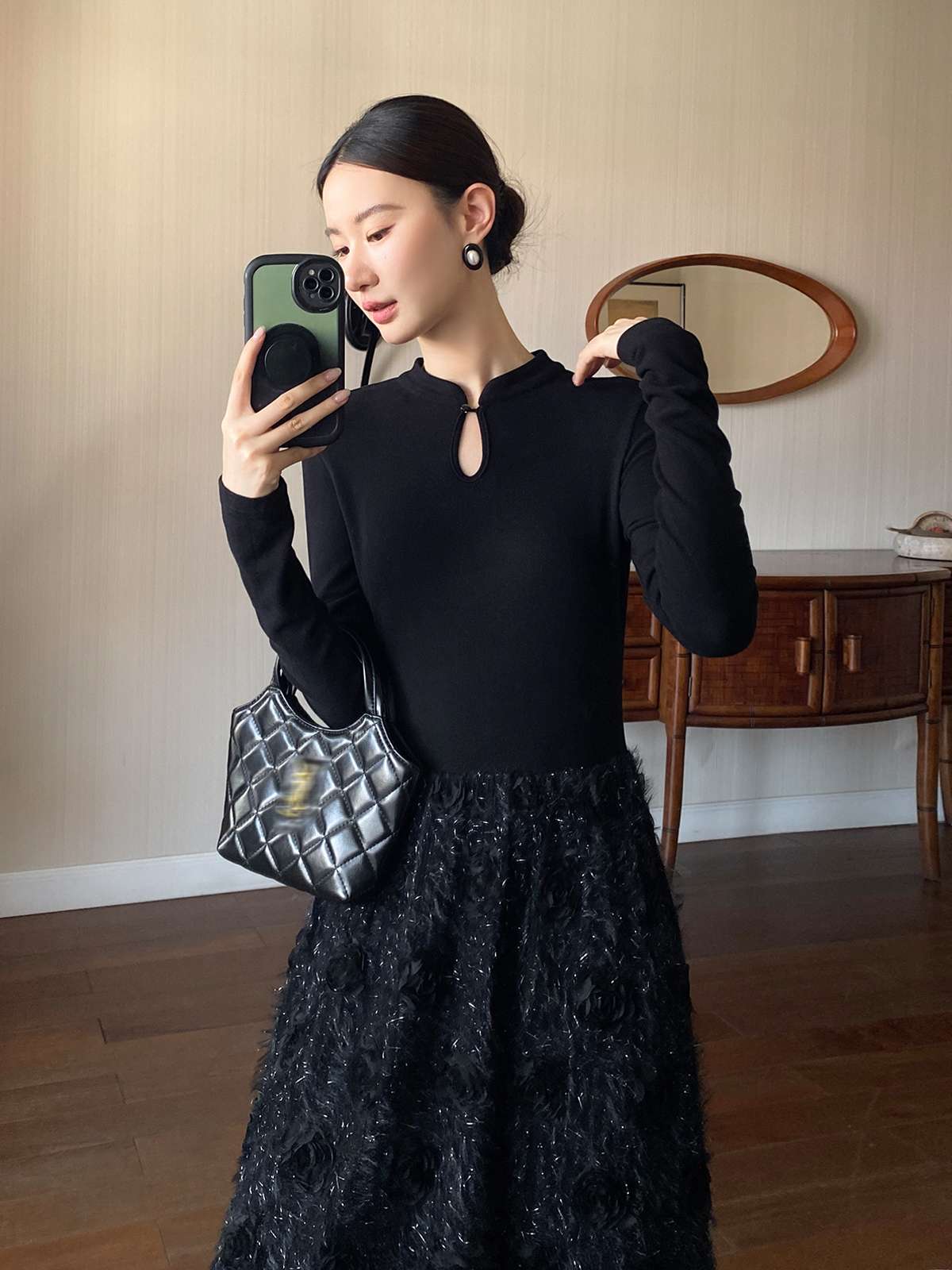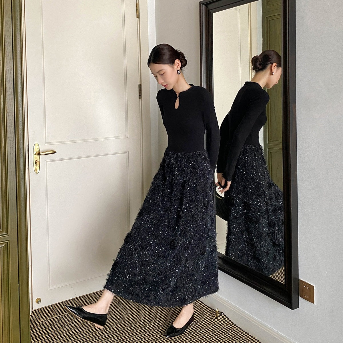 【商品名】【ワンピース】春 秋 冬 花柄刺繍 細見え インナー 長袖 ワンピース 【JZシリーズ】