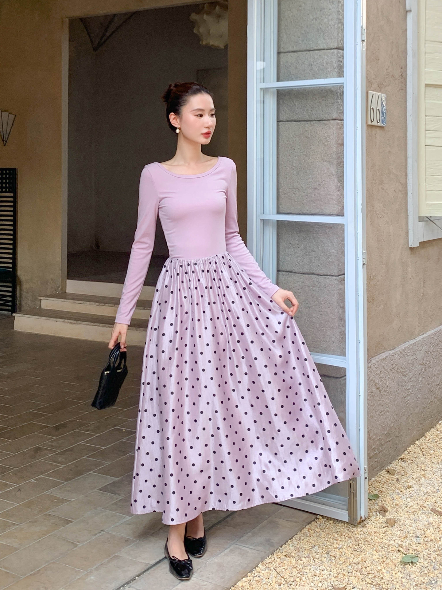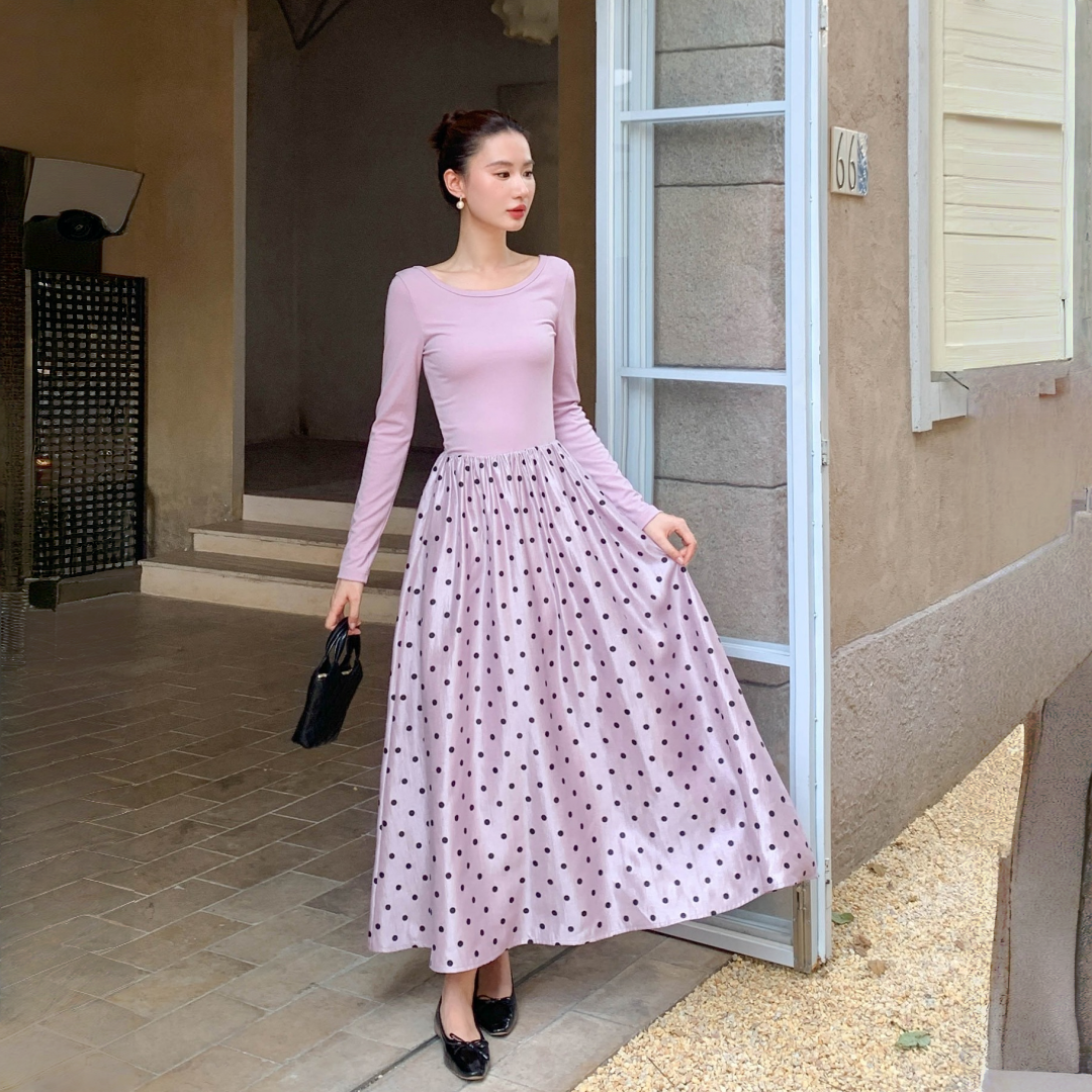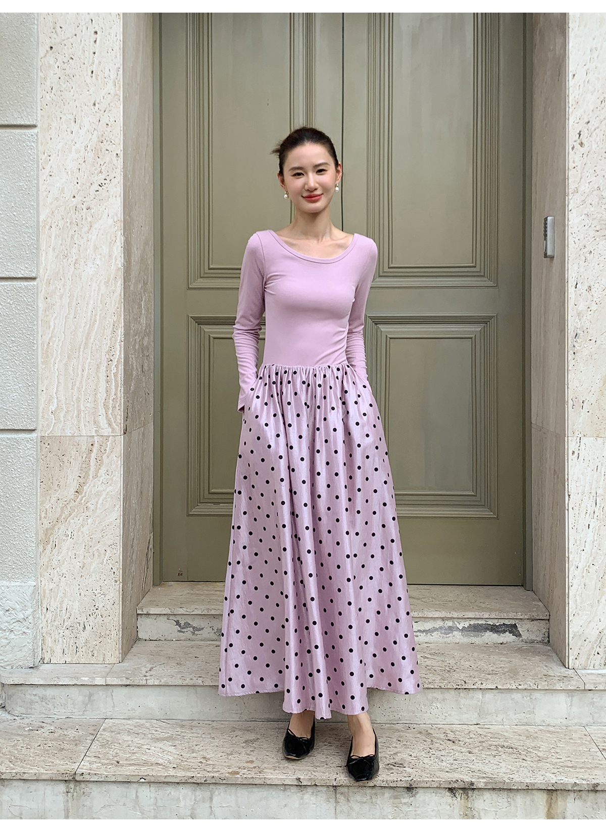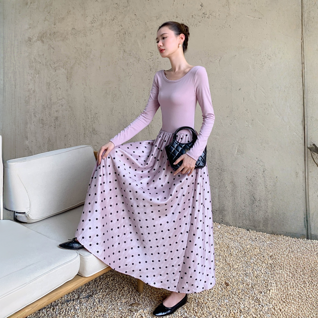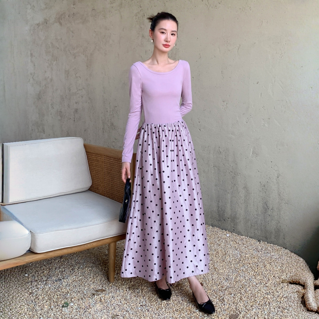 【ワンピース】フレンチレトロ 切替デザイン 大ポケット 長袖 ワンピース 秋新作 ゆったり 【JZシリーズ】