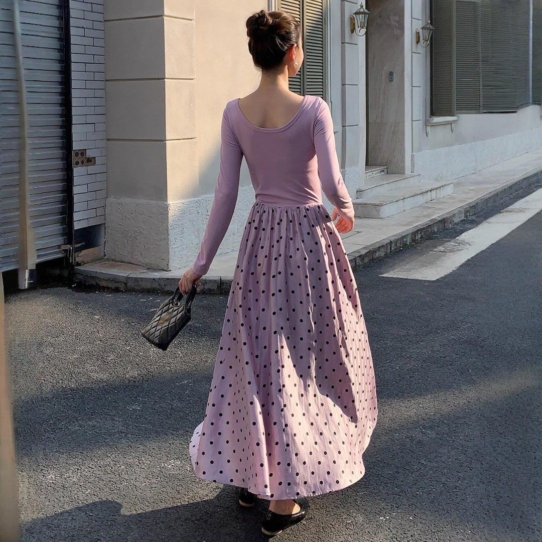 【ワンピース】春 秋 冬 レトロ 上品 通勤スタイル ウエストマーク 長袖 ワンピース 【JZシリーズ】