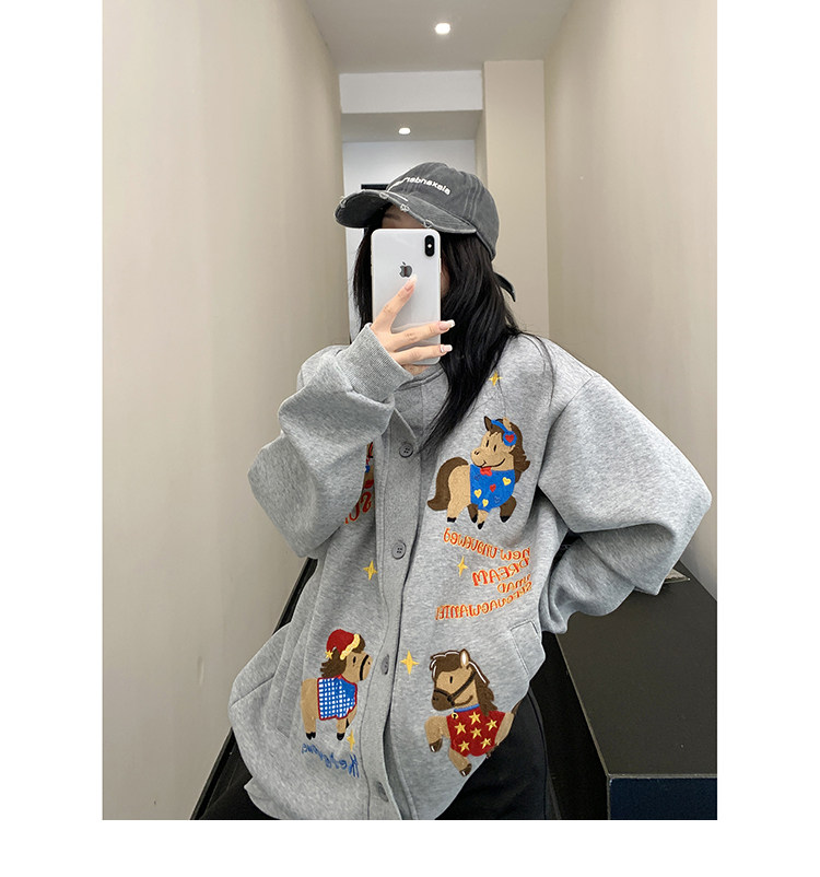 【商品名】【アウター】アメリカンヴィンテージ風 リラックス感 カートゥーン刺繍ジャケット レディース【FCシリーズ】