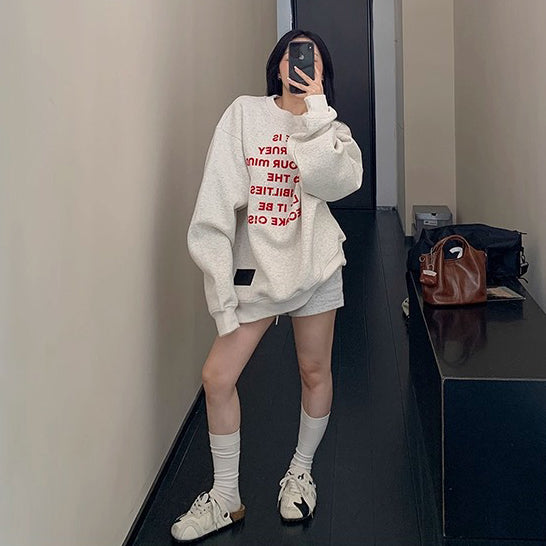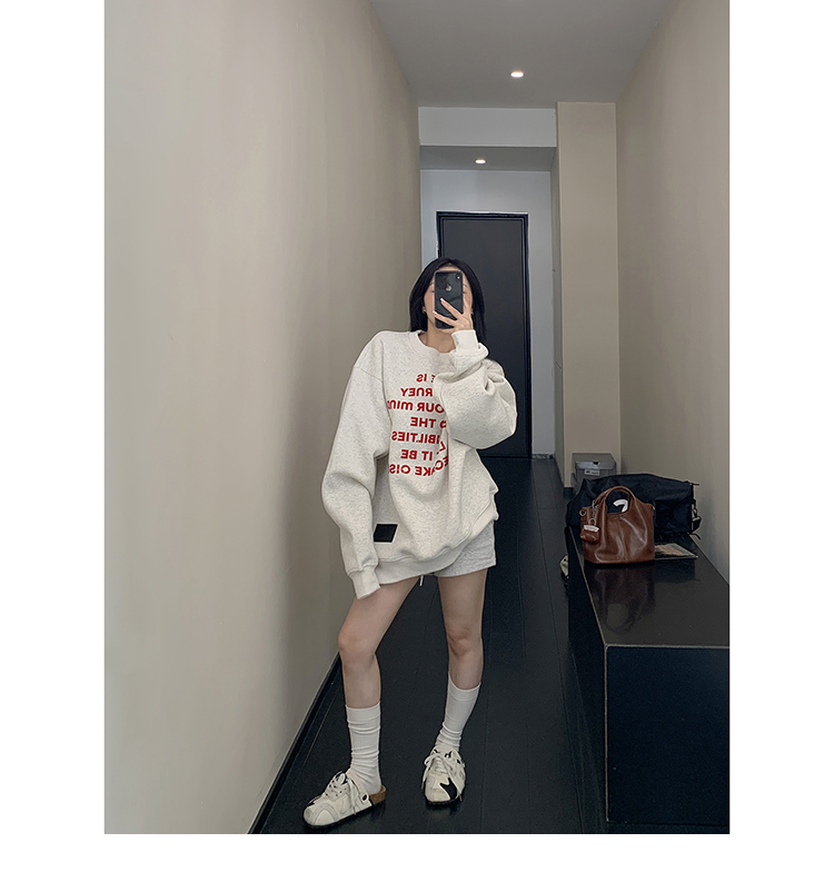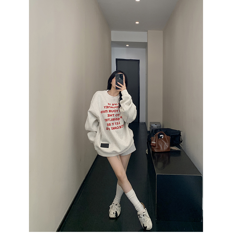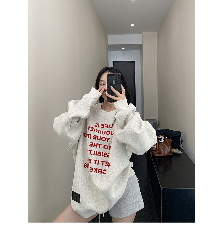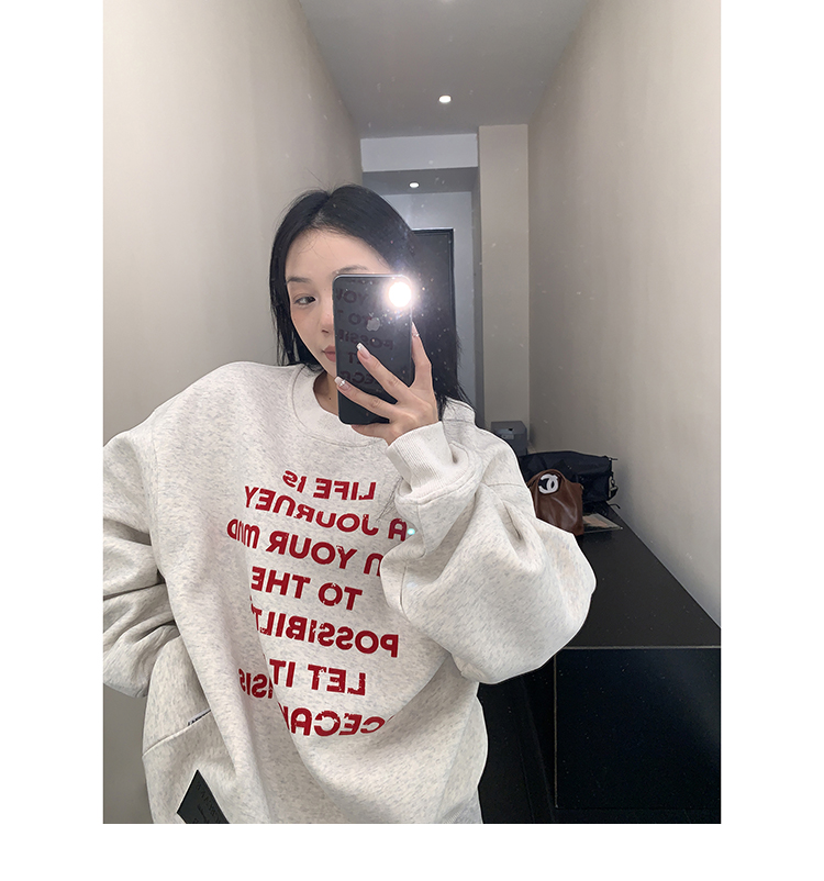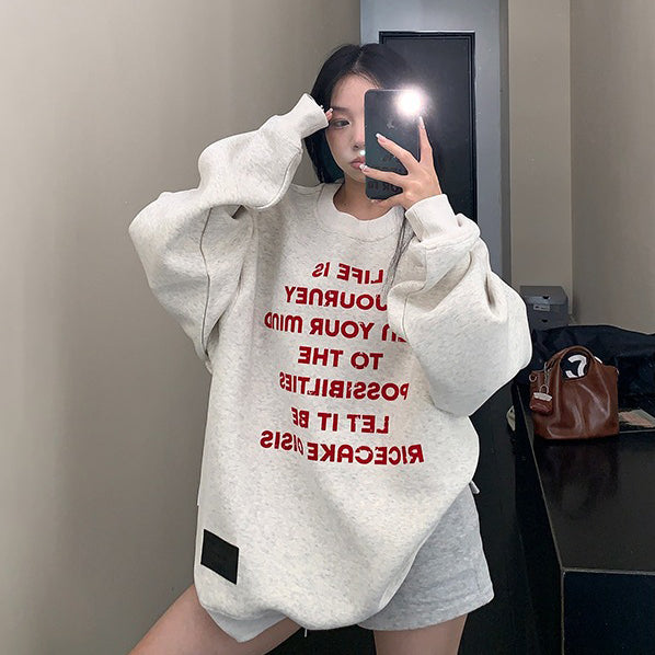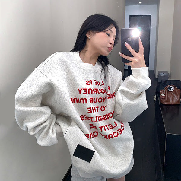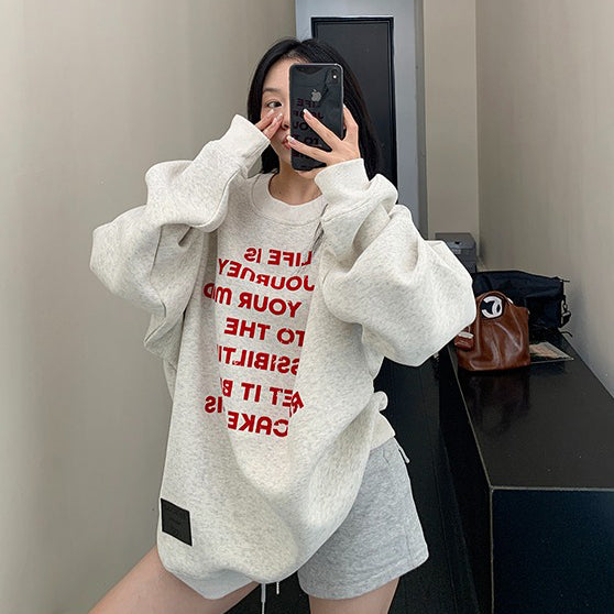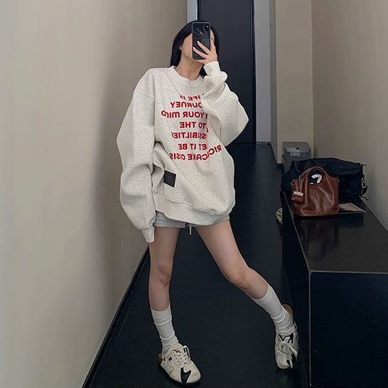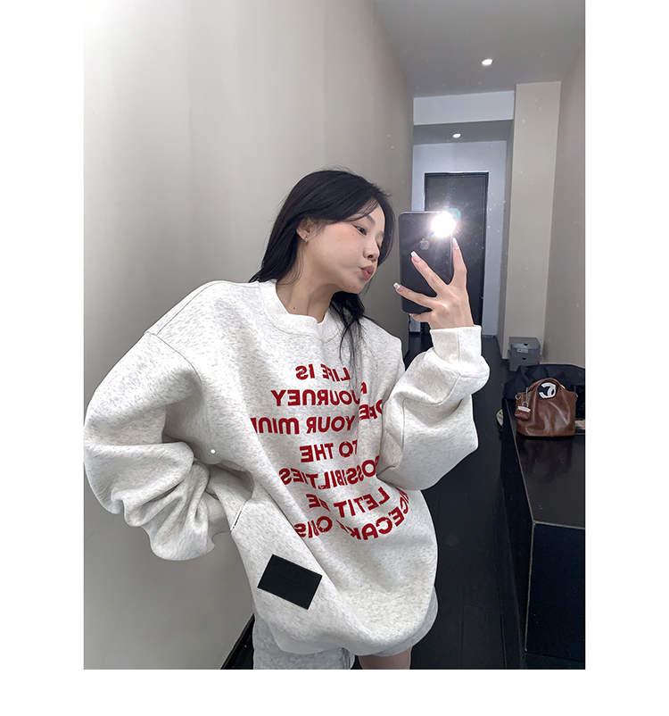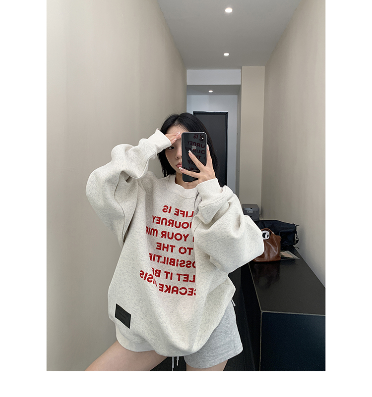 【商品名】【トップス】アメカジ風 ゆったりシルエット フロッキープリント クルーネックスウェット パーカー【FCシリーズ】