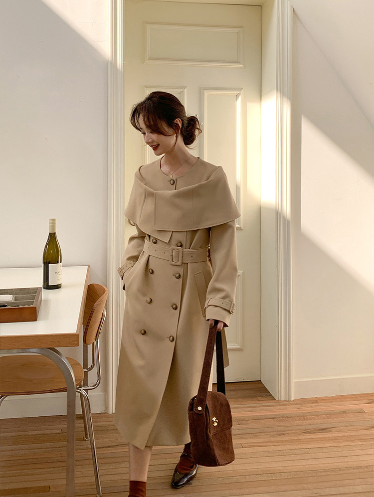 【商品名】【アウター】春 秋 ショール風 ウエストマーク トレンチコート 【JZシリーズ】