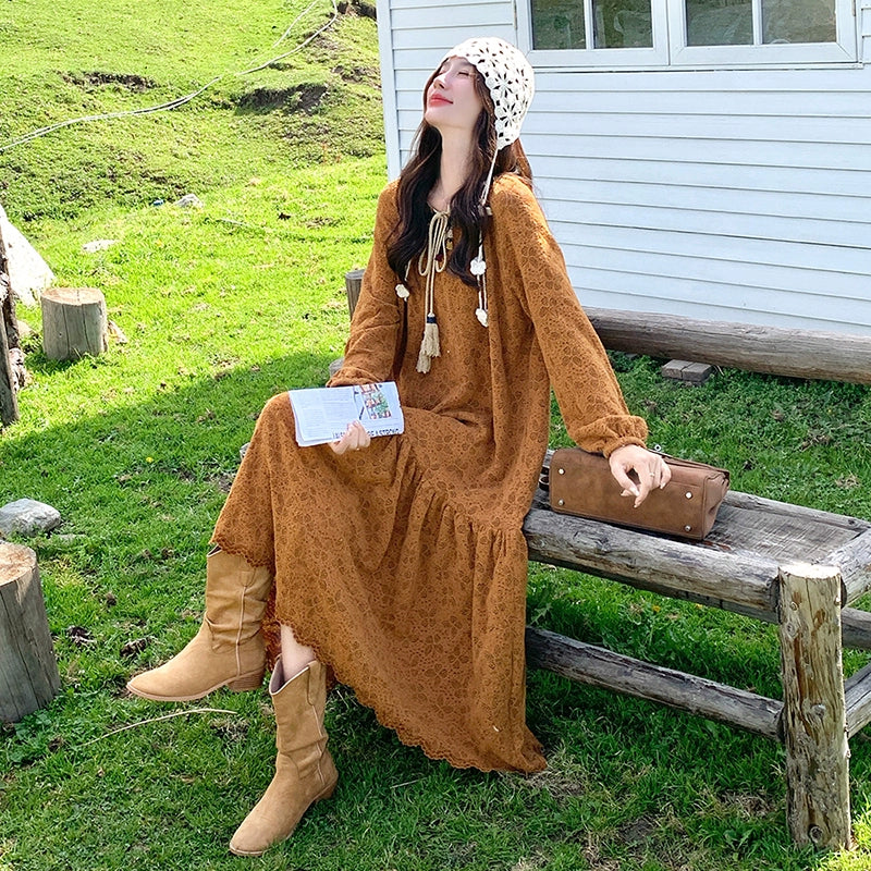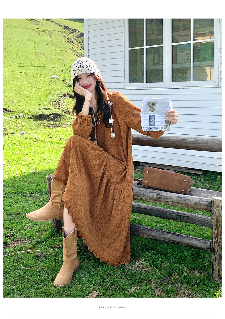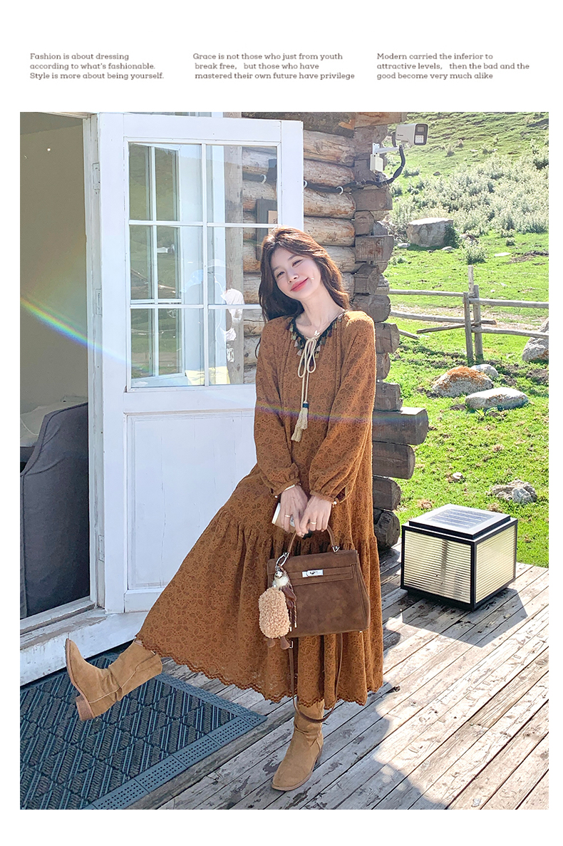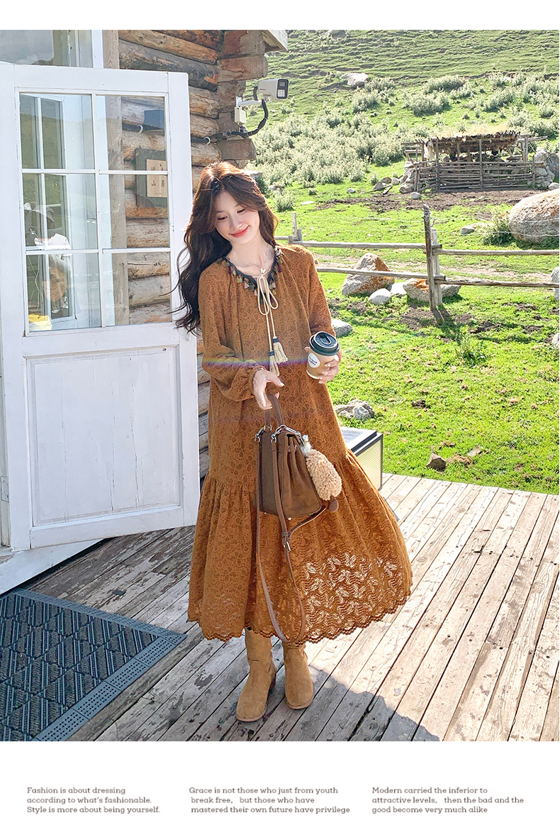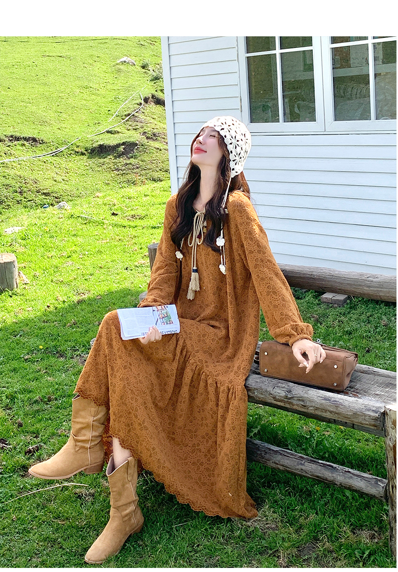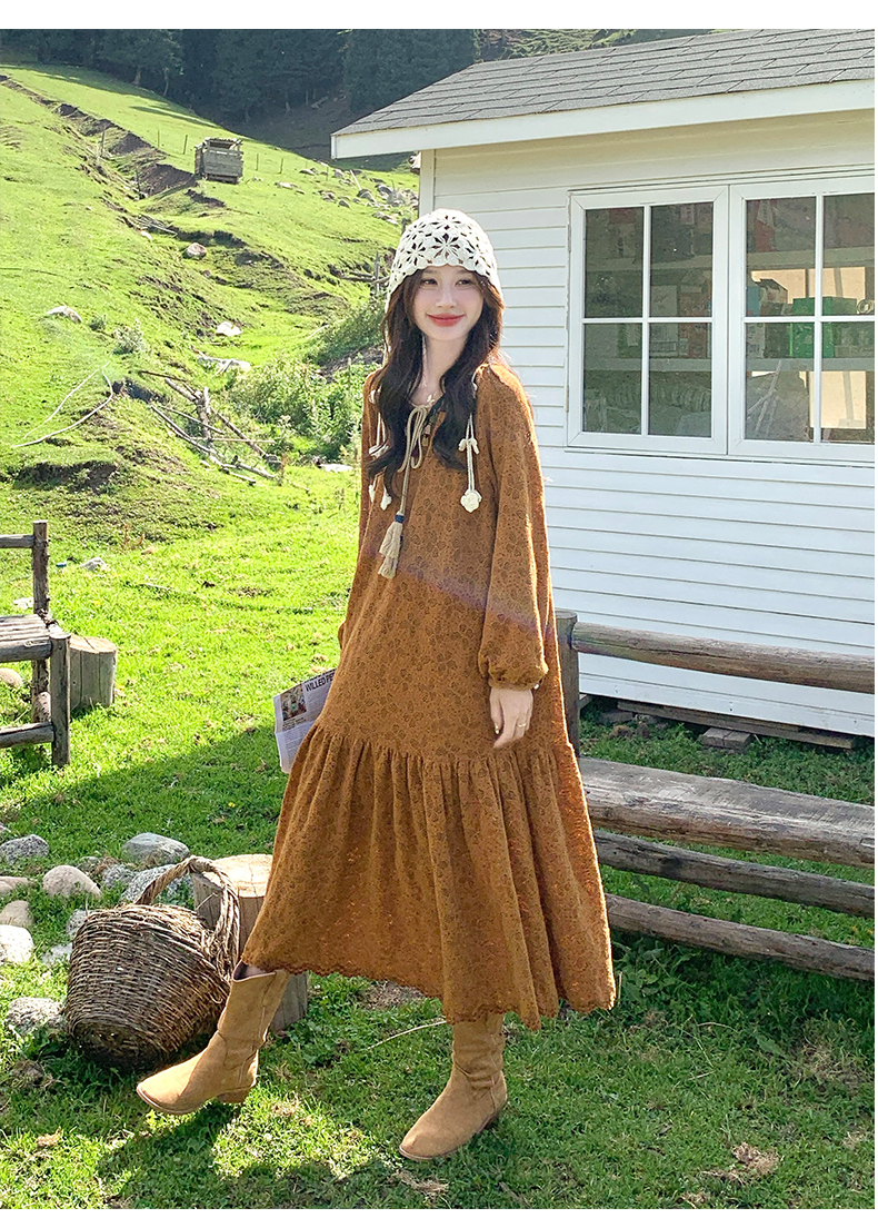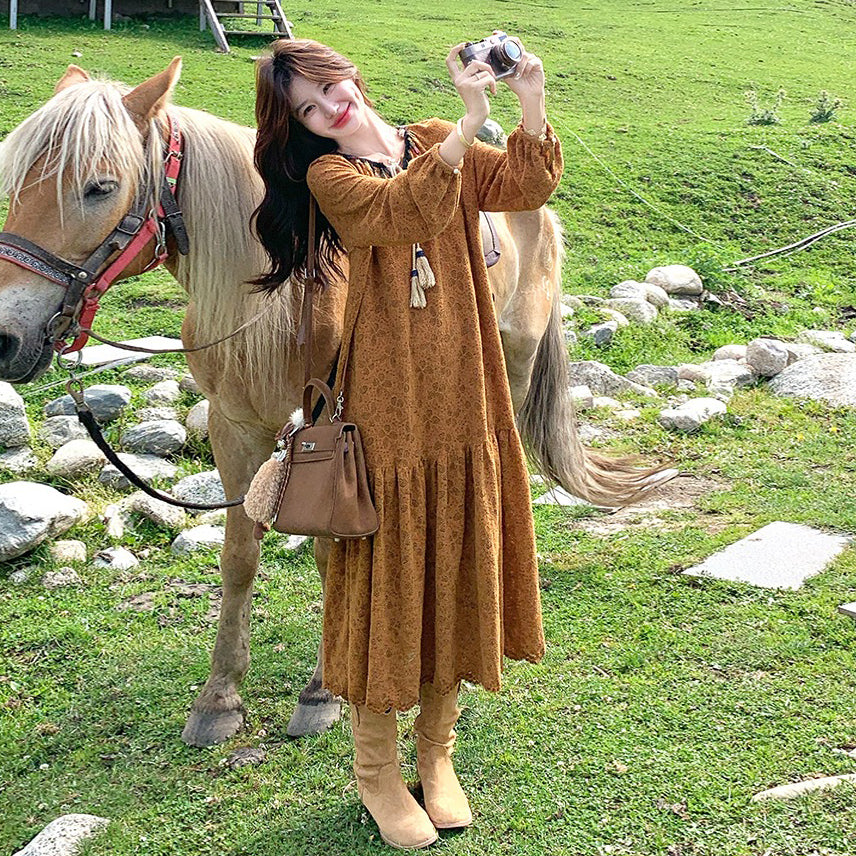 【商品名】【ワンピース】ヴィンテージ感あふれる エレガント 長袖ワンピース レディース【SHシリーズ】