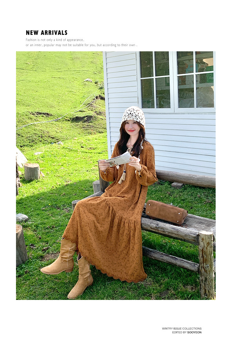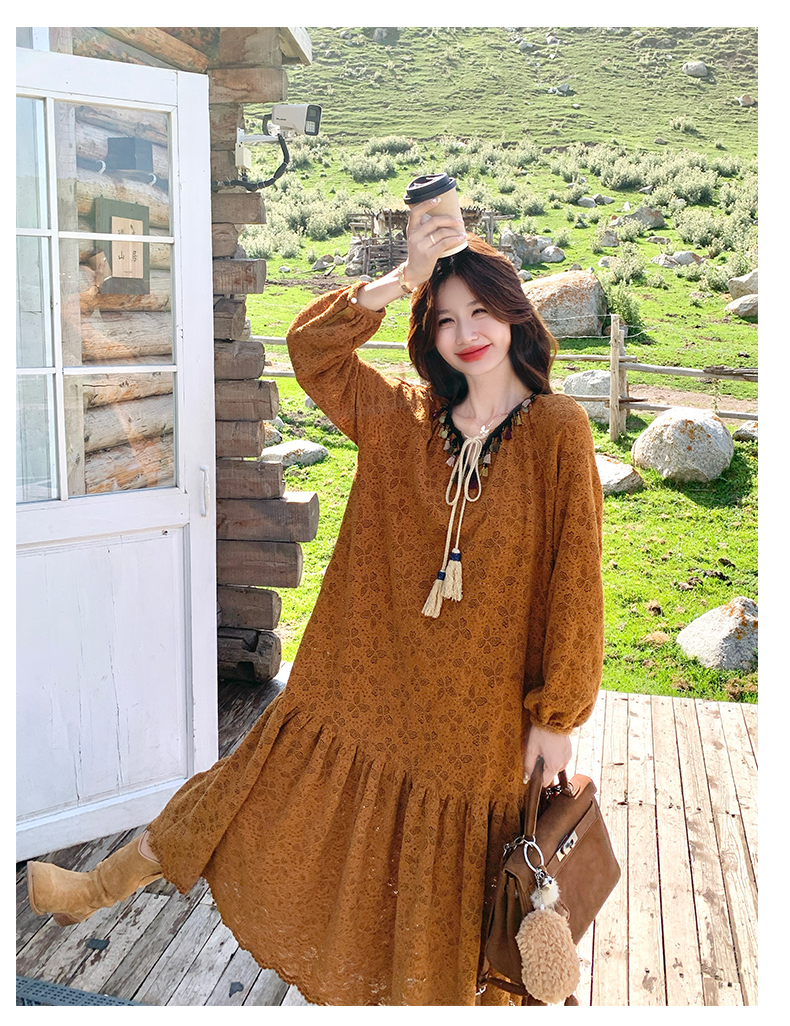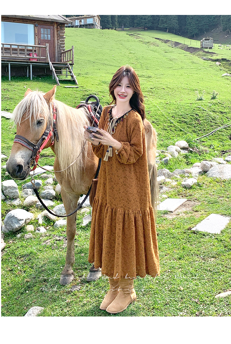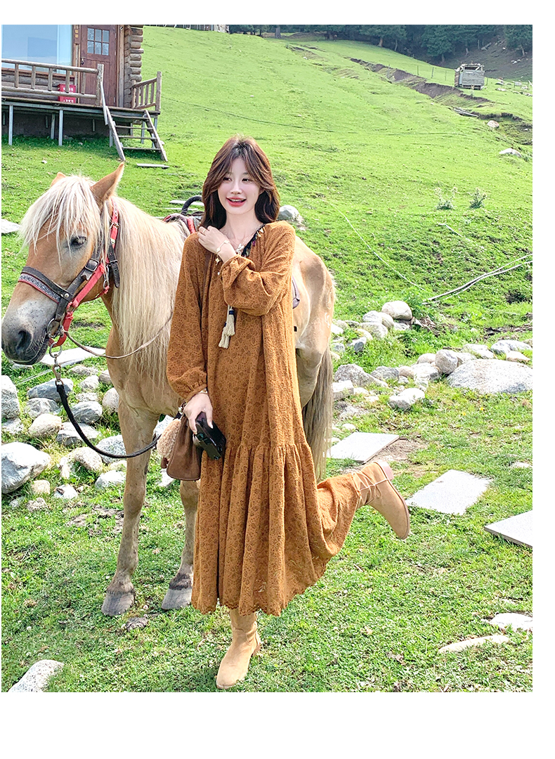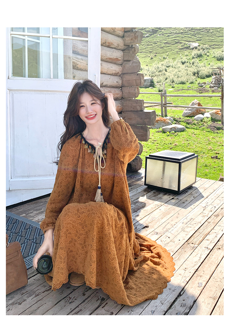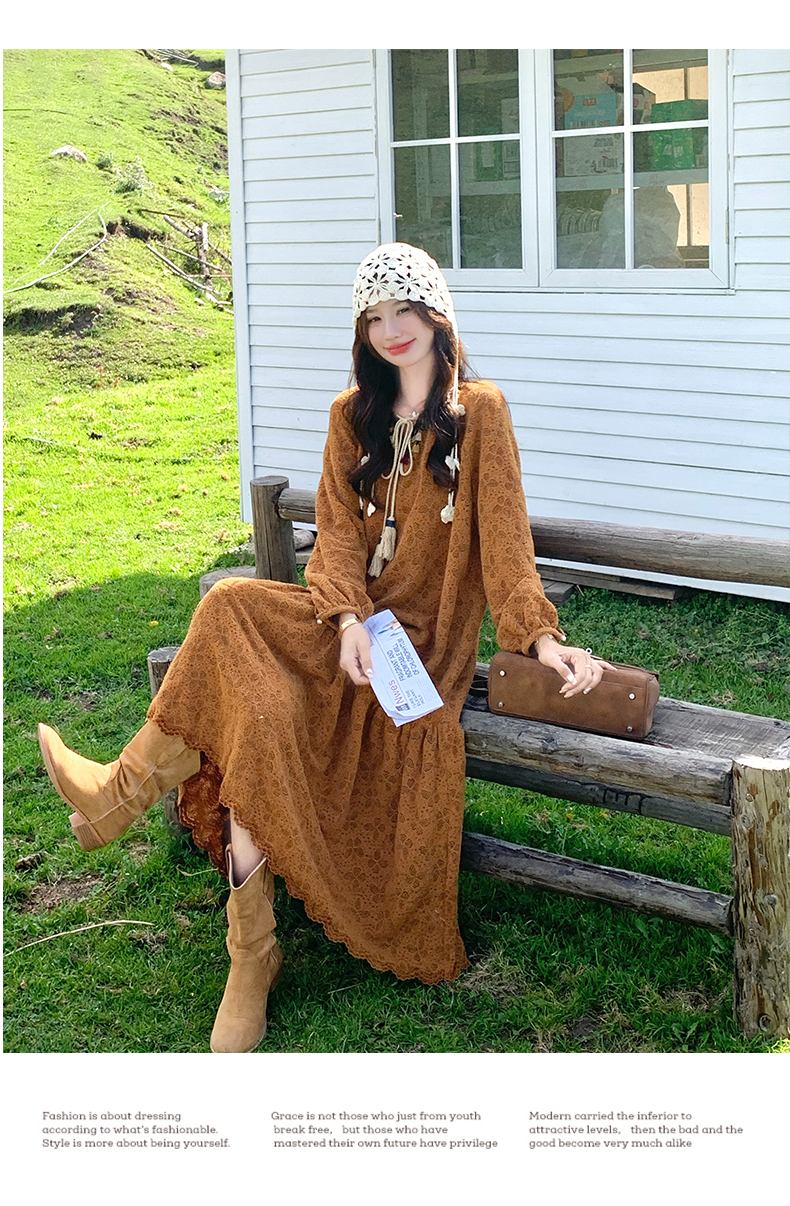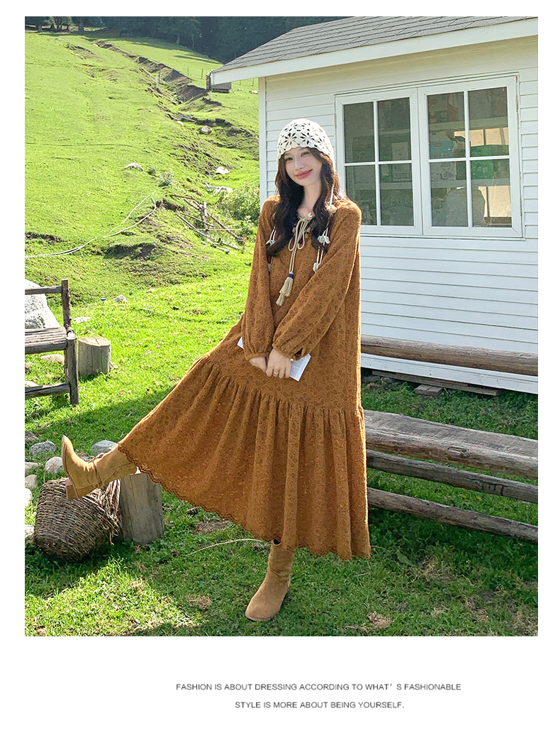 【商品名】【ワンピース】ヴィンテージ感あふれる エレガント 長袖ワンピース レディース【SHシリーズ】