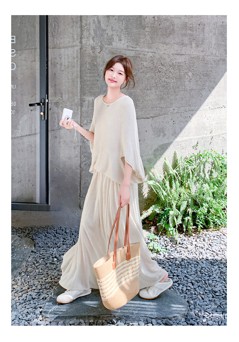2点セット!【セットアップ】オールドマネー風 リラックス感 トップス+スカート 上下セット 上品カジュアル 2点セット【JZシリーズ】