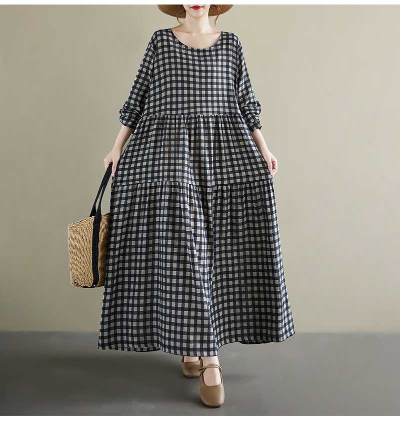 【ワンピース】春 秋 冬 大きいサイズ プリーツ チェック 長袖 ワンピース 【JZシリーズ】