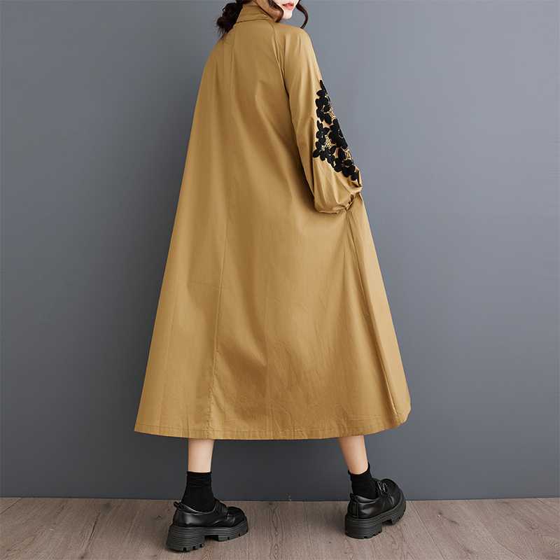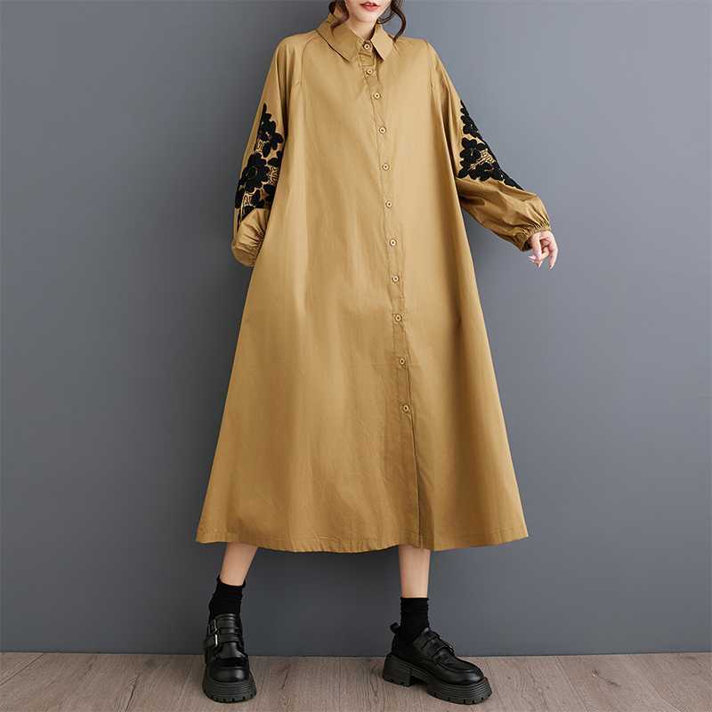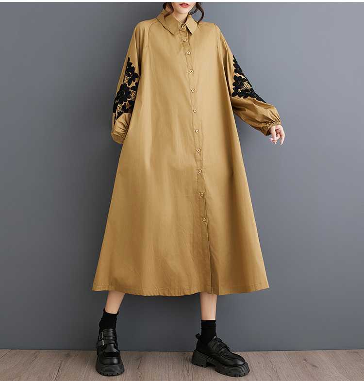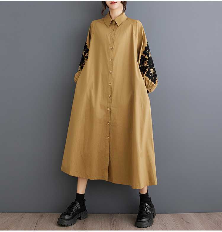 【ワンピース】春 秋 冬 刺繍 スイート 切り替え シャツ 長袖 ワンピース 【SHシリーズ】