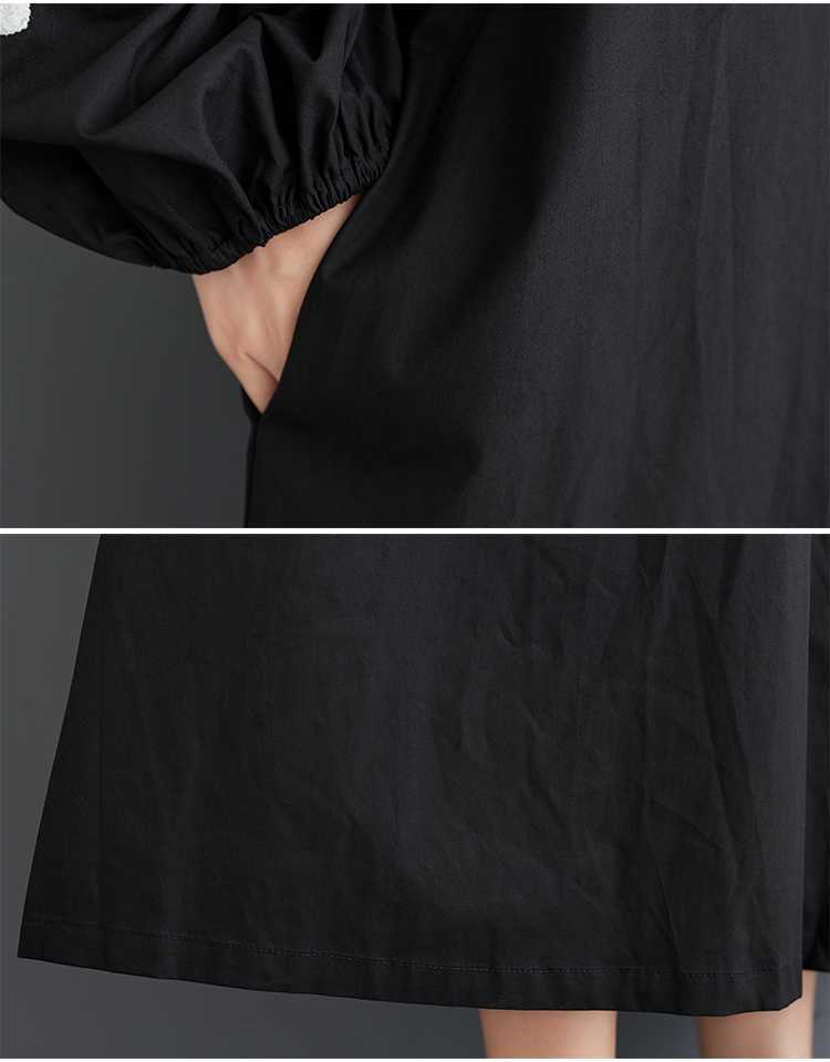 【ワンピース】フレンチレトロ 切替デザイン 大ポケット 長袖 ワンピース 秋新作 ゆったり 【JZシリーズ】