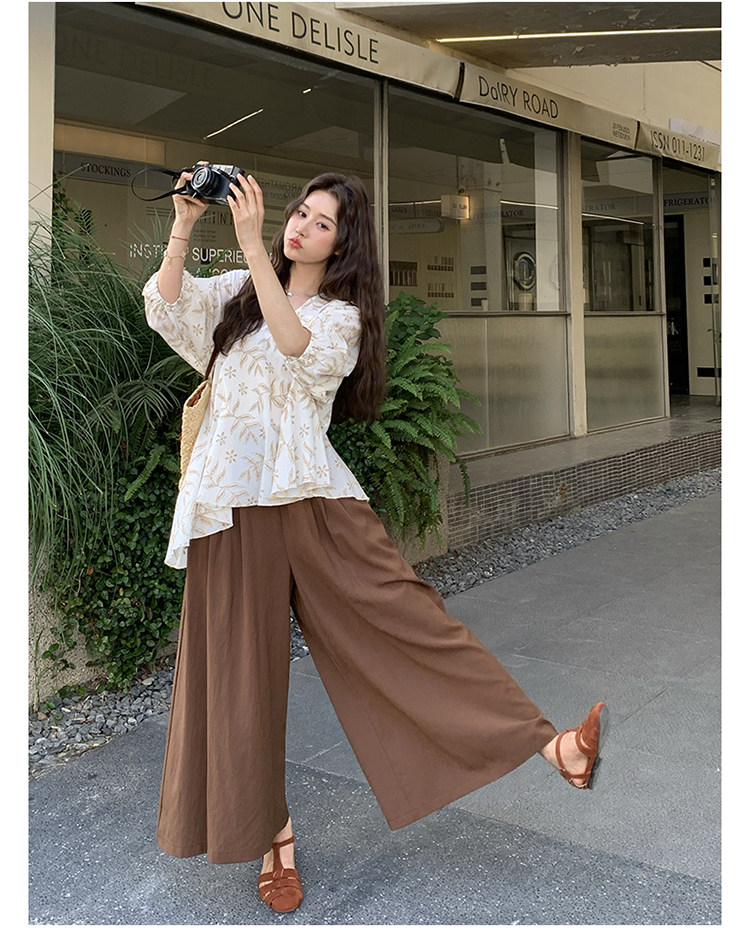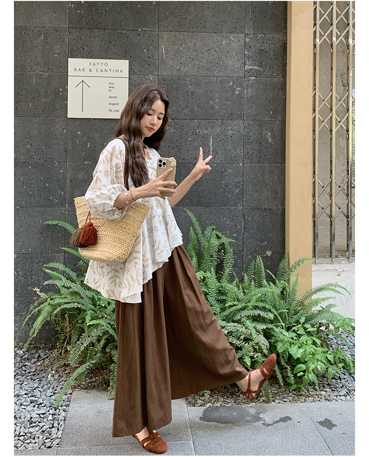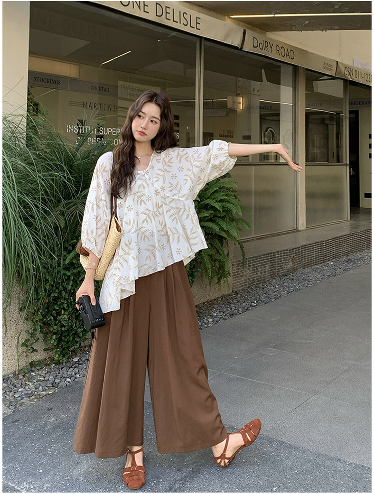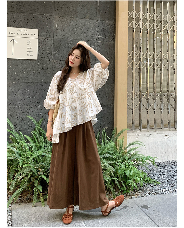 2点セット!【セットアップ】フレンチ シャツ+ワイドパンツ 上下セット レディース シルエット映え 2点セット トレンドアイテム【SHシリーズ】