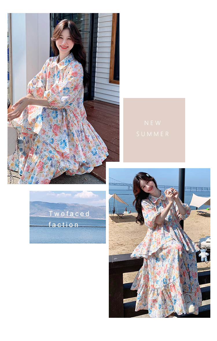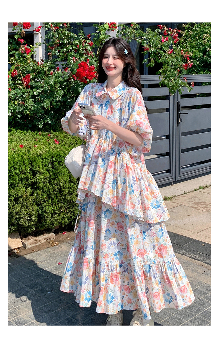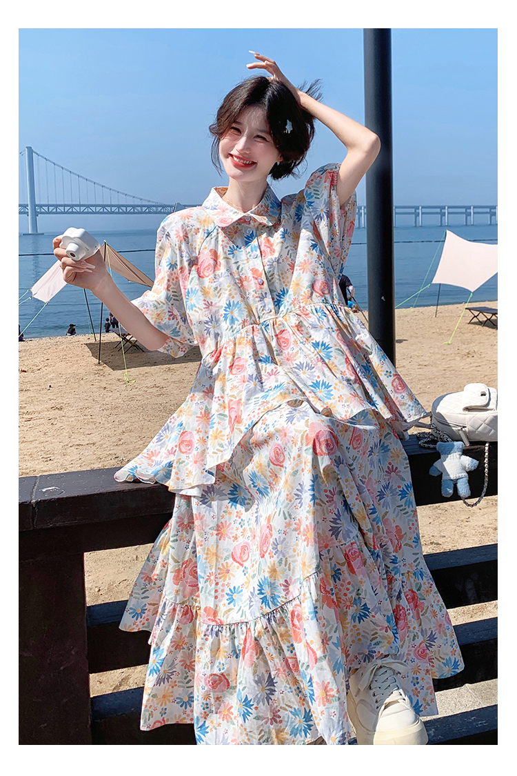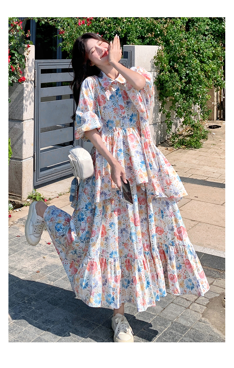 【商品名】【ワンピース】可愛い 小花柄 シャツワンピース🌸 超人気で映える森ガール風 長袖ドレス【SHシリーズ】