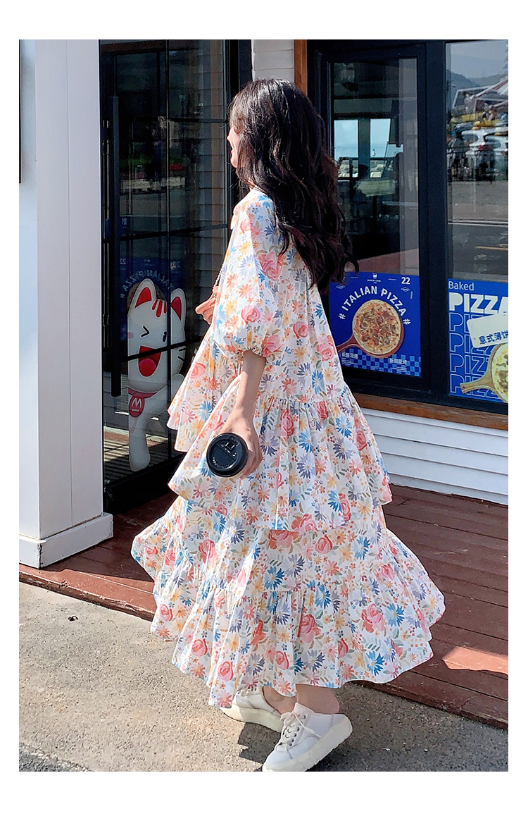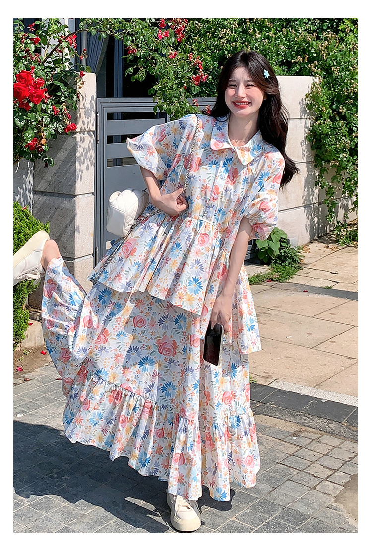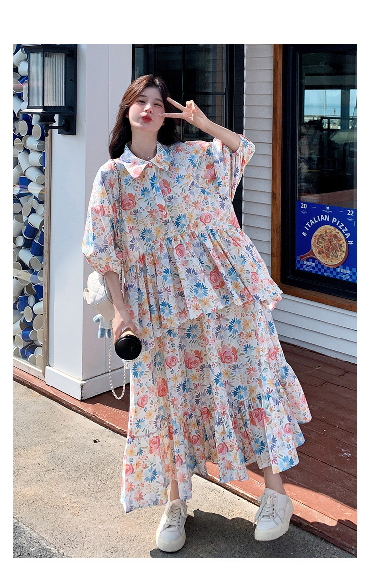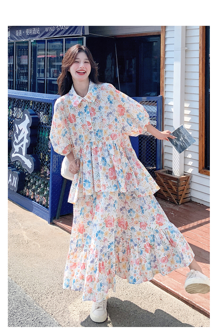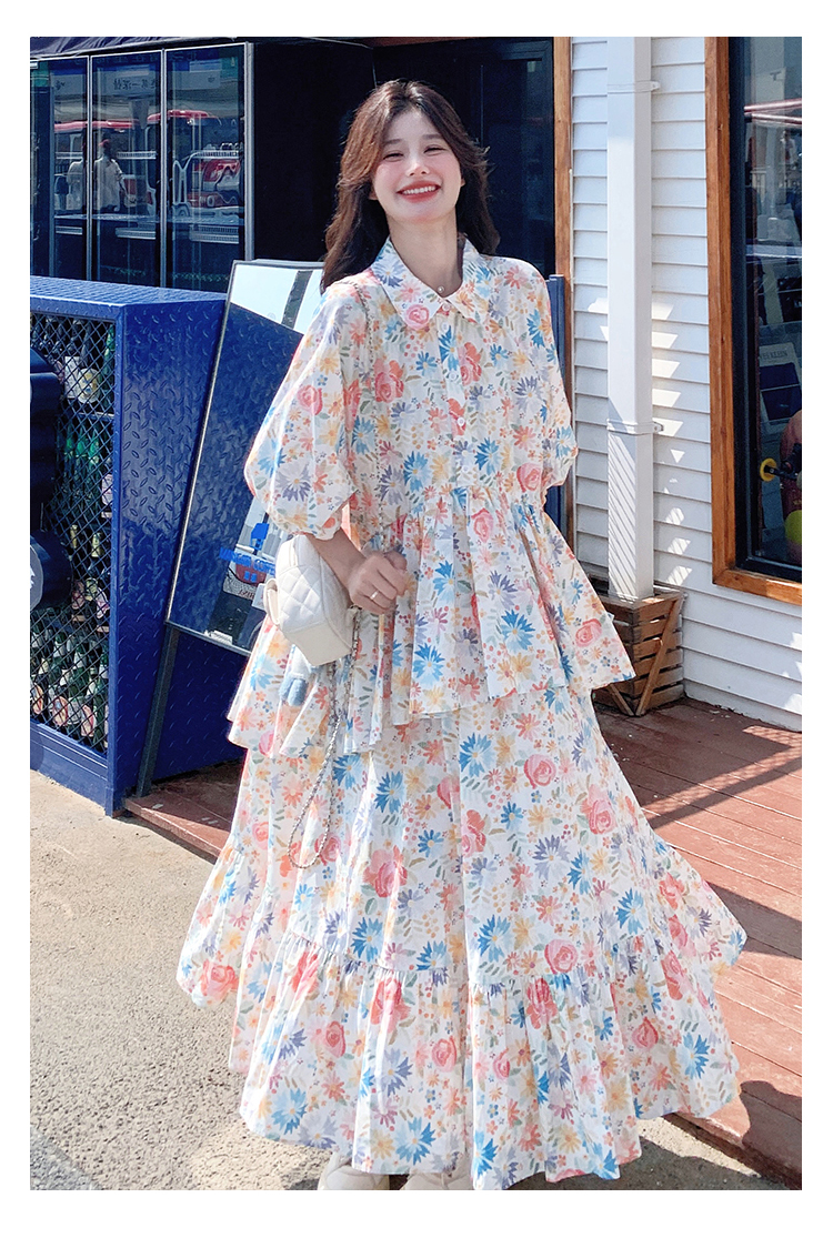 【商品名】【ワンピース】可愛い 小花柄 シャツワンピース🌸 超人気で映える森ガール風 長袖ドレス【SHシリーズ】