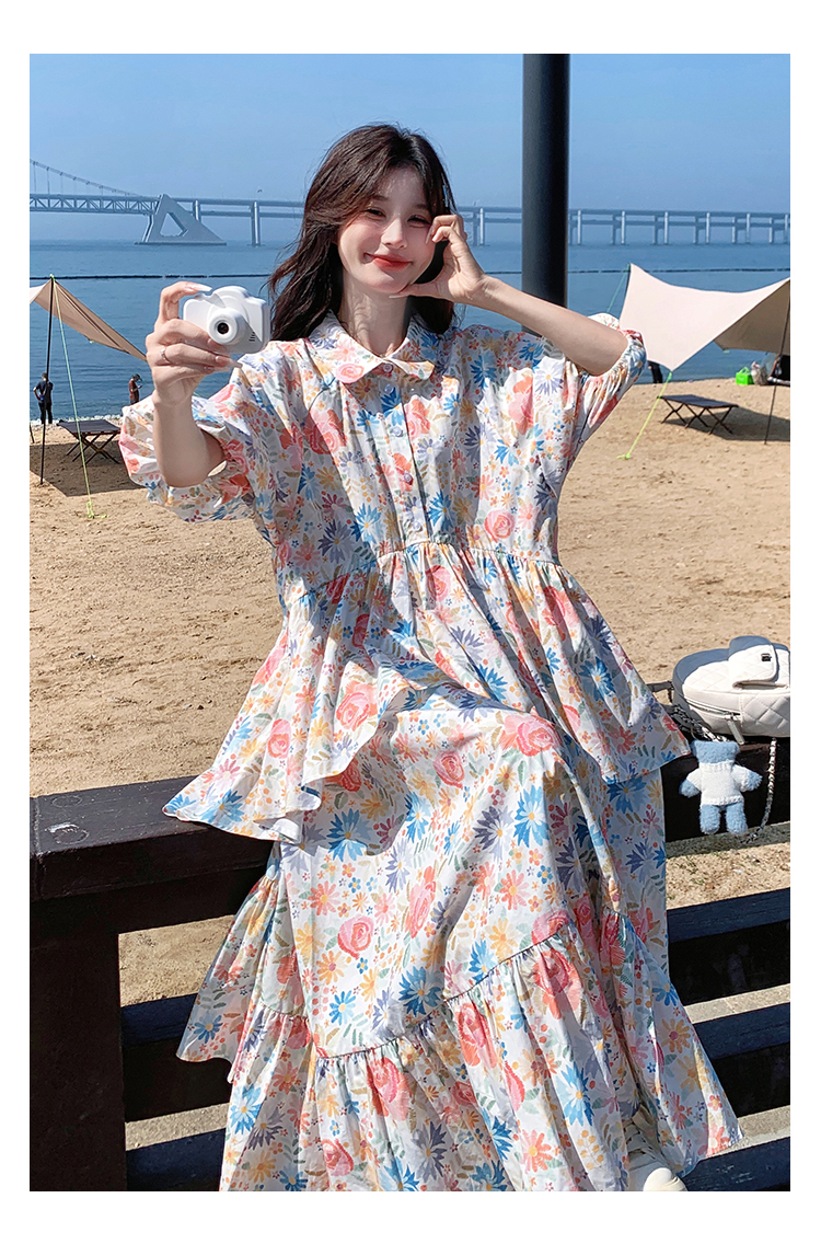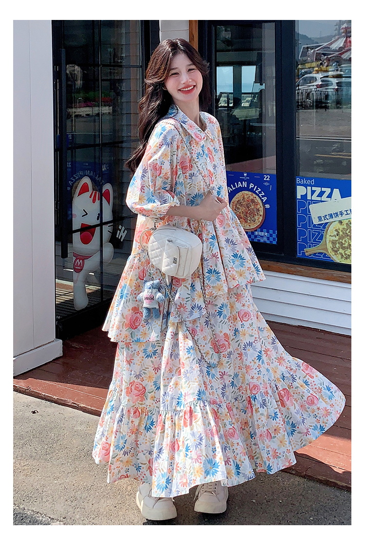 【ワンピース】可愛い 小花柄 シャツワンピース🌸 超人気で映える森ガール風 長袖ドレス【SHシリーズ】