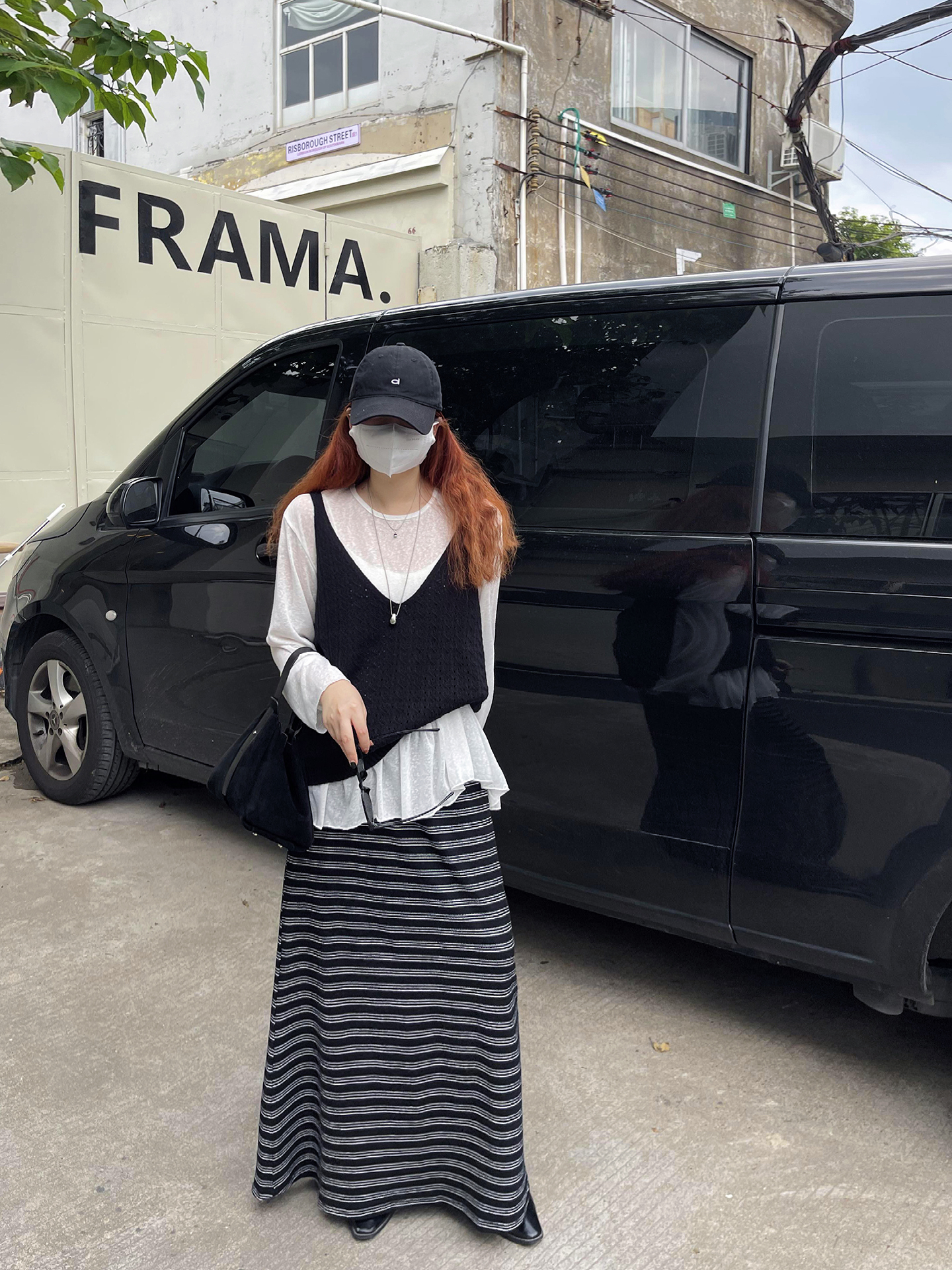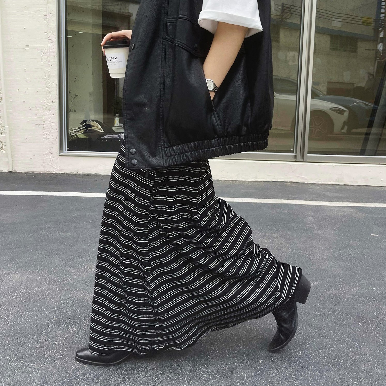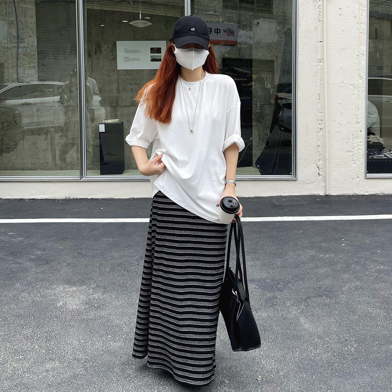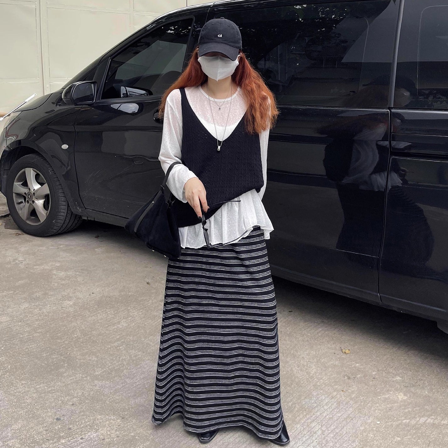【ボトムス】レトロ ストライプ ニットスカート 初秋新作 ハイウエスト スリム見え Aラインスカート【SHシリーズ】