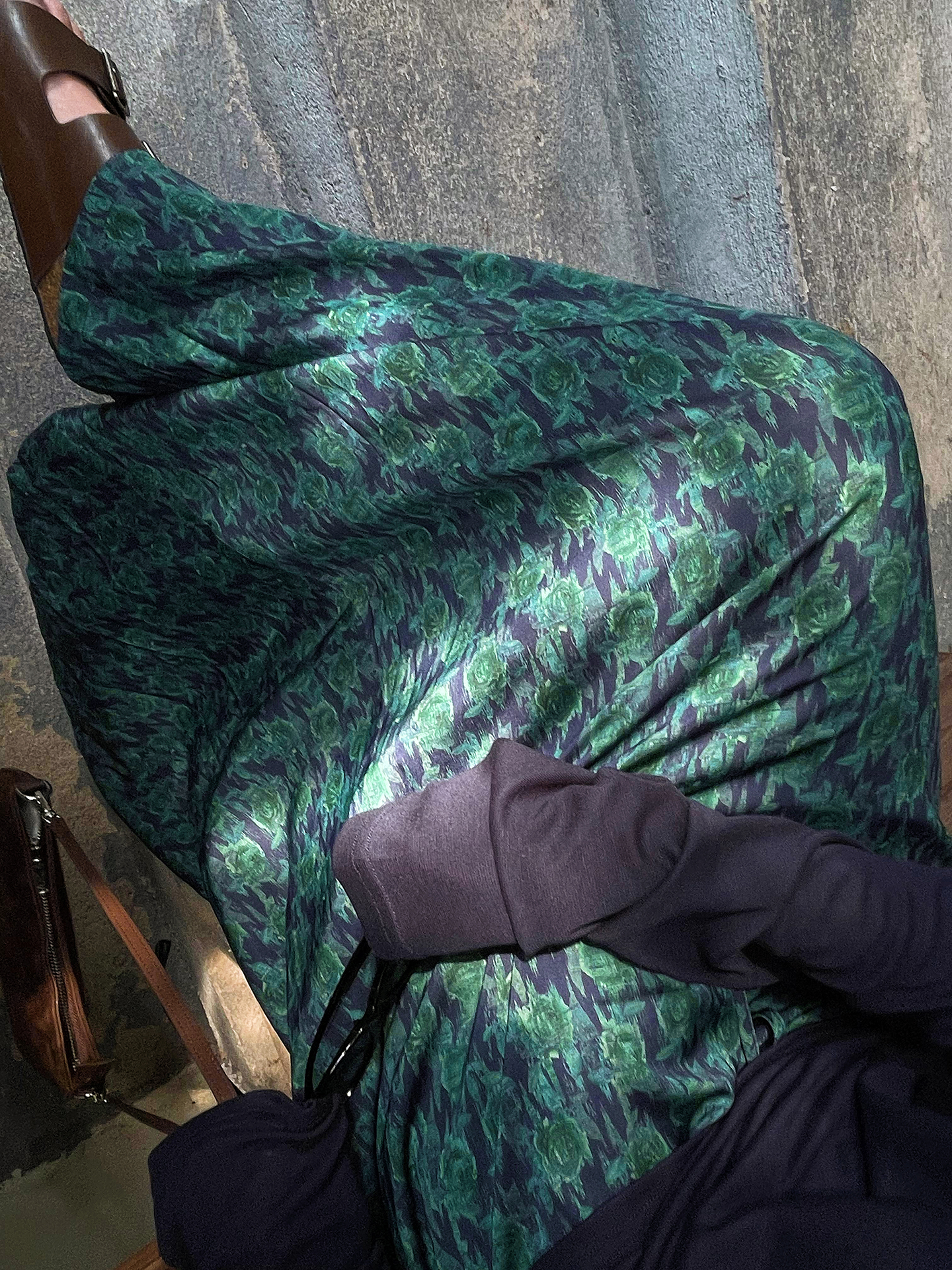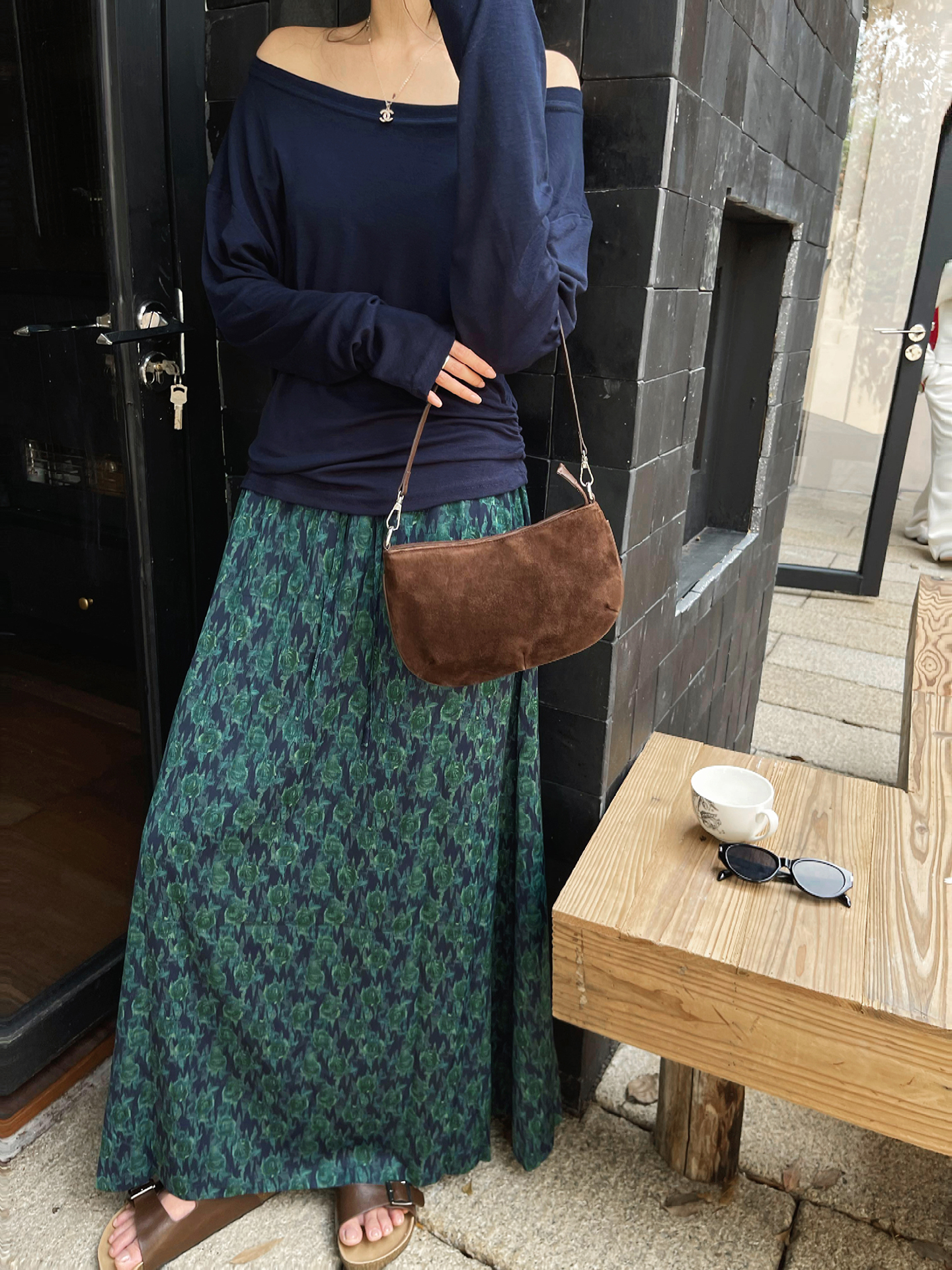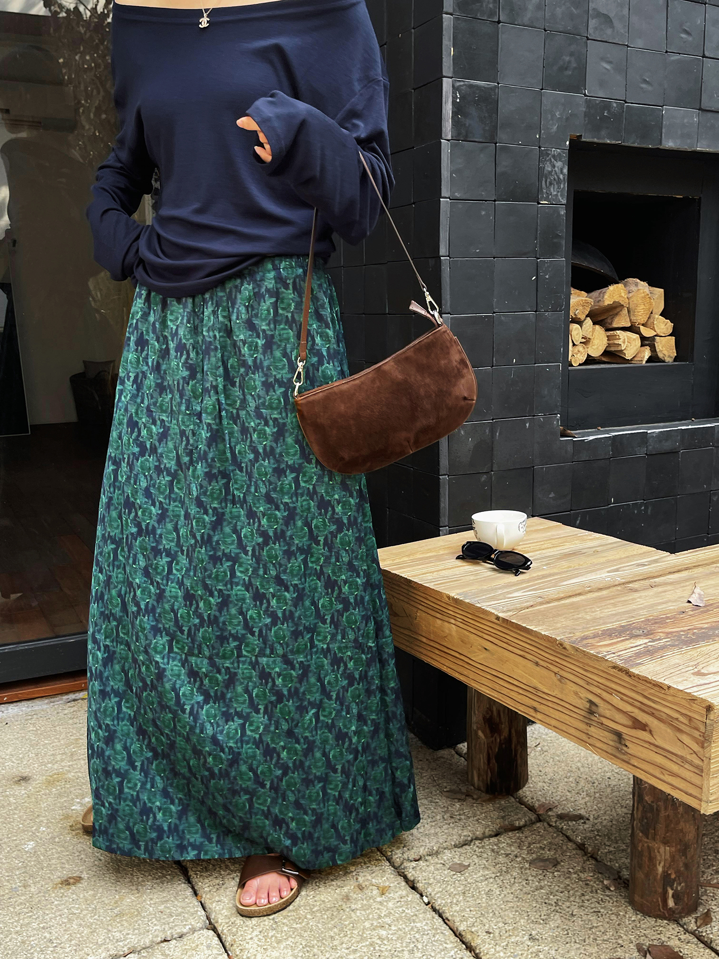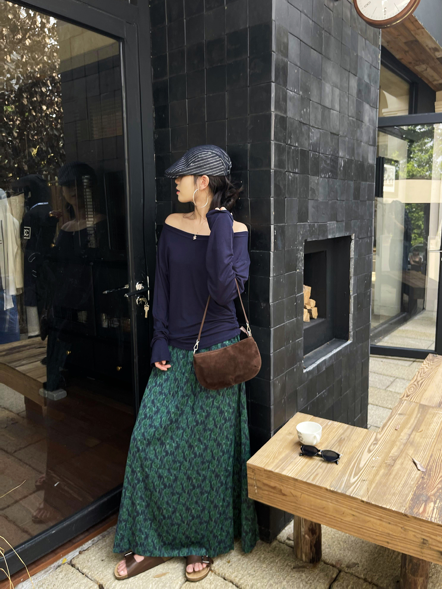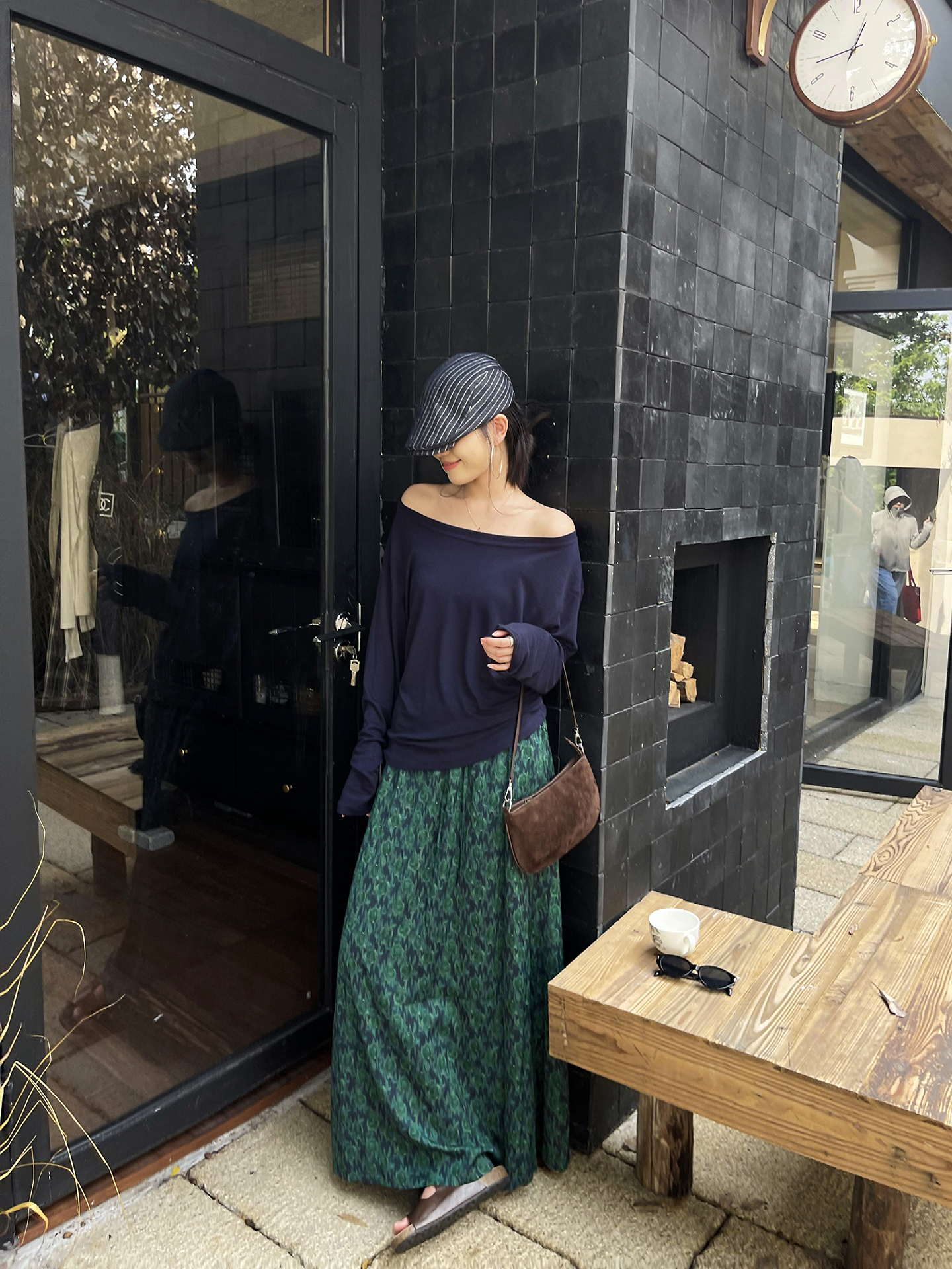 【ボトムス】レトロ風 スカート 初秋新作 ハイウエスト スリム見え 花柄ストレートスカート ドレープ感 スリット入り【SHシリーズ】