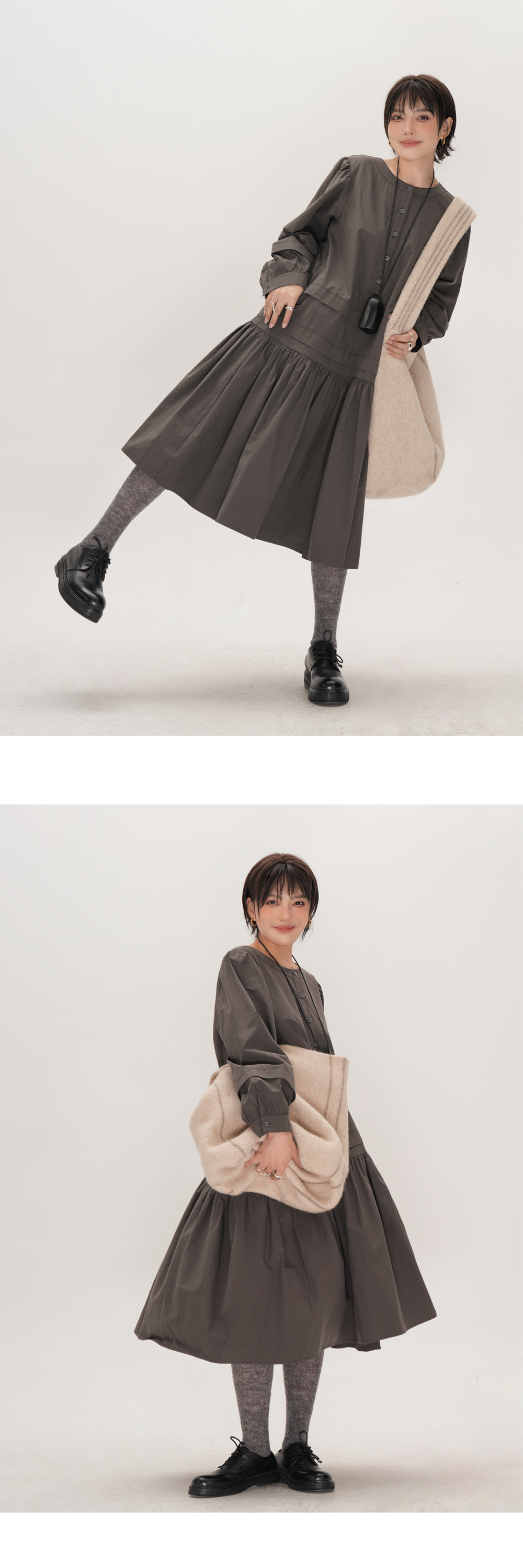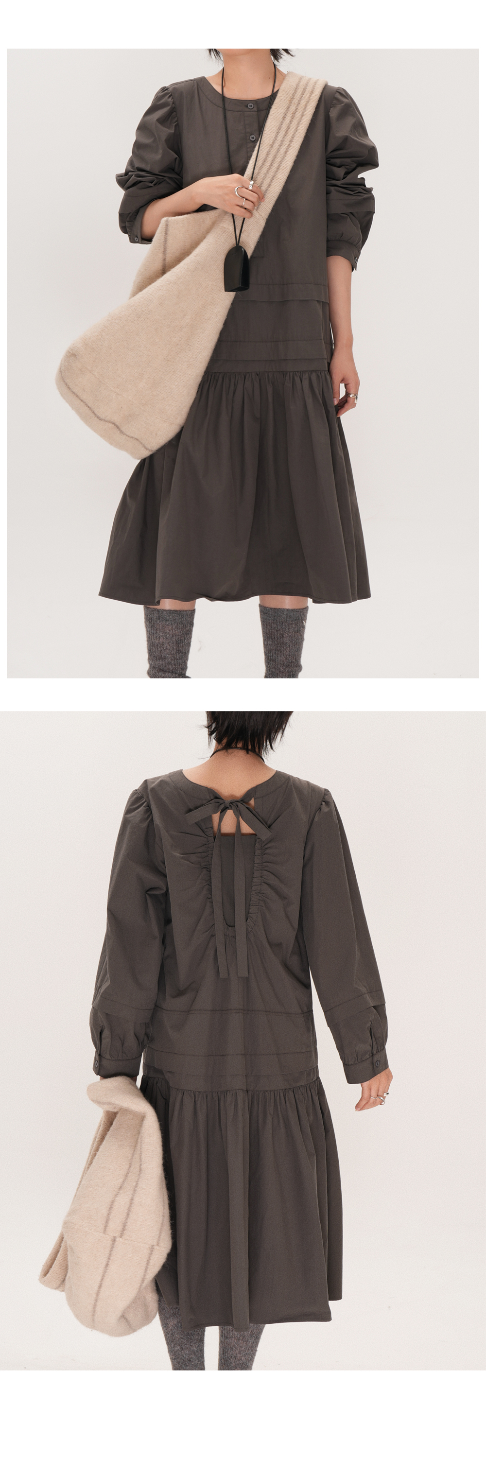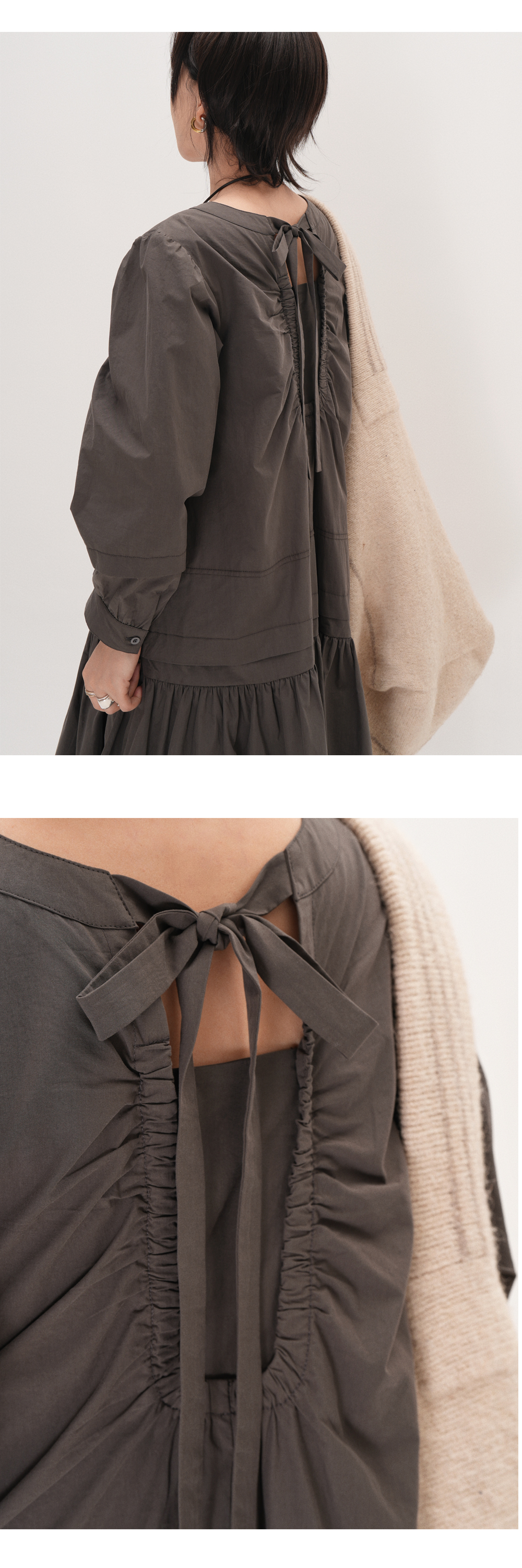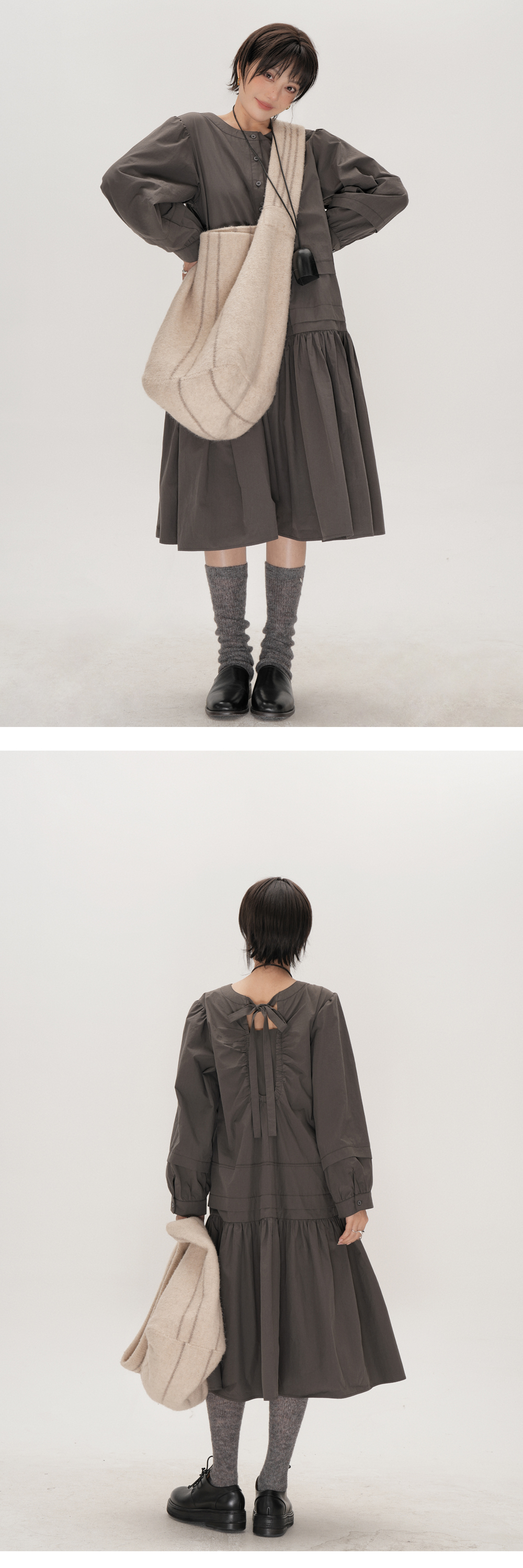 【ワンピース】ドローストリング付き ゆったりとした 春 秋 冬 切り替え 長袖 ワンピース 【AHシリーズ】