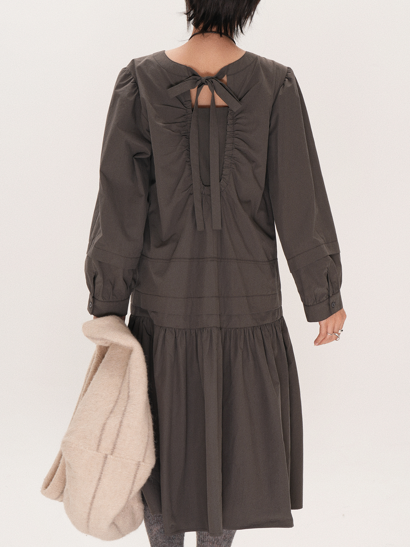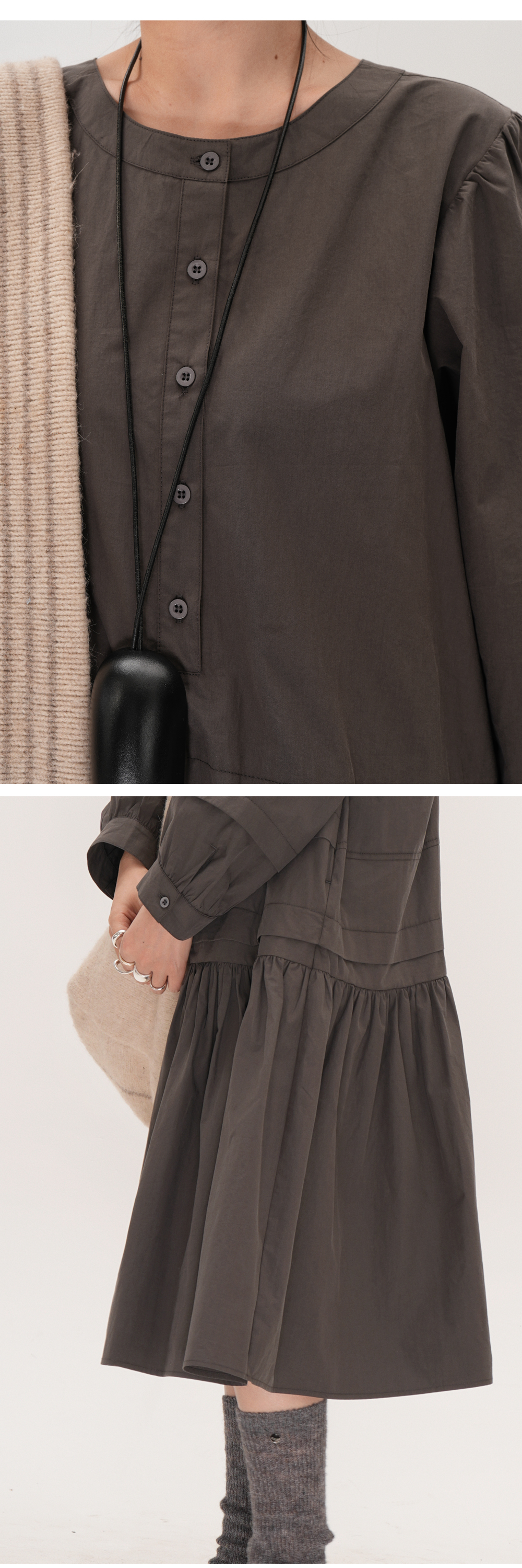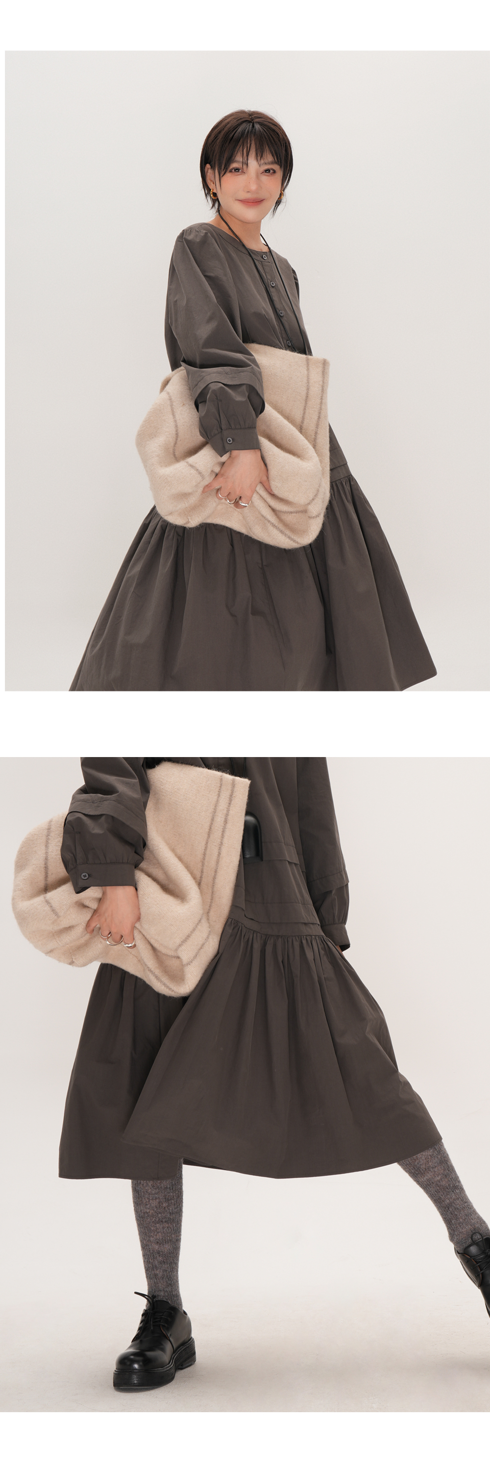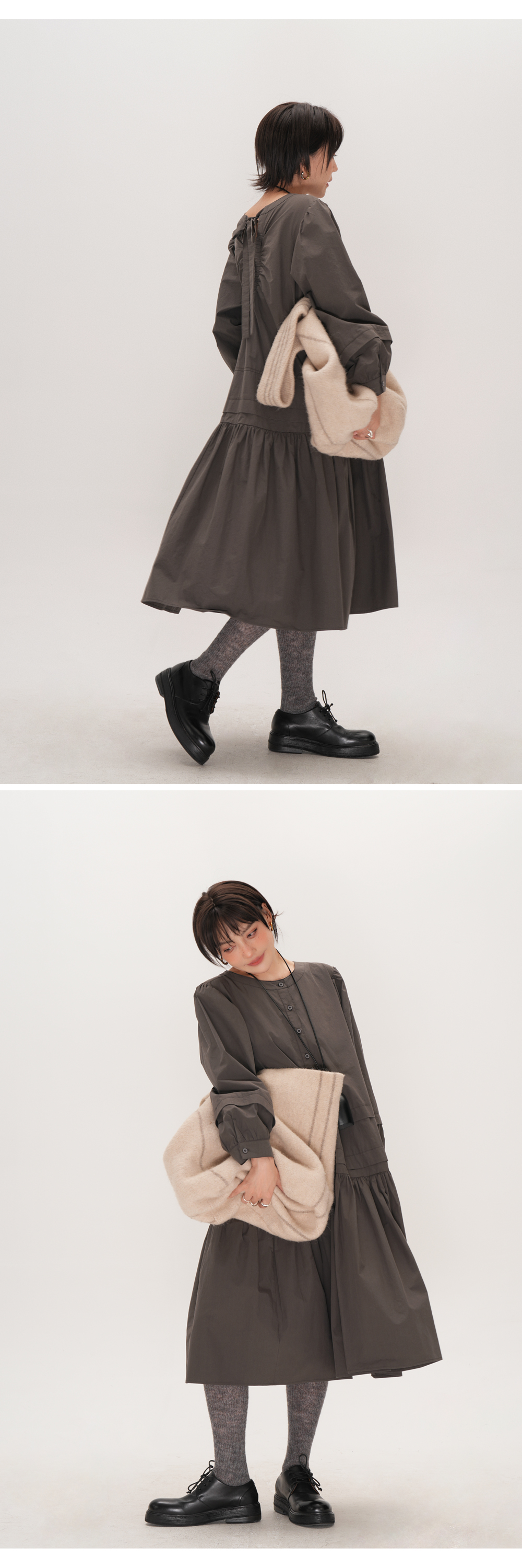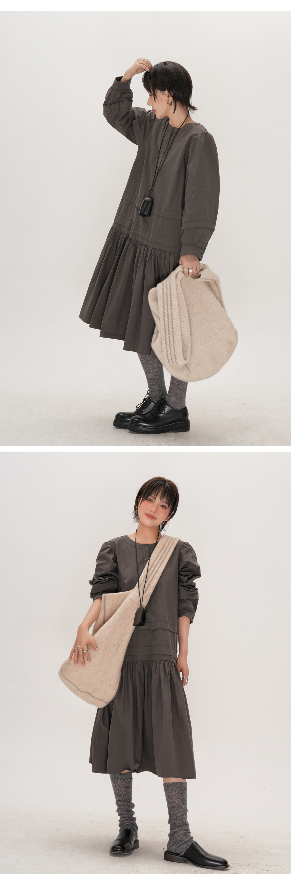 【ワンピース】ドローストリング付き ゆったりとした 春 秋 冬 切り替え 長袖 ワンピース 【AHシリーズ】