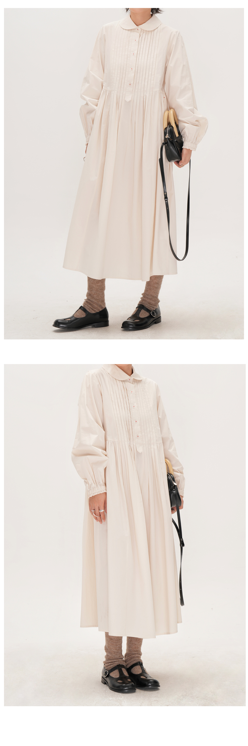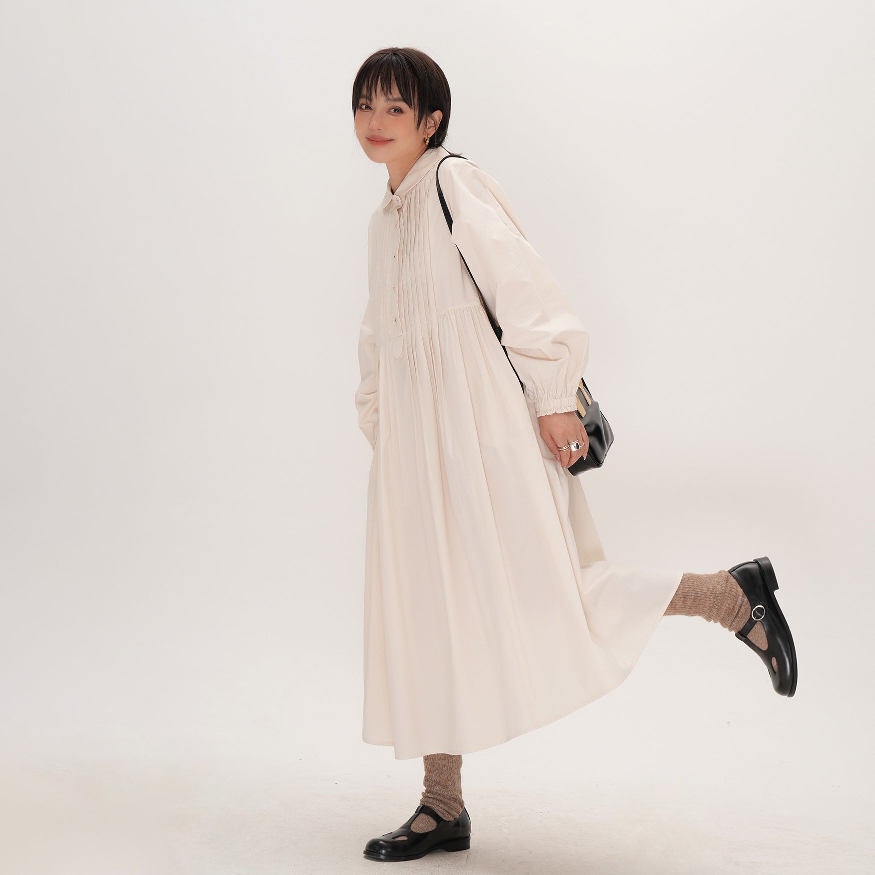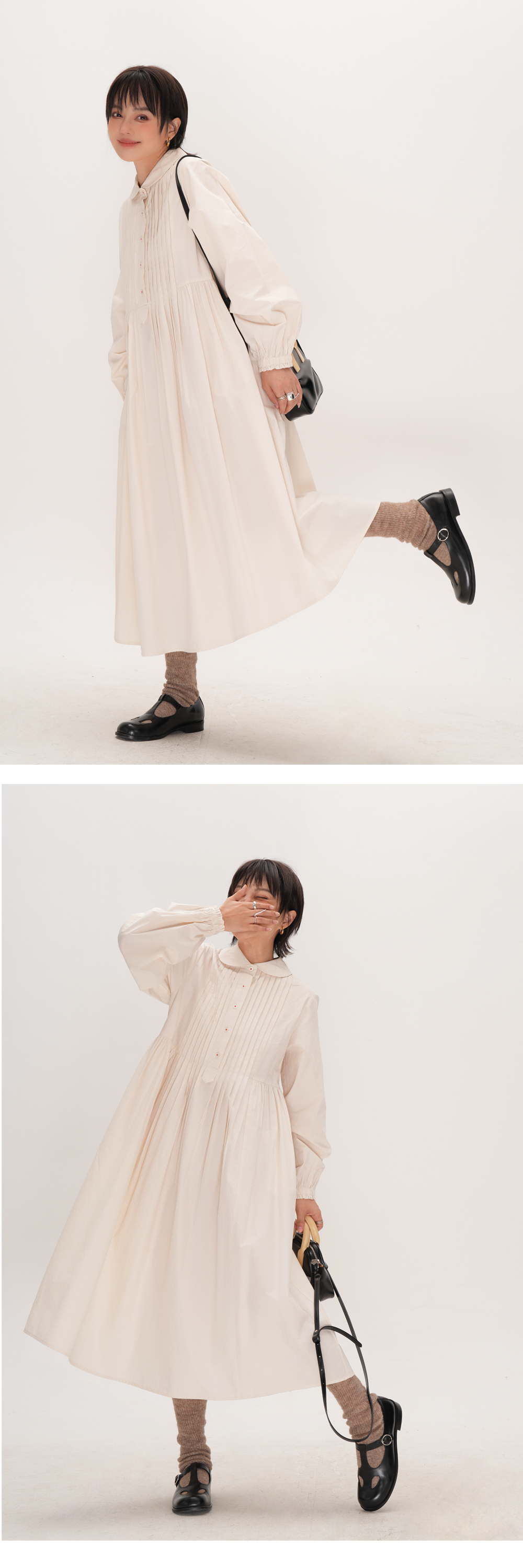 【ワンピース】かわいい 手作り タック プリーツ ハイウエスト ゆったり 日本風 長袖ワンピース【JZシリーズ】
