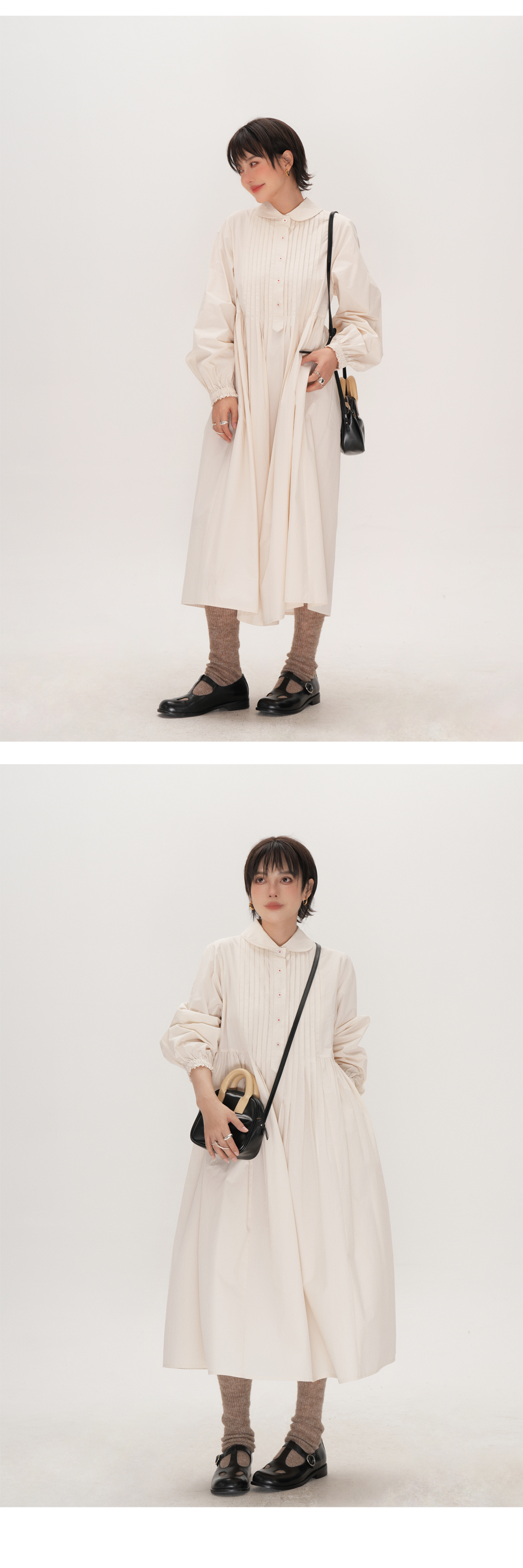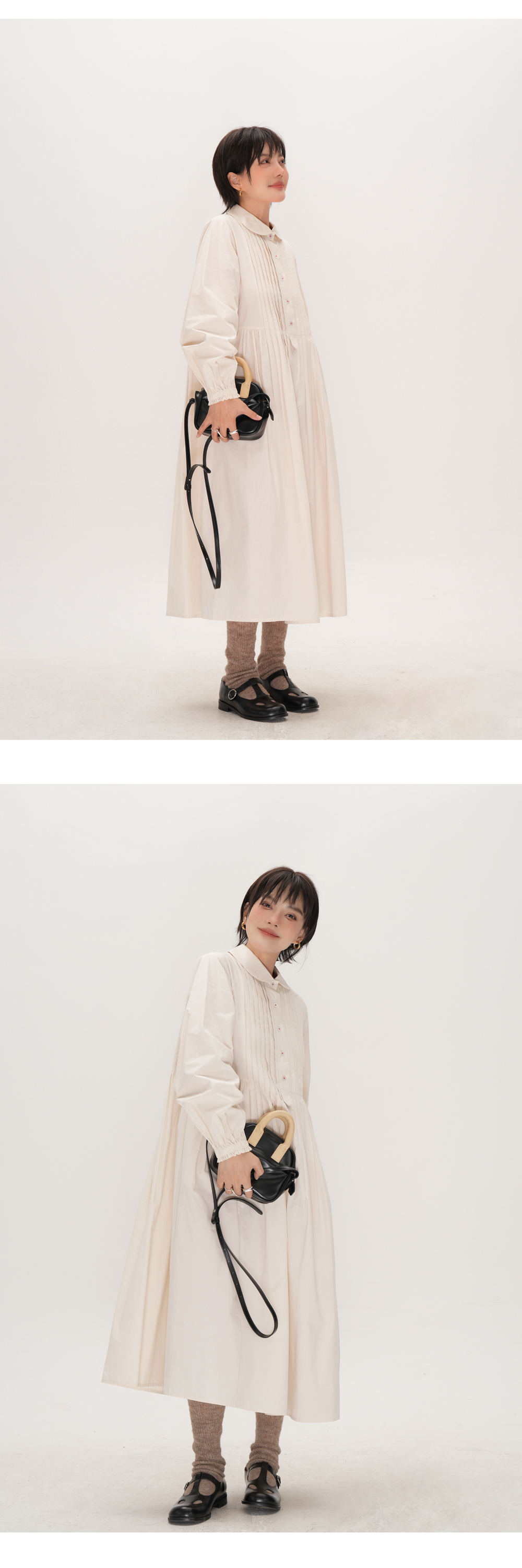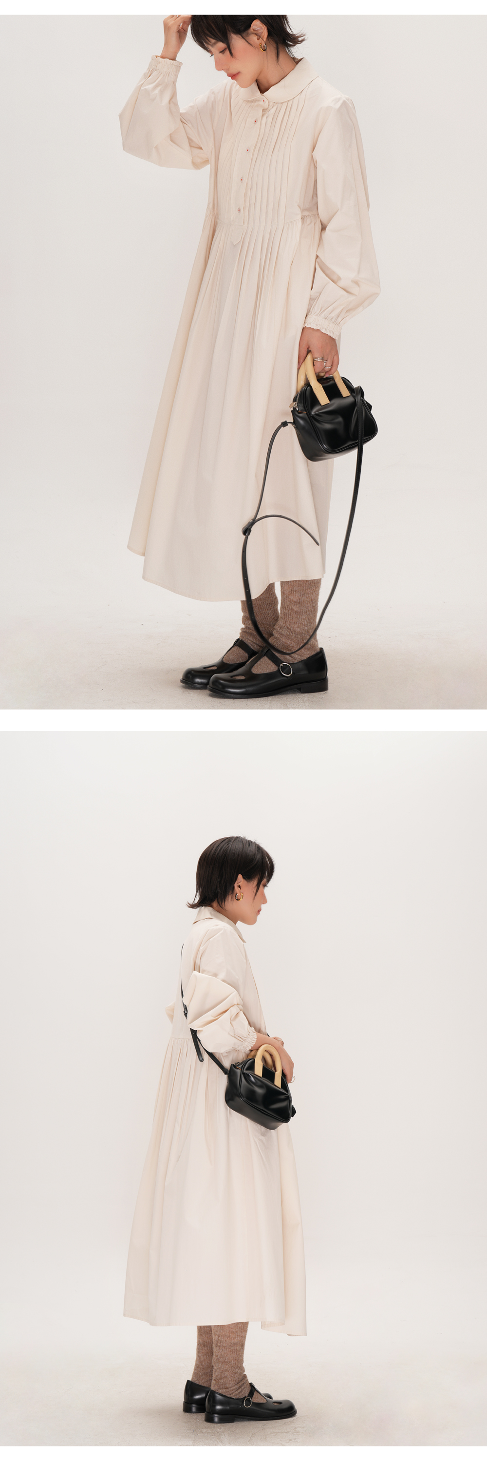 【ワンピース】かわいい 手作り タック プリーツ ハイウエスト ゆったり 日本風 長袖ワンピース【JZシリーズ】