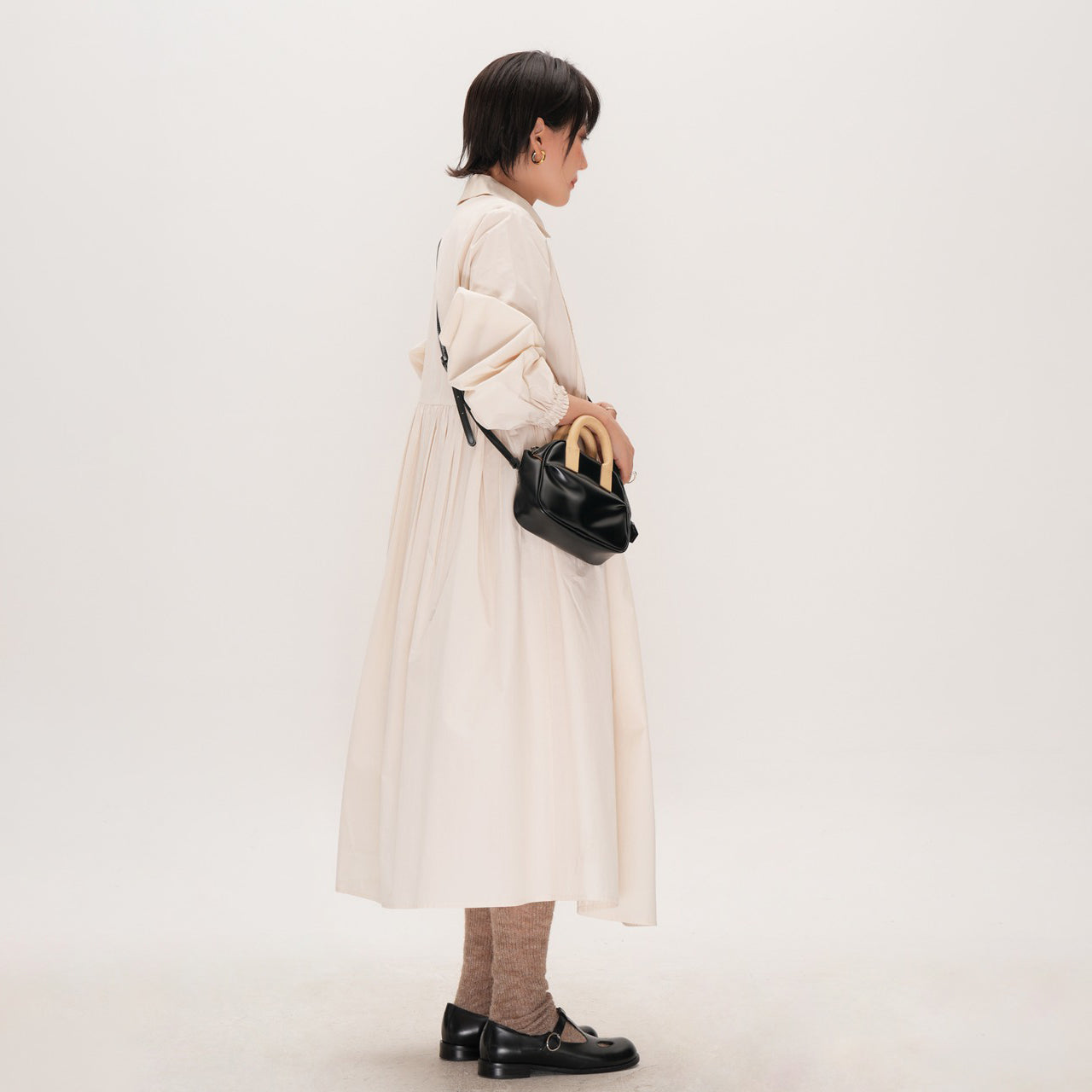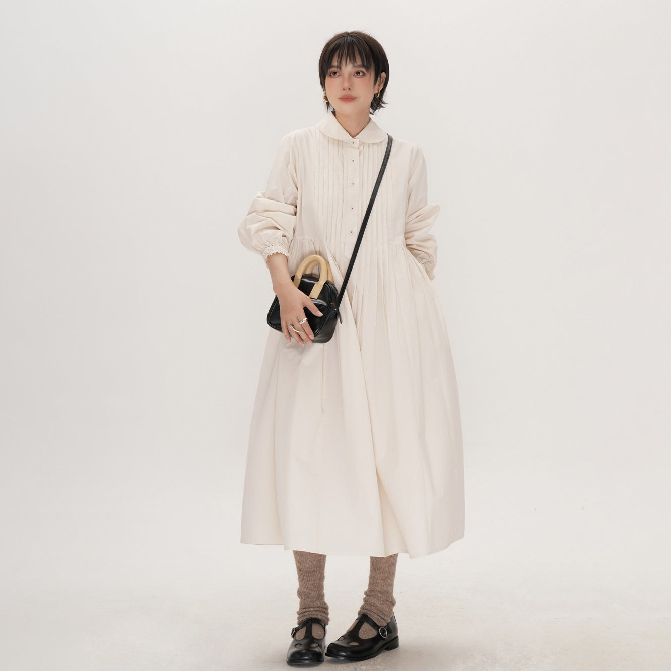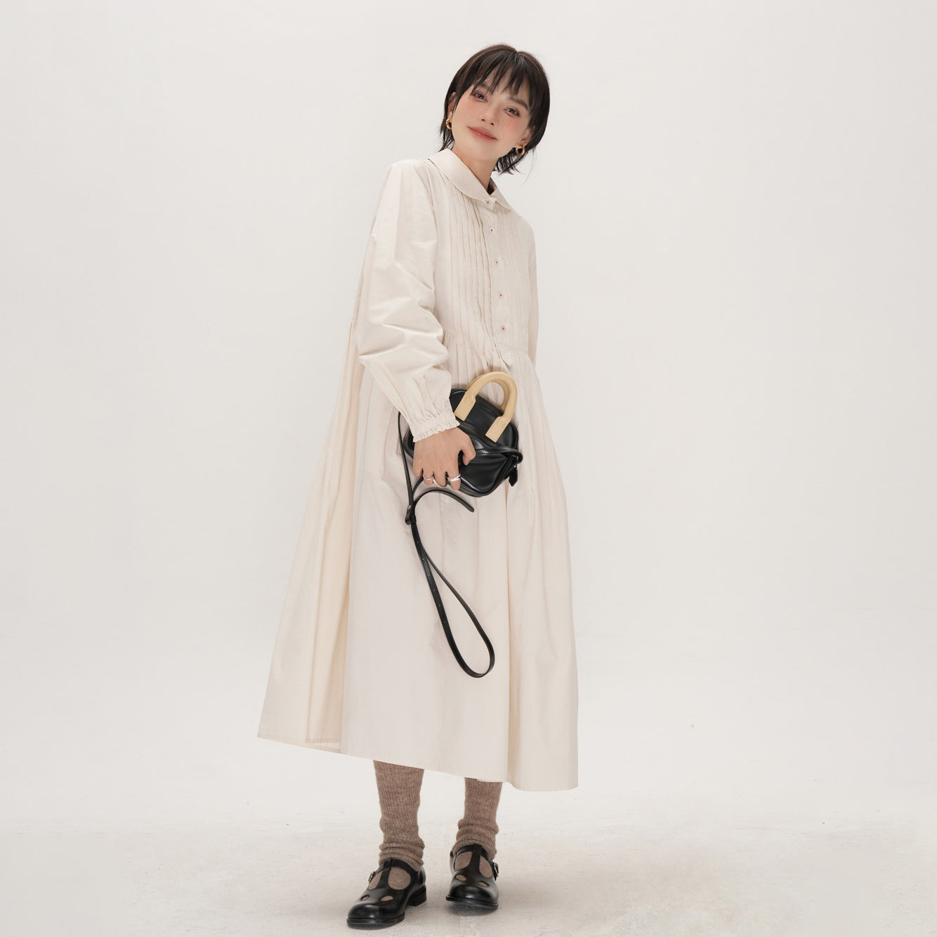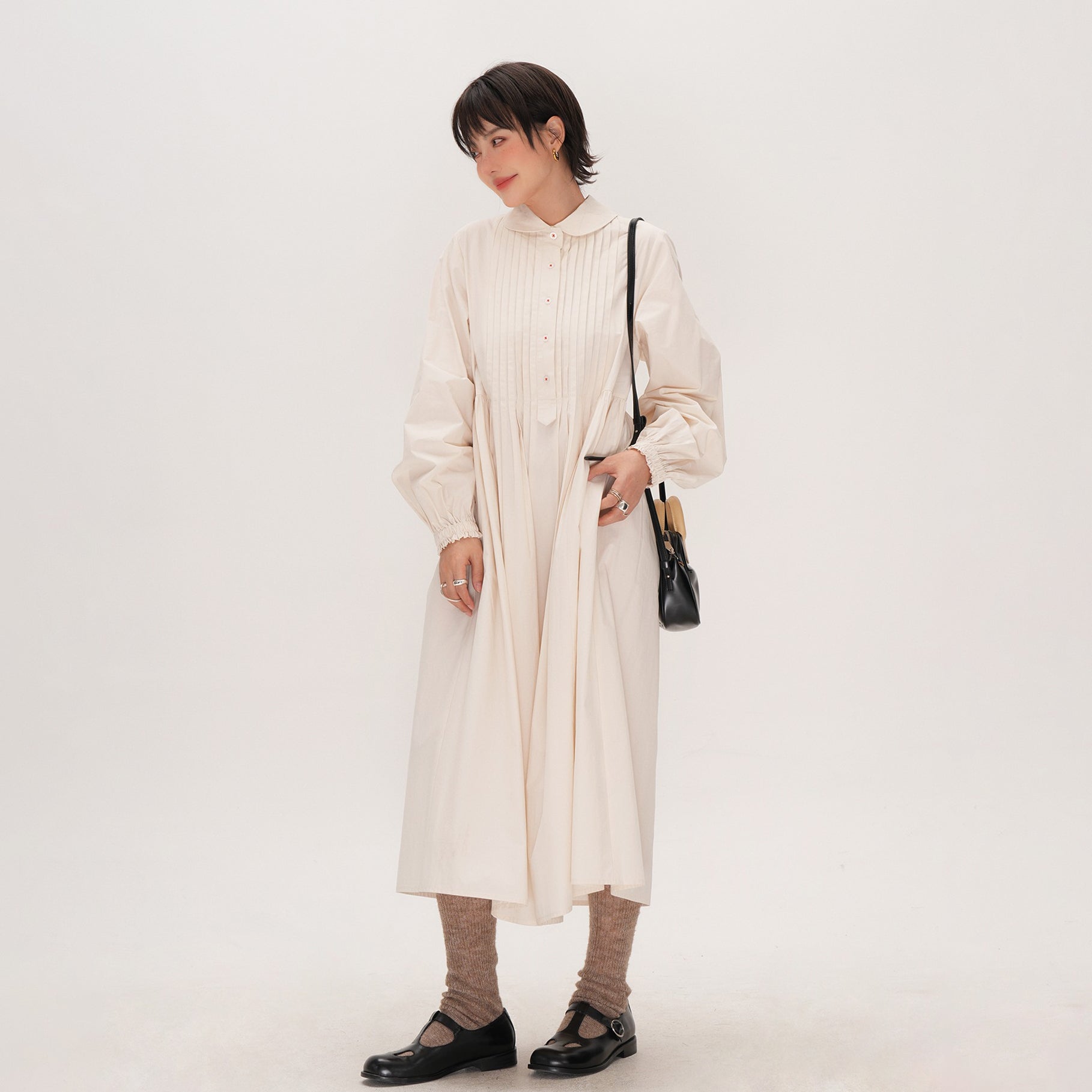 【商品名】【ワンピース】かわいい 手作り タック プリーツ ハイウエスト ゆったり 日本風 長袖ワンピース【JZシリーズ】