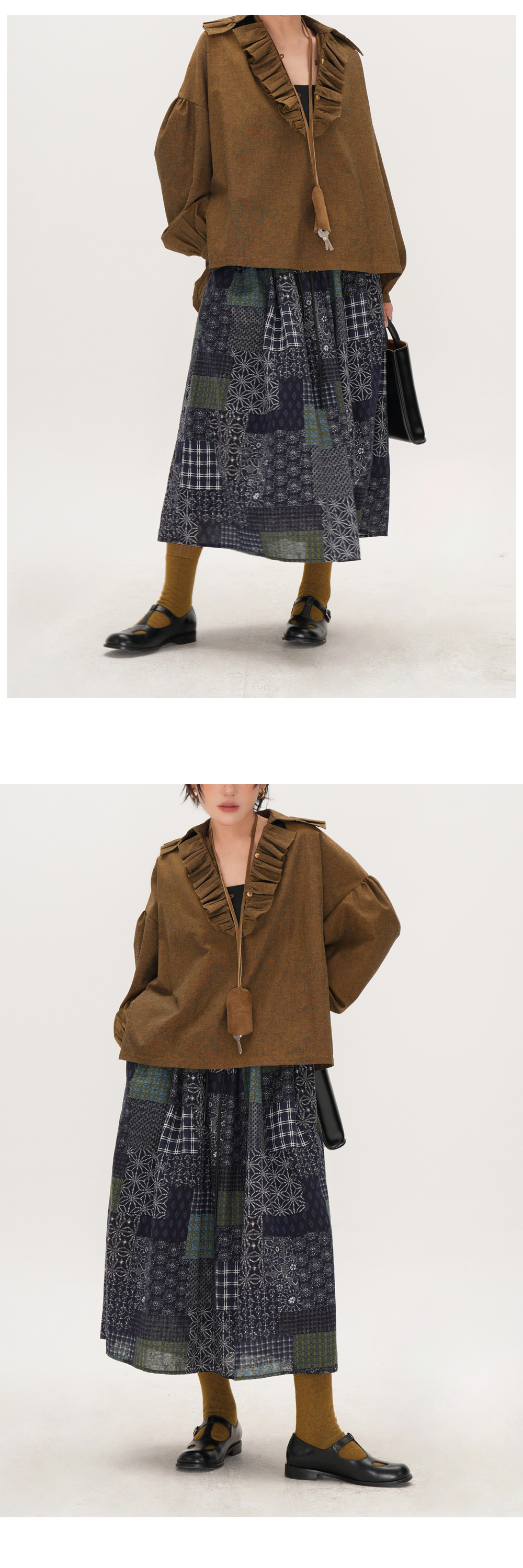 【商品名】【ボトムス】レトロ 切替 スカート レディース 大きいサイズ ミディアム丈 Aライン フレアスカート チェック パッチワーク ロングスカート 初秋【SHシリーズ】【JZシリーズ】