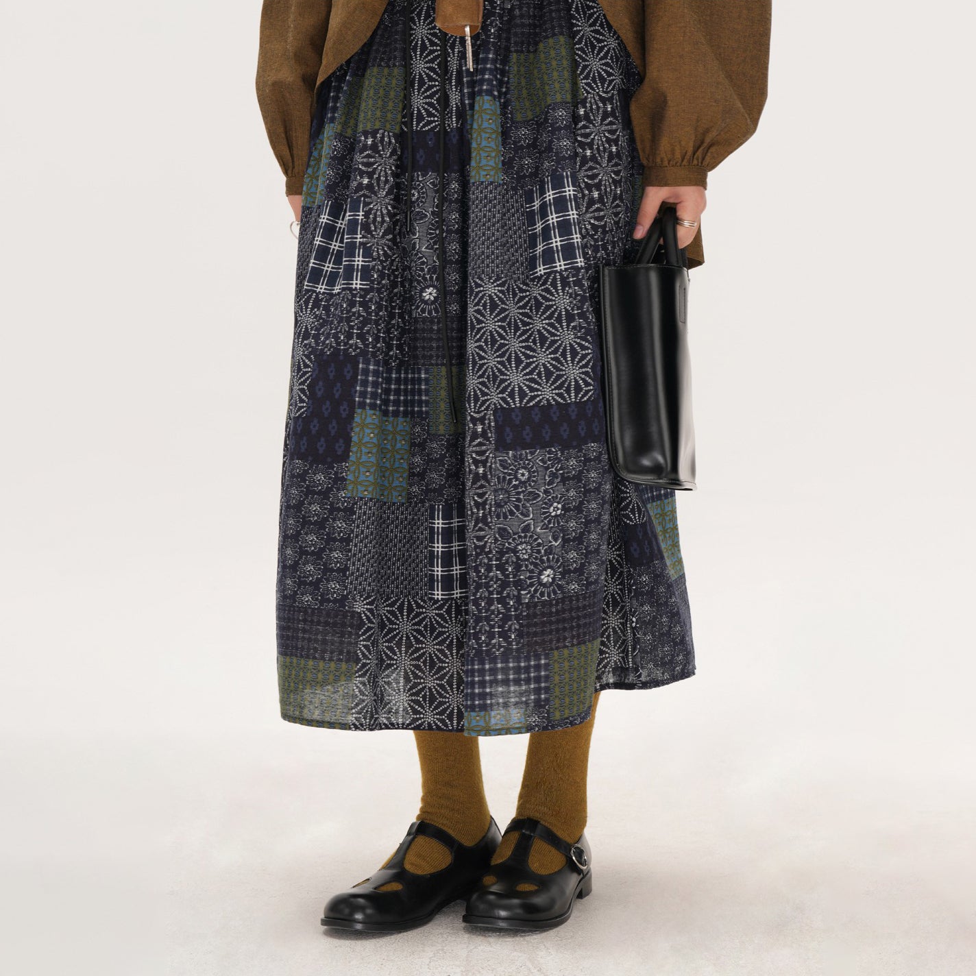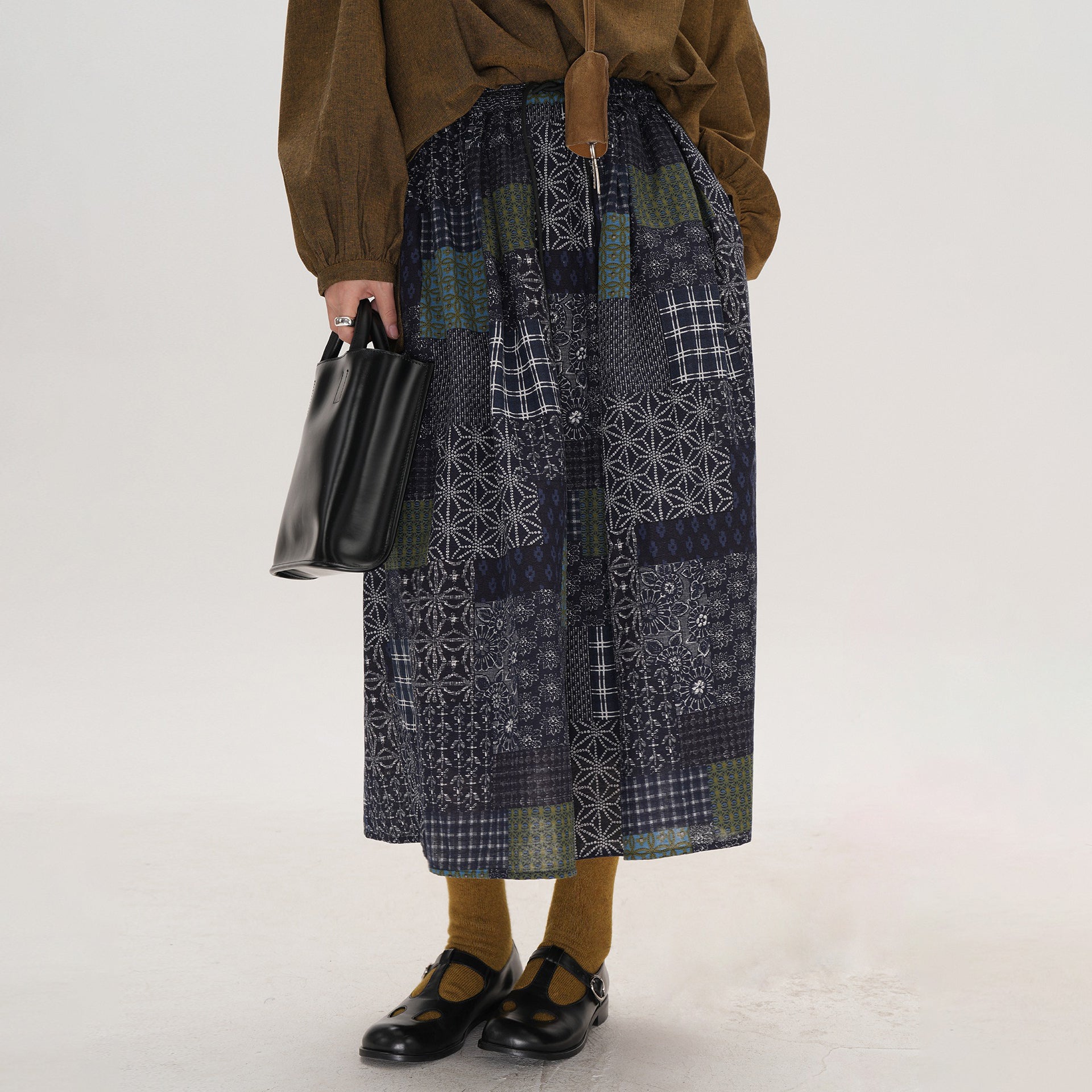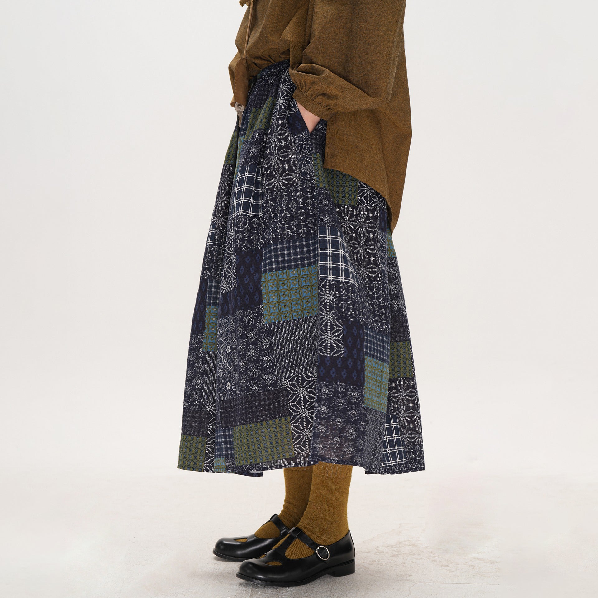 【ボトムス】レトロ 切替 スカート レディース 大きいサイズ ミディアム丈 Aライン フレアスカート チェック パッチワーク ロングスカート 初秋【SHシリーズ】【JZシリーズ】