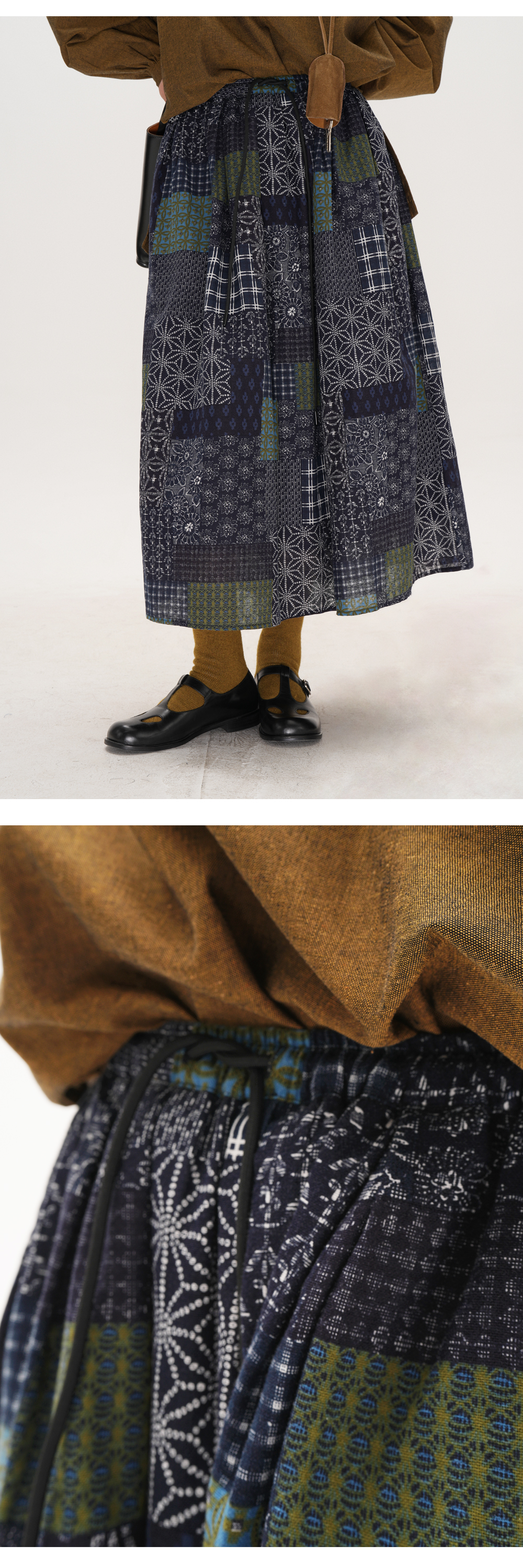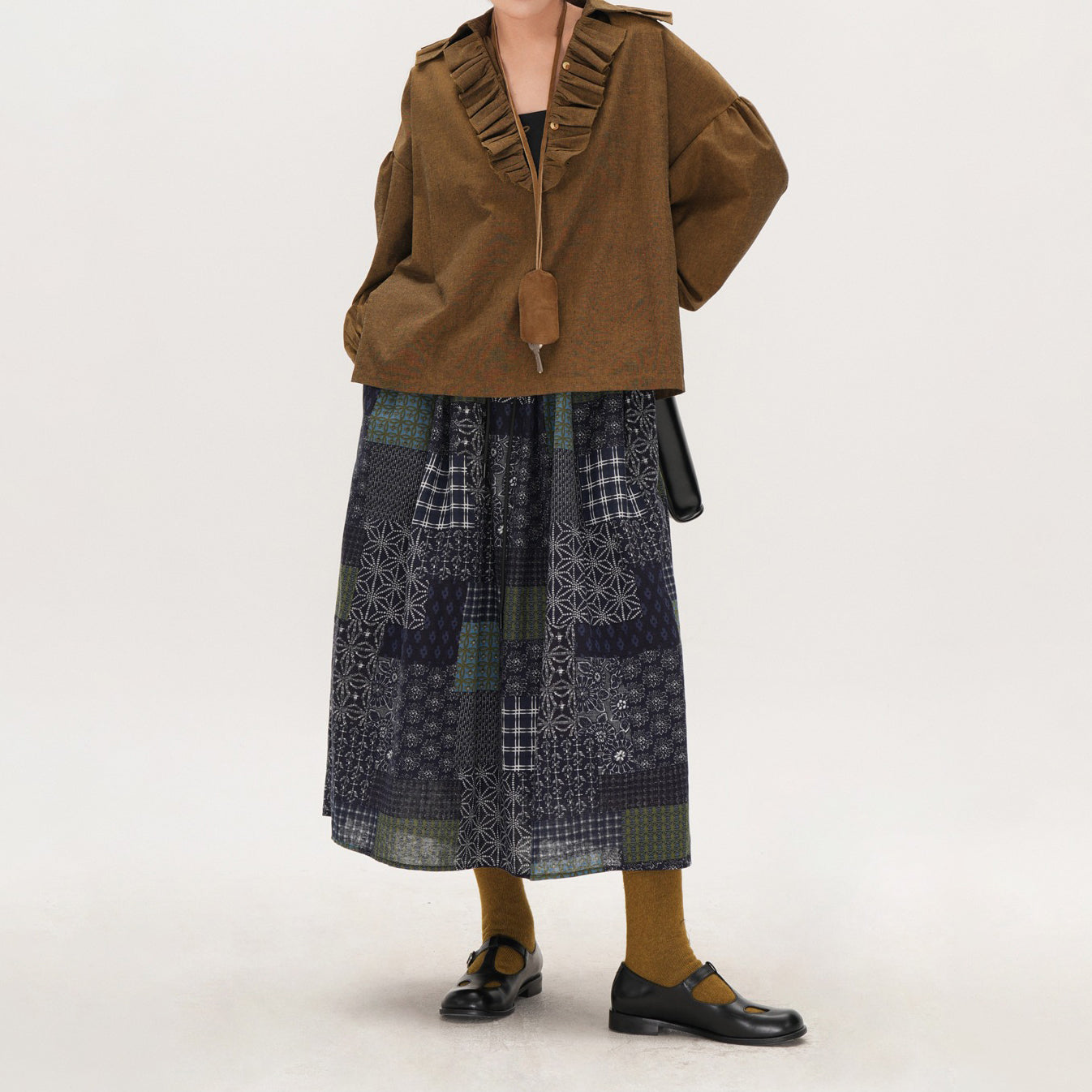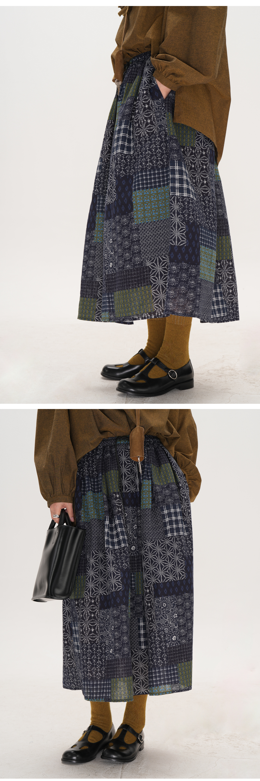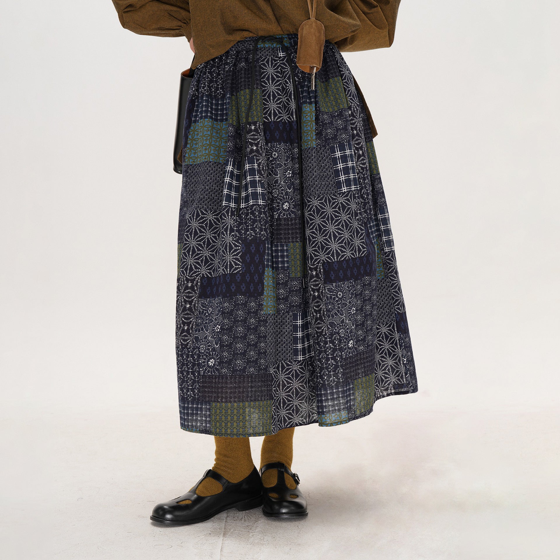【ボトムス】レトロ 切替 スカート レディース 大きいサイズ ミディアム丈 Aライン フレアスカート チェック パッチワーク ロングスカート 初秋【SHシリーズ】【JZシリーズ】