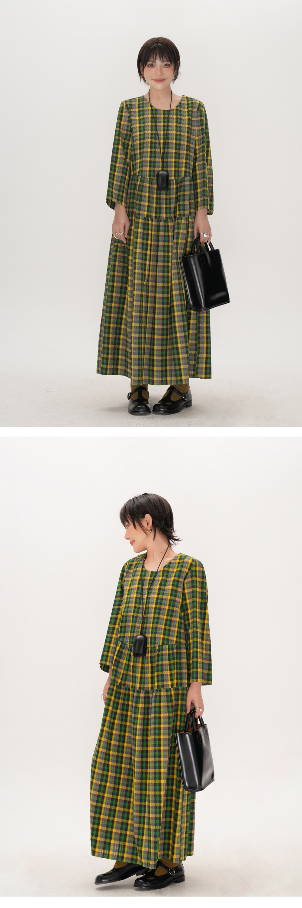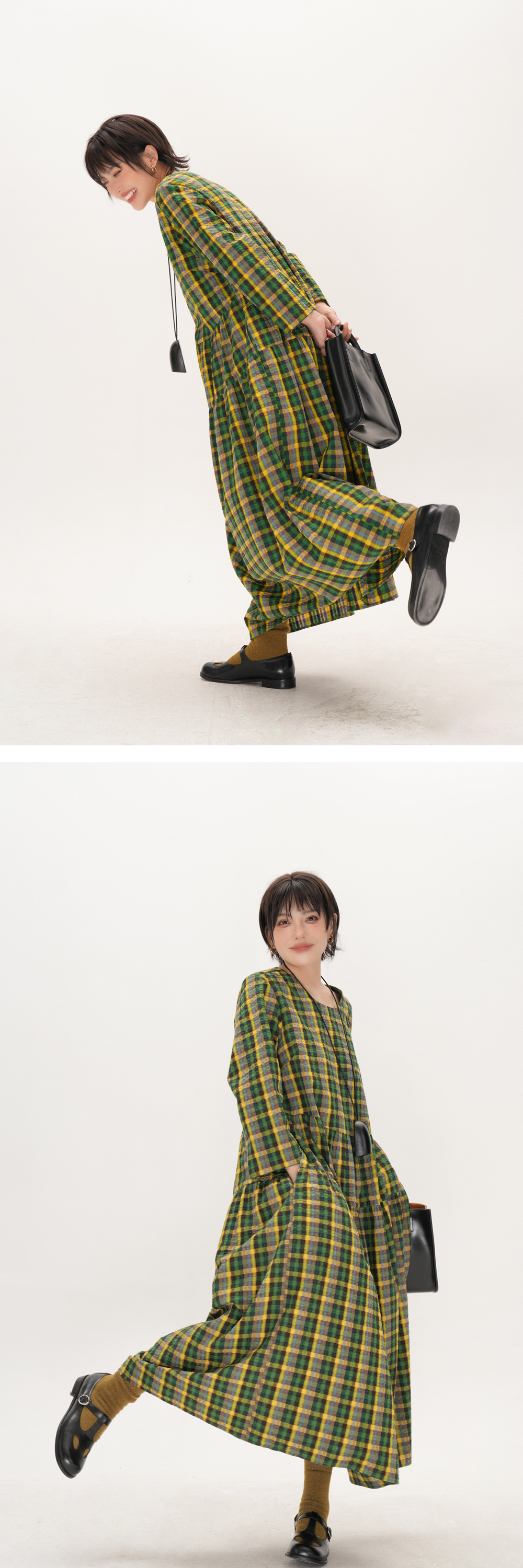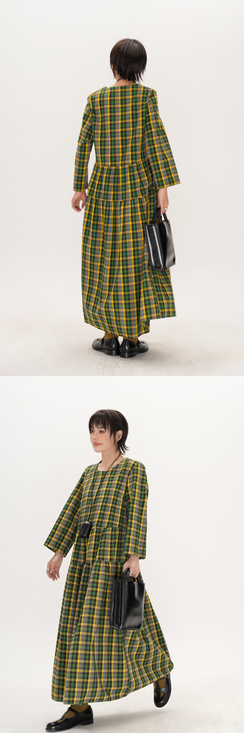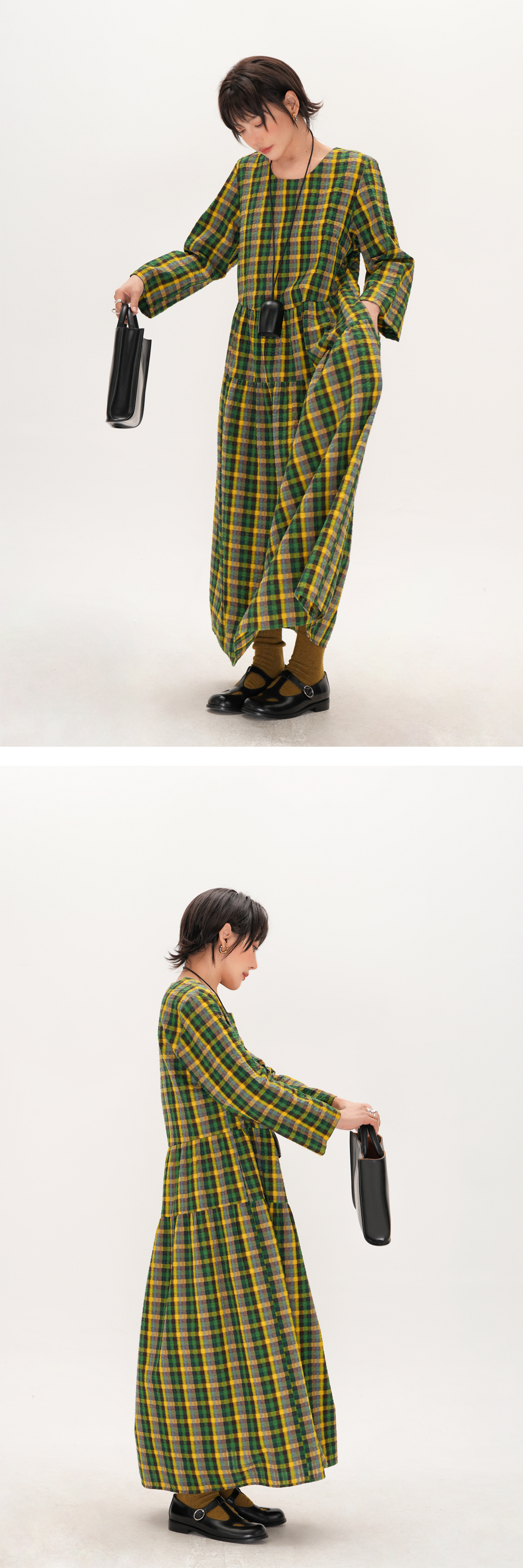 【商品名】【ワンピース】レトロ チェック ワンピース レディース ゆったり 体型カバー 大きいサイズ ミディアム丈 長袖 デザイン感 ワンピース【SHシリーズ】
